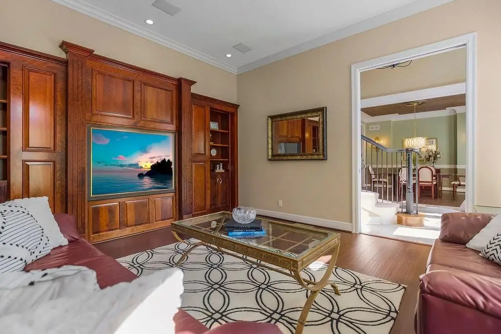 Finished basement with bar & media areas
