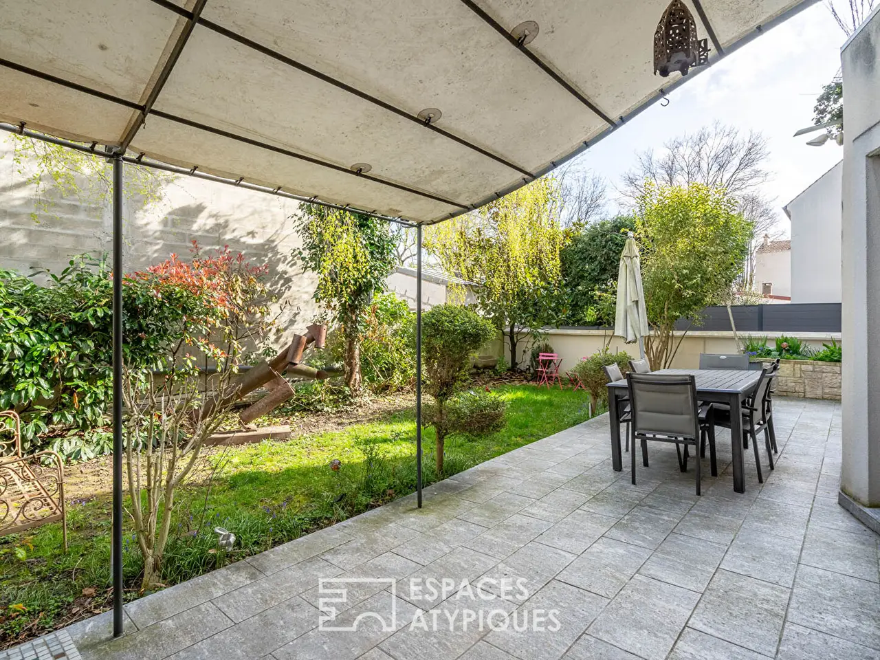 Located in a quiet area near the Lilas town hall, this architect-designed house with a surface area of ??approximately 200m2, a true work of art on four levels designed to offer an exceptional living space. A large living room of approximately 47m2 and benefiting from large openings to the outside providing constant light, extends under 8 meters of ceiling height creating a feeling of freedom. An open kitchen of approximately 12m2 with direct access to the garden of approximately 95m2 and the terrace, an office, storage space and toilets complete this level. On the first level, on the one hand there are two bedrooms sharing a bathroom and a toilet and on the other hand a walkway leading to the master suite with a bathroom equipped with a spa bath, a shower, dressing room and toilet, offering comfort and privacy. On the second level, a second walkway leads to a fourth bedroom as well as a rooftop of around 40m2, ideal for enjoying the sun. A large basement of approximately 78m2 including a games room, a garage, a wine cellar, toilets and a laundry room complete the package. Metro line 11: Serge Gainsbourg at 350 meters REF. 11665 Additional information * 7 rooms * 4 bedrooms * 2 shower rooms * 2 floors in the building * Outdoor space : 252 SQM * Property tax : 3 350 € Energy Performance Certificate Primary energy consumption c : 144 kWh/m2.year High performance housing