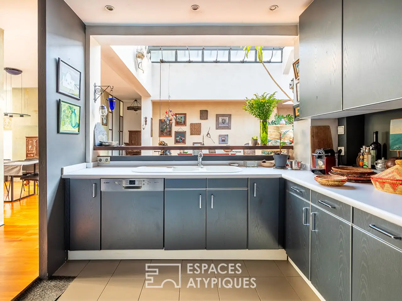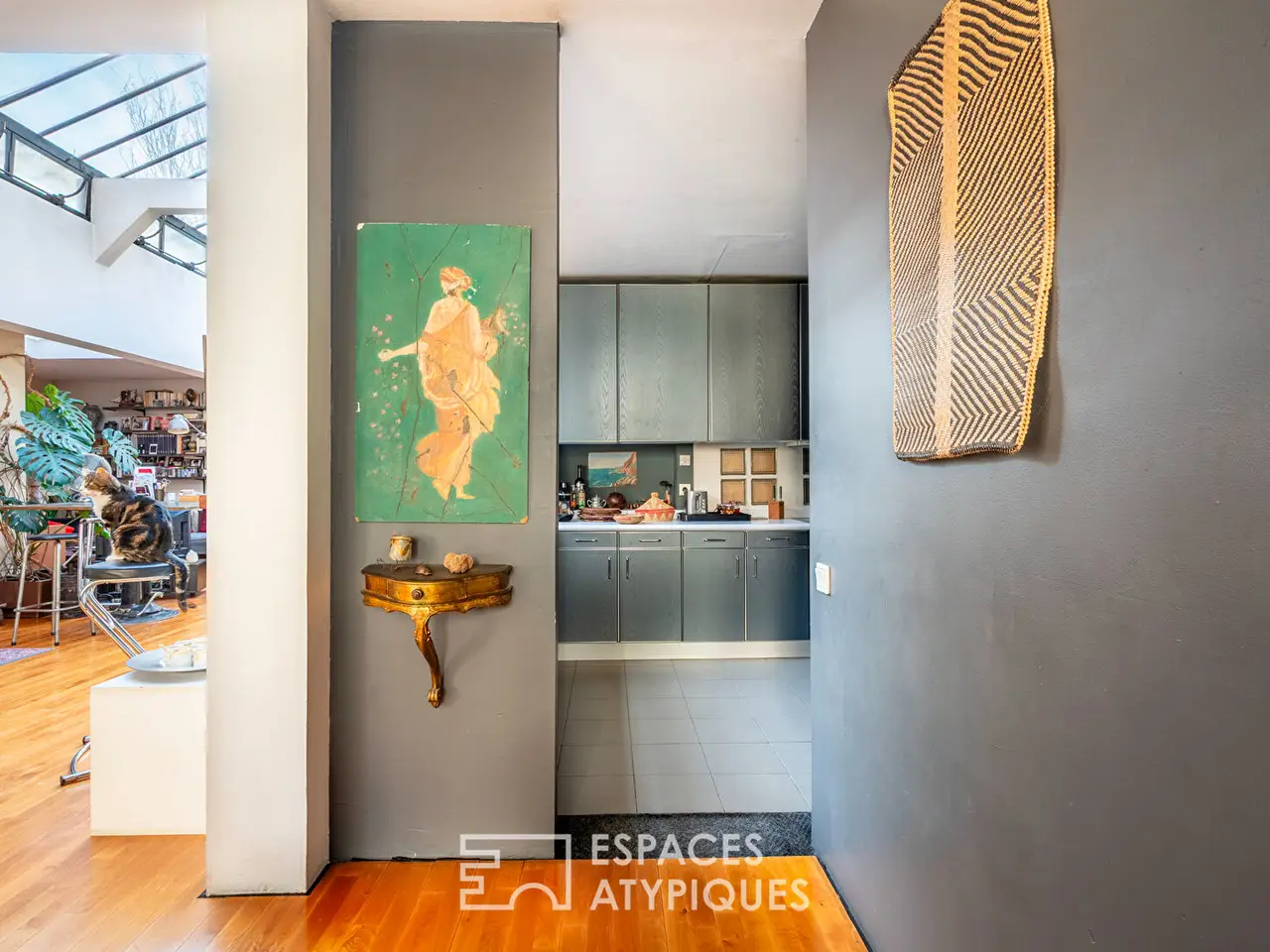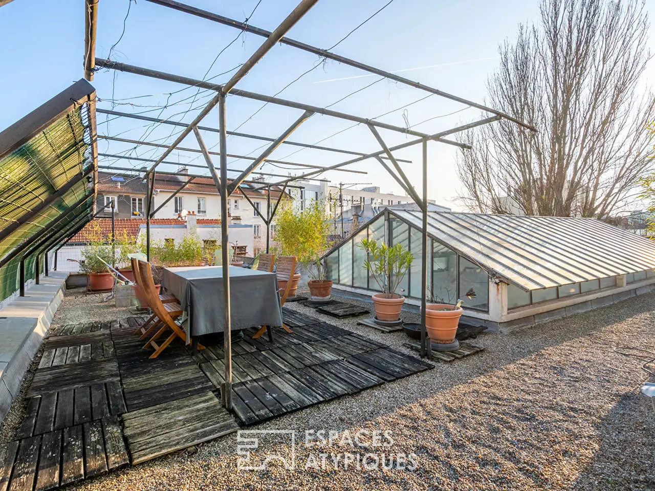 Ideally located in Les Lilas, set back from the street and in a quiet setting, this 136.28 m2 (Carrez law) loft boasts a 53 m2 (580 sq ft) rooftop, a monumental glass roof, and generous volumes.The entrance on the second and top floor leads to a vast 65 m2 (680 sq ft) living room topped by a large 4.65-meter (15 ft) skylight. This pleasantly distributes constant light throughout the space, while ensuring no overlooked views. The entire space is organized into several areas, including the dining room, the living room, and a reading nook. The 11 m2 (128 sq ft) kitchen, semi-open to the living room, features a pantry and a laundry area.Two bedrooms, measuring 15 m2 (170 sq ft) and 18 m2 (188 sq ft) respectively, a bathroom with a shower, and a separate toilet complete this level.Accessible via a spiral staircase, the 53 m2 rooftop offers a sky view and overlooks the living space through the glass roof.The ideal location, tranquility, and generous space make this loft a unique living space in the area.Metro line 11: Maire des Lilas and Serge Gainsbourg are 400 meters away.REF. 11878Additional information* 4 rooms* 2 bedrooms* 1 bathroom* Outdoor spaces : 53 SQM* 8 co-ownership lots* Annual co-ownership fees : 1 451 €* Property tax : 2 192 €* Proceeding : NonEnergy Performance CertificatePrimary energy consumptiond : 231 kWh/m2.yearHigh performance housing*A*B*C*231kWh/m2.year47*kg CO2/m2.yearD*E*F*GExtremely poor housing performance* Of which greenhouse gas emissionsd : 47 kg CO2/m2.yearLow CO2 emissions*A*B*C*47kg CO2/m2.yearD*E*F*GVery high CO2 emissionsEstimated average annual energy costs for standard use, indexed to specific years 2021, 2022, 2023 : between 2780 € and 3800 € Subscription IncludedAgency feesThe fees include VAT and are payable by the vendorMediatorMediation Franchise-Consommateurswww.mediation-franchise.com29 Boulevard de Courcelles 75008 ParisInformation on the risks to which this property is exposed is available on the Geohazards website : www.georisques.gouv.fr