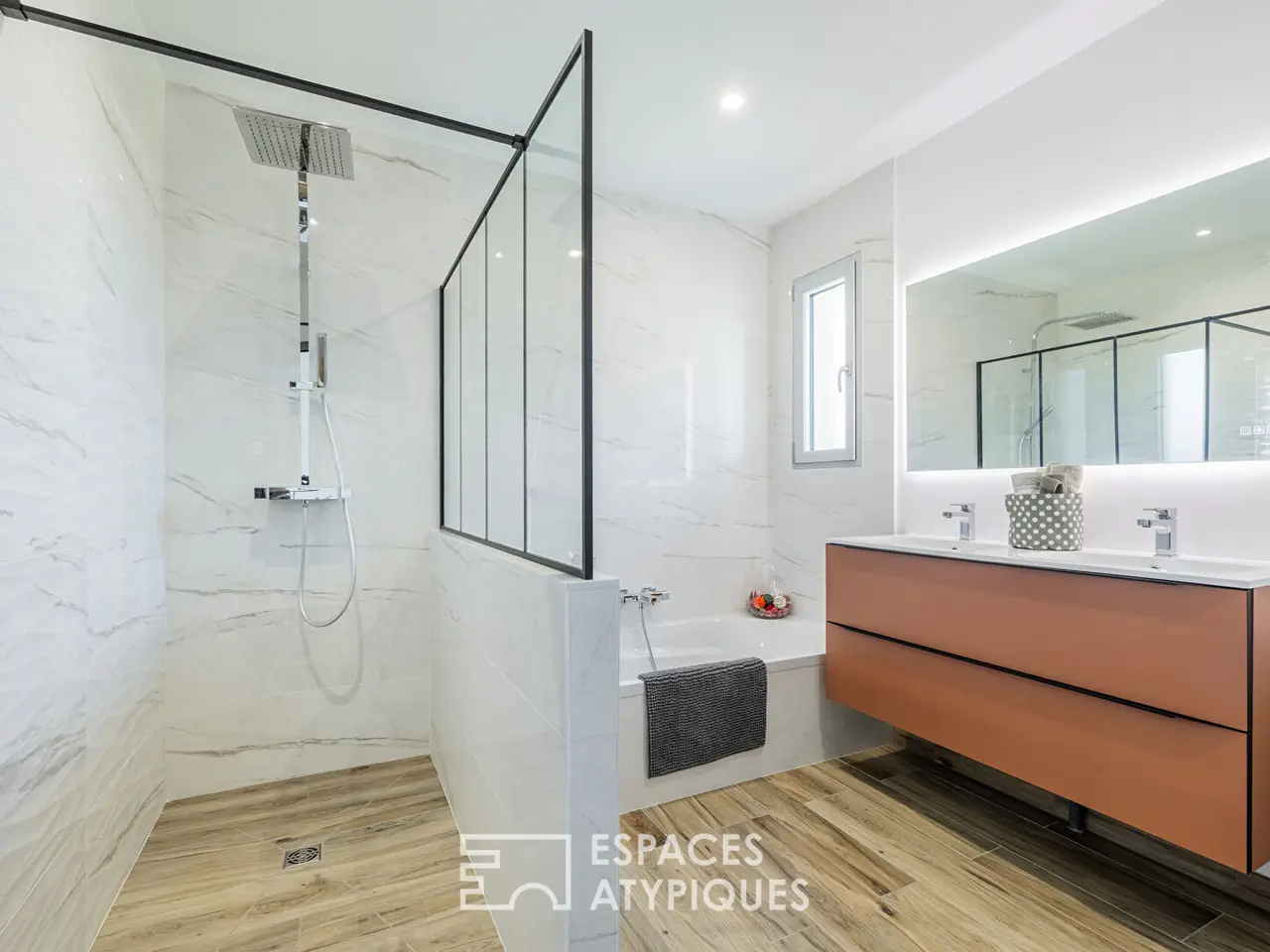 EXCLUSIVE ATYPICAL SPACESLocated in a privileged environment in Les Mathes-La Palmyre, this contemporary villa of approximately 192m2, completed at the end of 2023, is spread over a plot of more than 1000m2 within a luxury private residence comprising only seven properties. It benefits from a seaside resort open to the Atlantic, renowned for its fine sandy beaches lined with maritime pines and the 8000 hectares of the La Coubre forest, a permanent invitation to relax, swim, and escape into nature.Upon entering, a reception dressing room and guest toilet set the tone. The custom-made kitchen, designed by MOBALPA, seduces with its central island, the true heart of the home where lively conversations and culinary moments mingle. A utility room-pantry and a separate laundry room with direct access to the garage complete this functional space. The living room, with an area of approximately 64 m2, facing south-east, bathed in light thanks to its large bay windows, offers a pleasant atmosphere.Its dining area extends the indoor-outdoor atmosphere from the first rays of the sun. The master suite, facing the terrace, offers a real cocoon with its large dressing room and spacious private bathroom, complete with integrated toilet. Finally, an office, easily transformed into a bedroom, opens onto a terrace, revealing interesting development prospects. The staircase rises lightly to reveal, upstairs, a living space with a view overlooking the garden and its terrace below, converted into a lounge-library area. This sleeping area includes two comfortable bedrooms, one of which is a suite.The first has a closet-dressing room, while the second offers a real relaxation area with a living room equipped with a convertible sofa, completed by a bedroom with a dressing room.An elegantly designed shared bathroom serves these two bedrooms and is accompanied by a separate toilet for added comfort. Ideally located in the heart of a carefully landscaped setting, where plants, borders and creations skillfully blend wood and slate, it extends towards an elegant terrace ready to accommodate a jacuzzi, a spa (arrivals pending) or even a swimming pool, the plot being buildable. In fine weather, a summer lounge and a dining area are installed under the awning, offering a friendly and refined setting. Equipped with the latest technologies and a home automation system including heated floors, it offers absolute comfort.An elegant and soothing place, sheltered from the hustle and bustle, located just 1 km from La Palmyre beach and 1.5 km from the market and shops.Whether as a primary or secondary residence, this villa reveals a privileged living environment, where serenity and the sweetness of life take on their full meaning.ENERGY CLASS: A / CLIMATE CLASS: A. Estimated average amount of annual energy expenditure for standard use, established from 2021 energy prices: between EUR520 and EUR750.REF. EALR2169Additional information* 6 rooms* 4 bedrooms* 1 bathroom* 1 bathroom* 1 floor in the building* Outdoor space : 1000 SQM* Parking : 1 parking space* Property tax : 1 318 €Energy Performance CertificatePrimary energy consumptiona : 42 kWh/m2.yearHigh performance housing*42kWh/m2.year1*kg CO2/m2.yearA*B*C*D*E*F*GExtremely poor housing performance* Of which greenhouse gas emissionsa : 1 kg CO2/m2.yearLow CO2 emissions*1kg CO2/m2.yearA*B*C*D*E*F*GVery high CO2 emissionsEstimated average amount of annual energy expenditure for standard use, established from energy prices for