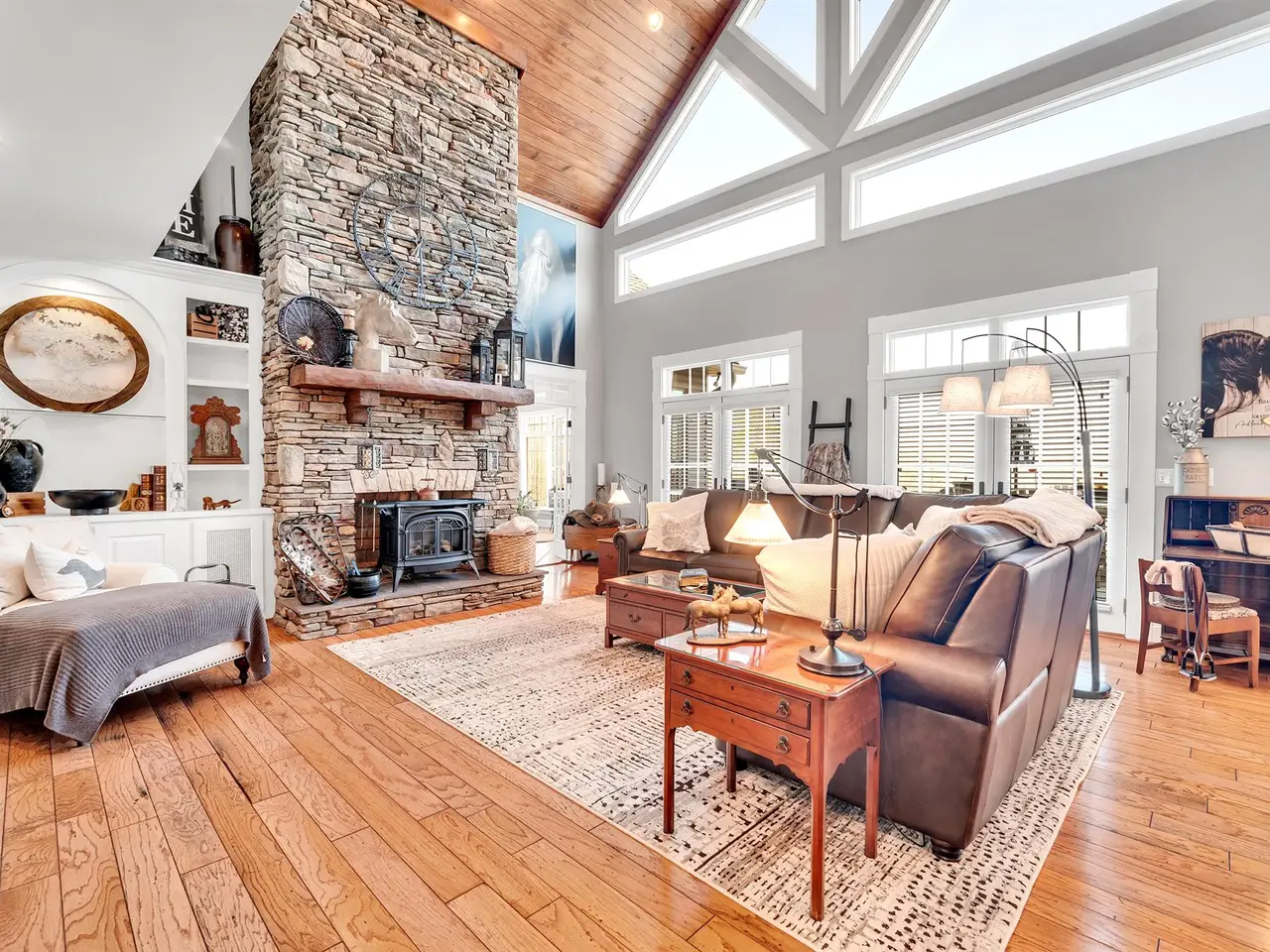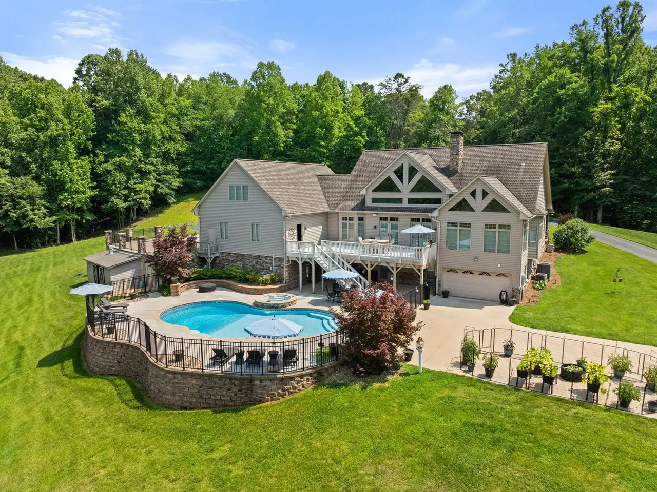 This breathtaking horse property on the Yadkin River offers the perfect blend of luxury and country charm. Set on 24.25+/-rolling acres, it features fenced pastures and a 5 stall well-equipped stable - ideal for equestrian enthusiasts. The elegant home boasts an open-concept design, a gourmet kitchen with premium finishes, and a lavish owner's suite with a spa-like bath. Enjoy a grand living room with a stone fireplace, a sunroom with panoramic views, and poolside spaces perfect for entertaining. Whether riding the trails or relaxing in serenity, this property is a true retreat. Schedule your private tour today!