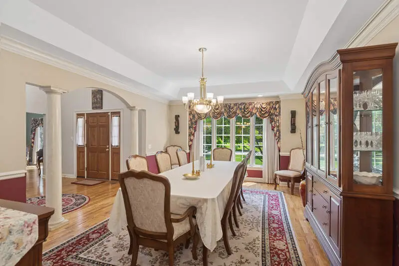 Impressive 4-bedroom, 5.5-bath custom-built home located in the sought-after Lake Somerset community. This spacious residence features a formal dining room with elegant custom trim and butlers pantry, a living room, and family room with vaulted ceilings, and expansive windows offering views of the beautifully landscaped yard. The kitchen is equipped with birch wood cabinetry, a breakfast area, and opens to the main living spaces-perfect for everyday living and entertaining. The first floor also includes an office, powder room, and an additional full bathroom. Upstairs, the oversized primary suite includes a large en-suite bath. Two bedrooms share a stylish updated Jack-and-Jill bath, while the fourth bedroom offers its own private en-suite. A spacious laundry room and a bonus room ideal for a second office or hobby space complete the upper level. The finished basement includes a full bathroom and offers excellent space for a recreation room, home gym, or guest suite. Step outside to a private backyard retreat featuring professional landscaping and a large brick paver patio-perfect for outdoor entertaining.