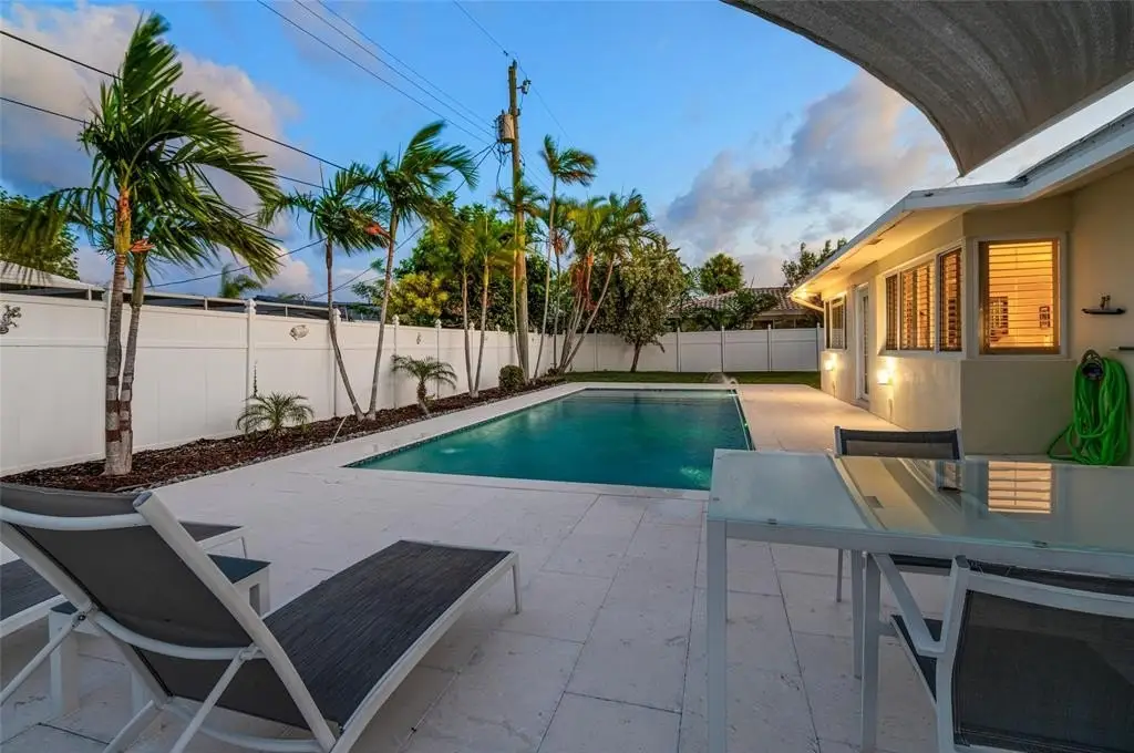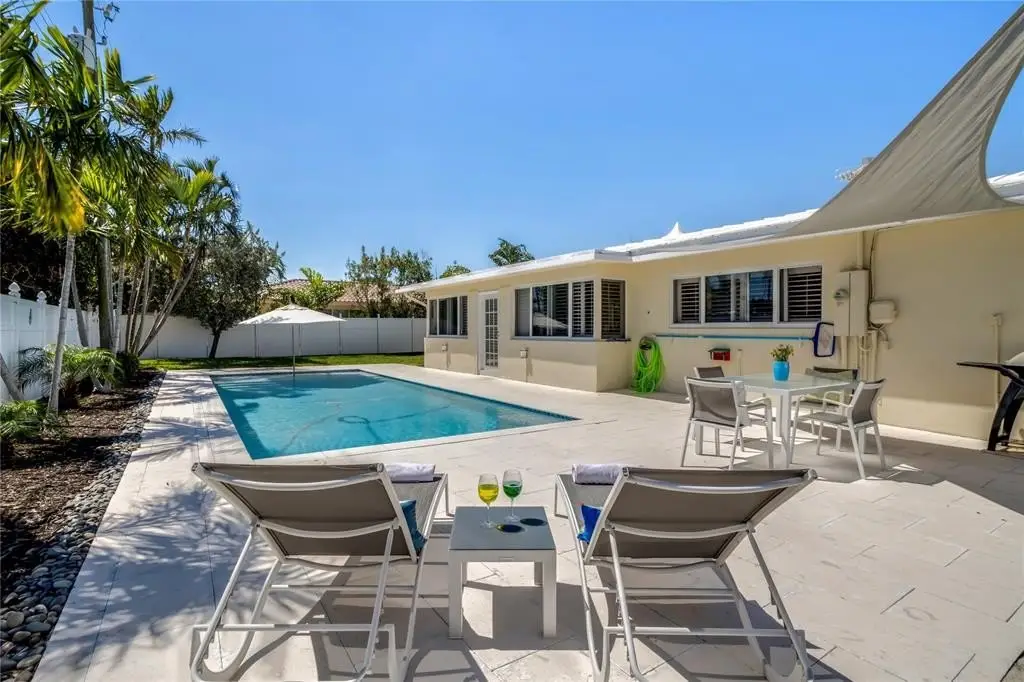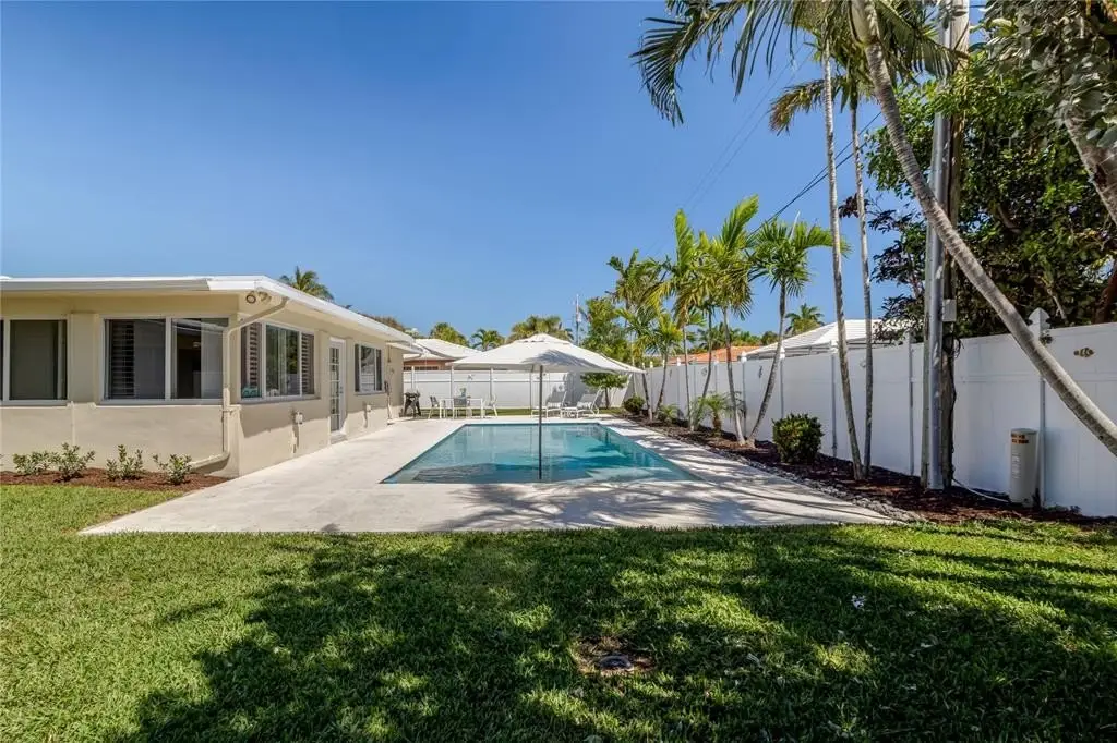 In the desirable Venetian Isles enclave of Lighthouse Point, this stylish garden residence stands, exquisitely finished and impeccably maintained. Light-filled interiors showcase the modern upgrades to the upscale kitchen, three spacious bedrooms and two full bathrooms. Other amenities include impact windows & doors, new paint, pavered driveway, laundry room, 2017 A/C and more. Fenced backyard presented as a secluded tropical oasis with a new resort-style, saltwater pool installed in 2018. An air-conditioned office in the garage can easily revert to a full two-bay garage. Near the Lighthouse Point Yacht Club, this home offers unmatched comfort and convenience.