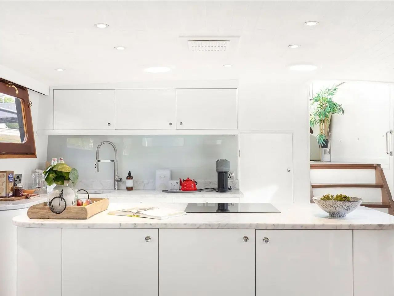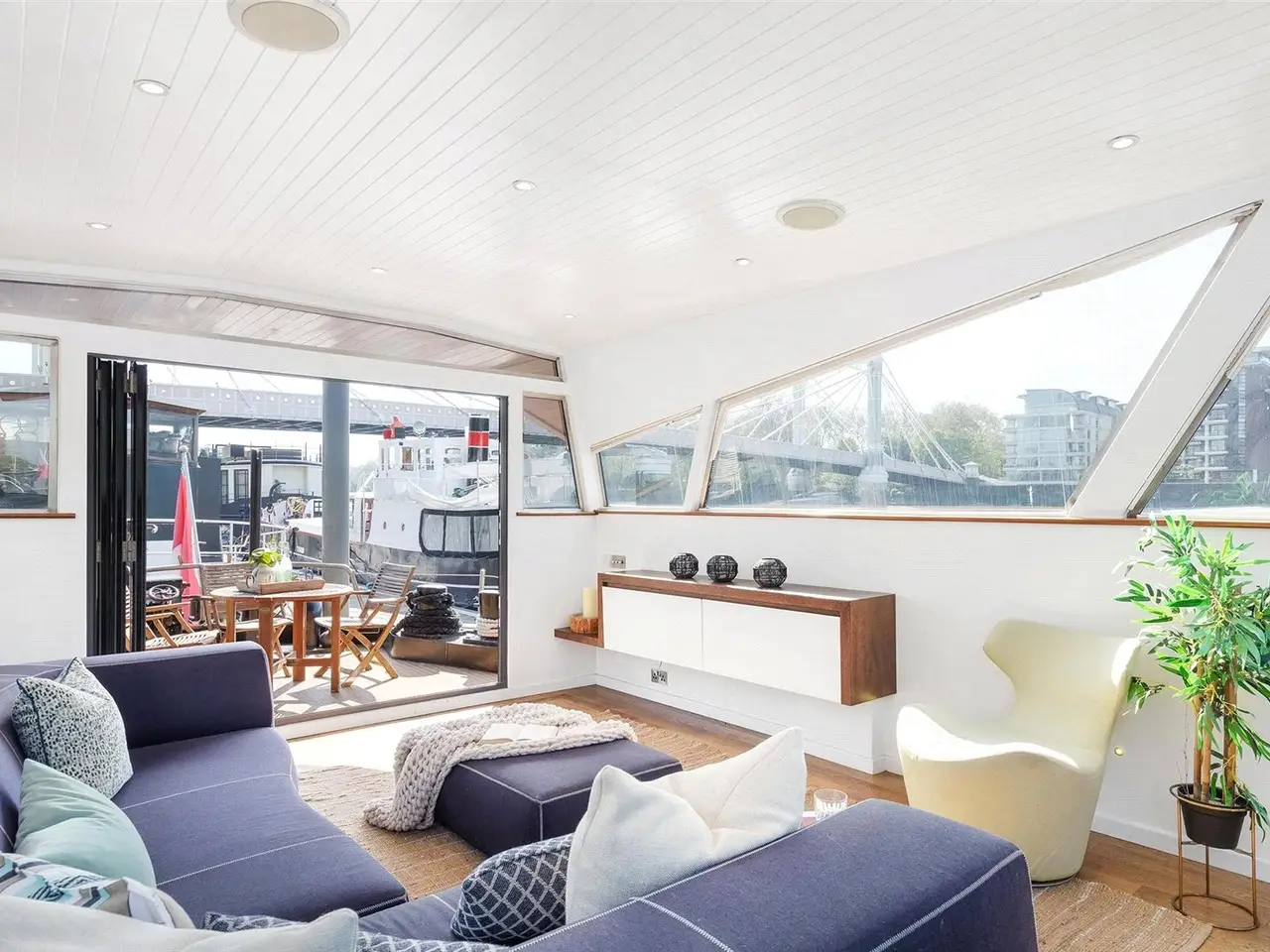 Live the dream on this incredible riverboat moored at the famous Cadogan Pier on the Chelsea Embankment by the stunning Albert Bridge.