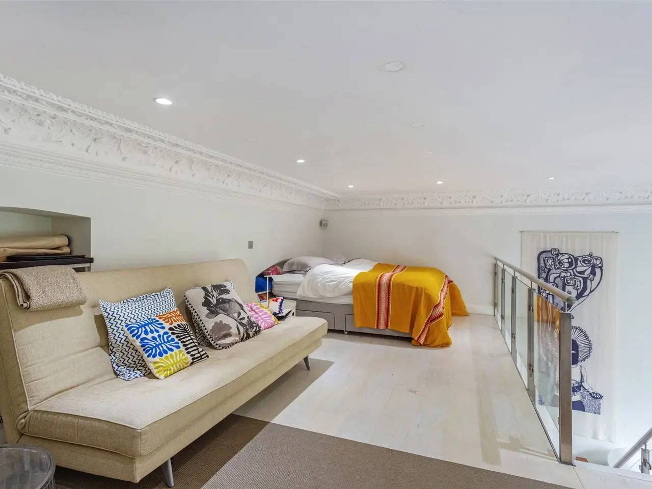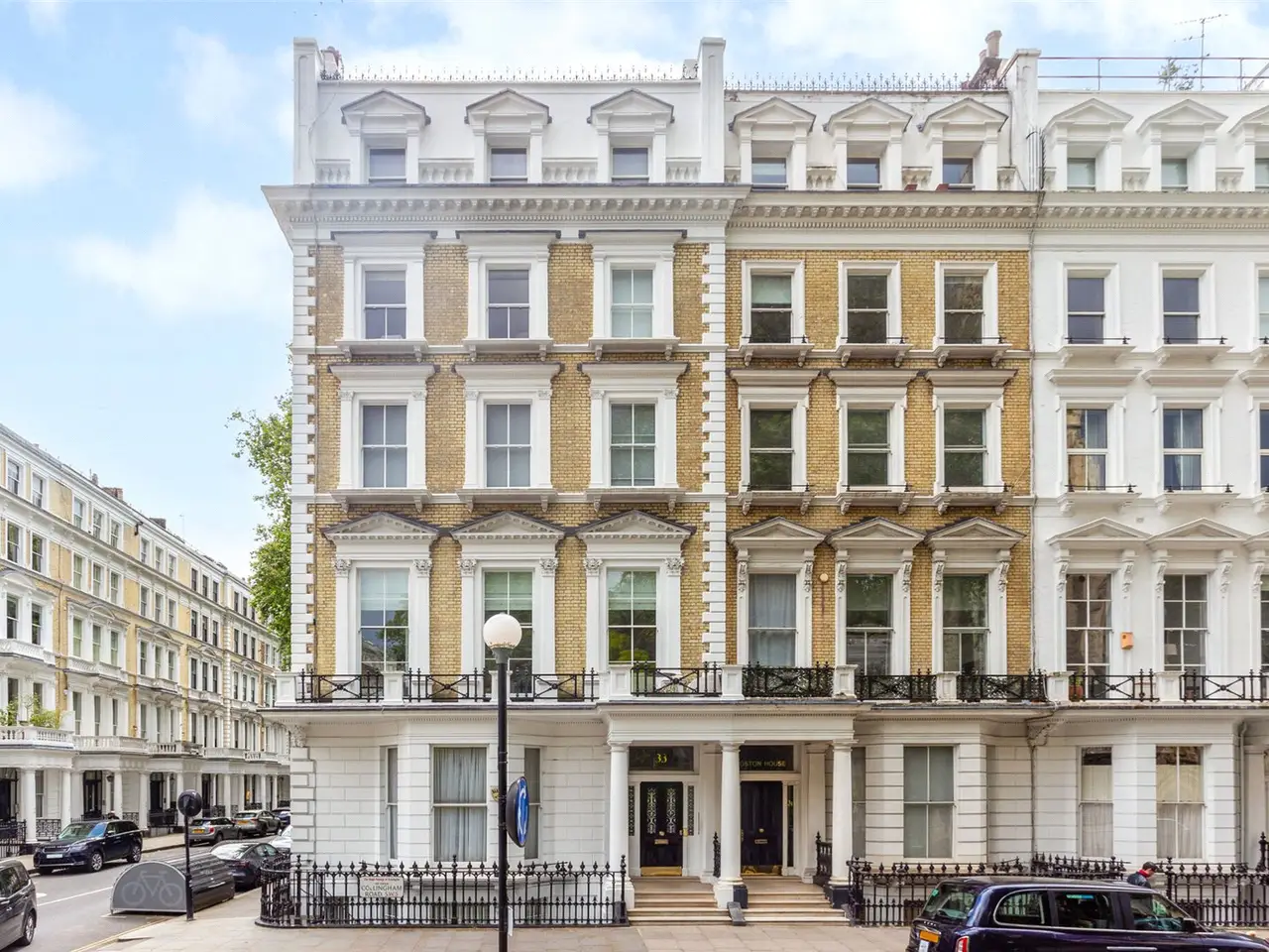 A rare first floor apartment with 13 foot ceilings and three front facing sash windows overlooking trees and park, and with access to the award winning Courtfield Gardens West. Lift access and front balcony.