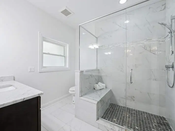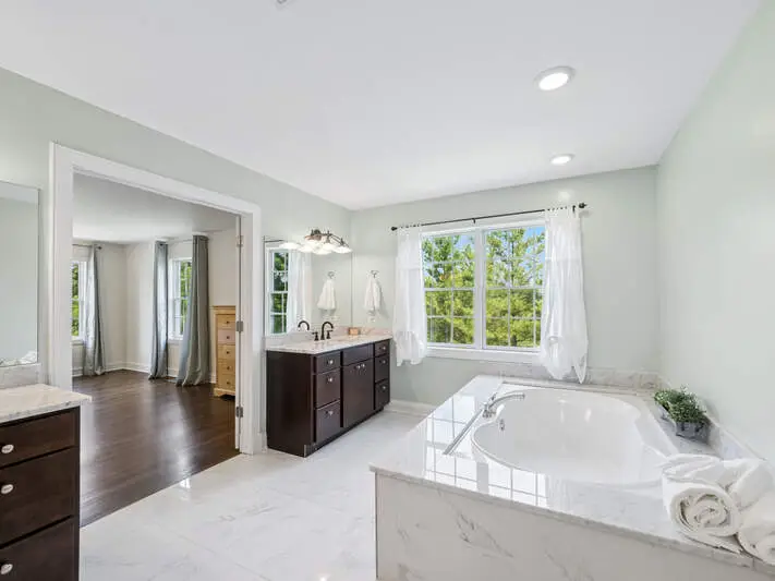 Luxurious primary suite with spa-inspired bathroom