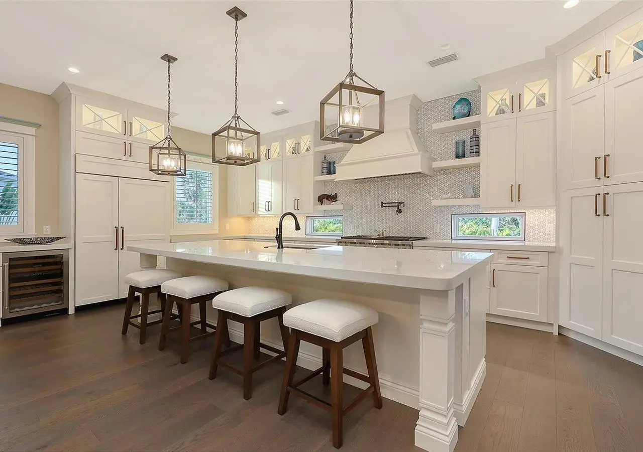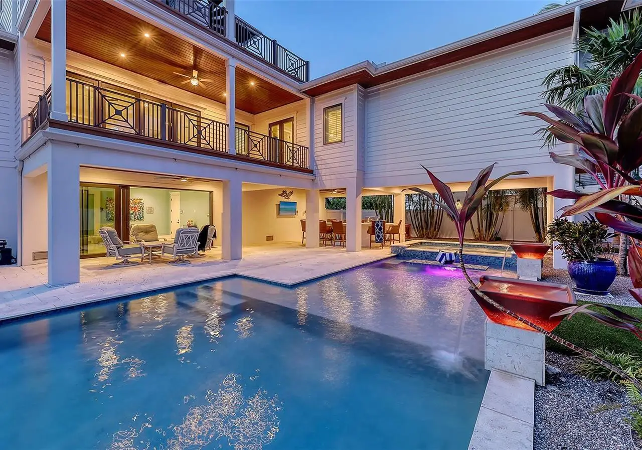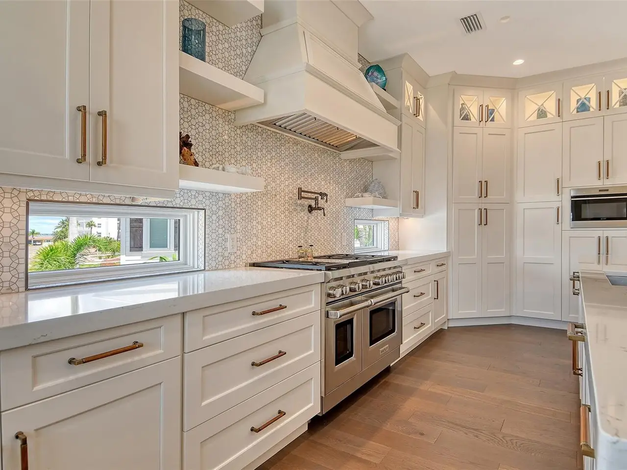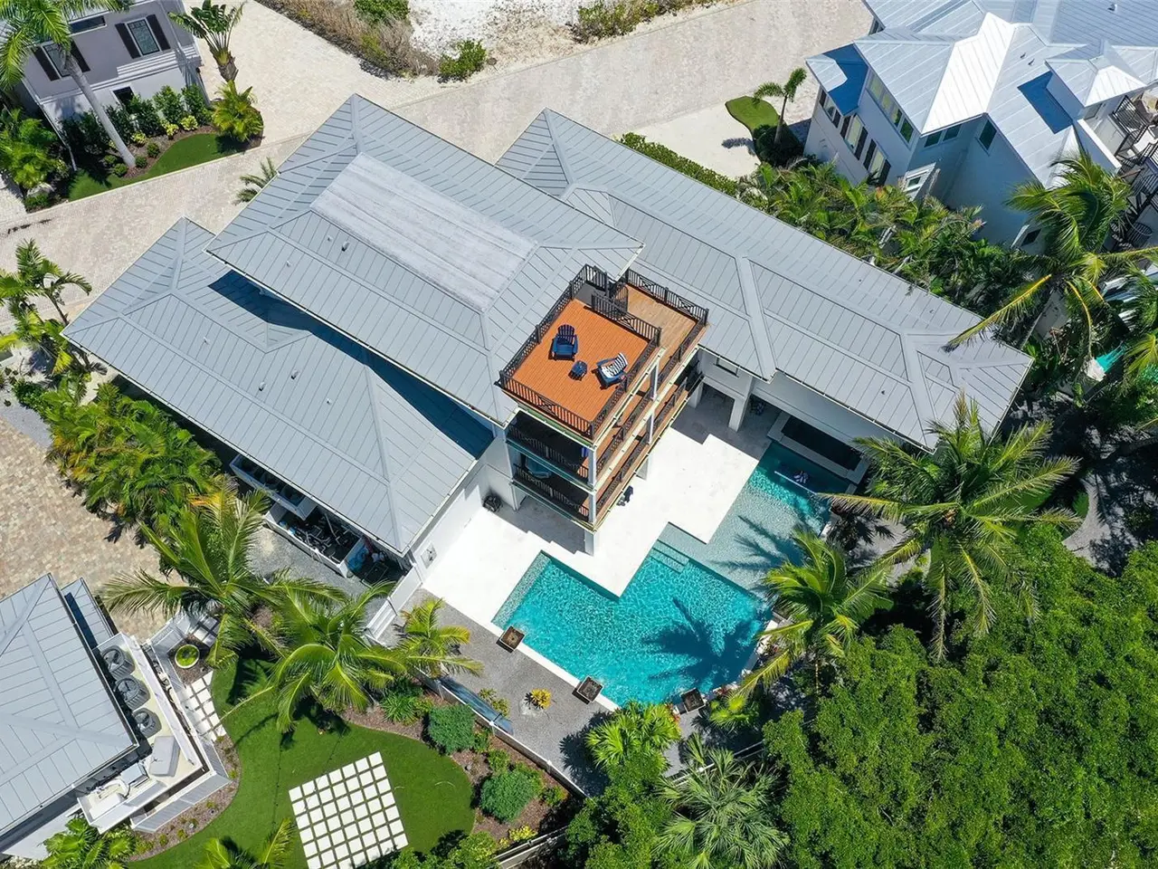 The Quintessence of Coastal Living: A British West Indies Masterpiece on Longboat Key - Where Architecture Meets Paradise. Offered turnkey, this exquisite 4,000-plus square foot, four bedroom, 4.5 bath residence in Longboat Keys prestigious Bonaire subdivision is a rare union of refined British West Indies architecture and the serene beauty of Florida’s Gulf Coast. Every inch of this home has been thoughtfully crafted to evoke a sense of effortless luxury - where sun-kissed days and gentle Gulf breezes blur the line between indoors and out. From the moment you step through the grand entrance, you’re embraced by light, texture, and tranquility. Creamy finishes, warm woods, and bespoke millwork elevate every space, while expansive windows and French doors invite in the turquoise glow of the Gulf and the soothing rhythm of coastal life. Main Level Elegance - The heart of the home features an open-concept chefs kitchen with top-of-the-line appliances: a Wolf 6-burner gas range with custom vent hood, dual Asko dishwashers, Sub-Zero refrigerator/freezer, Wolf convection/microwave, and a 50-bottle wine captain. Quartz countertops, artisan pendant lighting, and a massive island with farmhouse sink make this space as beautiful as it is functional. The adjoining dining and great room flow effortlessly to an expansive balcony - perfect for indoor-outdoor entertaining. The main-floor Primary Suite offers tray ceilings, shiplap accents, dual walk-in closets, and a spa-inspired bath with soaking tub, double-entry stone shower, and sparkling stone vanities. Two additional ensuite guest rooms on this level echo the homes airy, coastal elegance, and exceptional quality. Upper-Level Retreat - Ascend to a private owners sanctuary with dual custom closets and a lavish bath adorned with blue calcite counters, glass mosaic tile, and a freestanding tub. This level includes a substantial private balcony with access to the upper-level viewing balcony. The Observation Deck - Crowning the home is the ultimate vantage pointa crows nest with panoramic Gulf and Sarasota Bay views. Its here youll end each day watching sunsets paint the horizon in unforgettable color. Resort-Style Outdoor Living - The pool retreat is an absolute showstopper - pocketing sliding doors reveal coral stone terraces, a resort-style pool with sun shelf and tiled cocktail table, a 10-person spa, and a fully equipped outdoor kitchen with seating for eight. The entire area is lined with an automatic insect elimination system to ensure you can enjoy the outdoors all year long. Optical lighting enhances the overflowing water features which seem to dance in the glow of firelight, creating the perfect setting for stargazing or nightcaps. The community provides private beach access and is close to world-class golf, tennis, fine dining, and the largest deep-water marina on the Gulf coast. This is more than a home - its a sanctuary, a work of art, and a lifestyle. Delivered exactly as you see it, fully furnished and ready to enjoy, this British West Indies masterpiece awaits the one discerning buyer ready to claim the very best of Longboat Key coastal living.