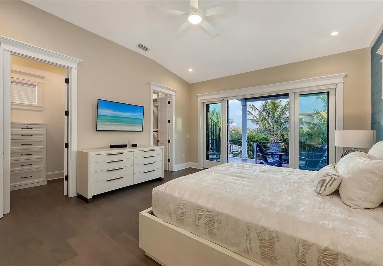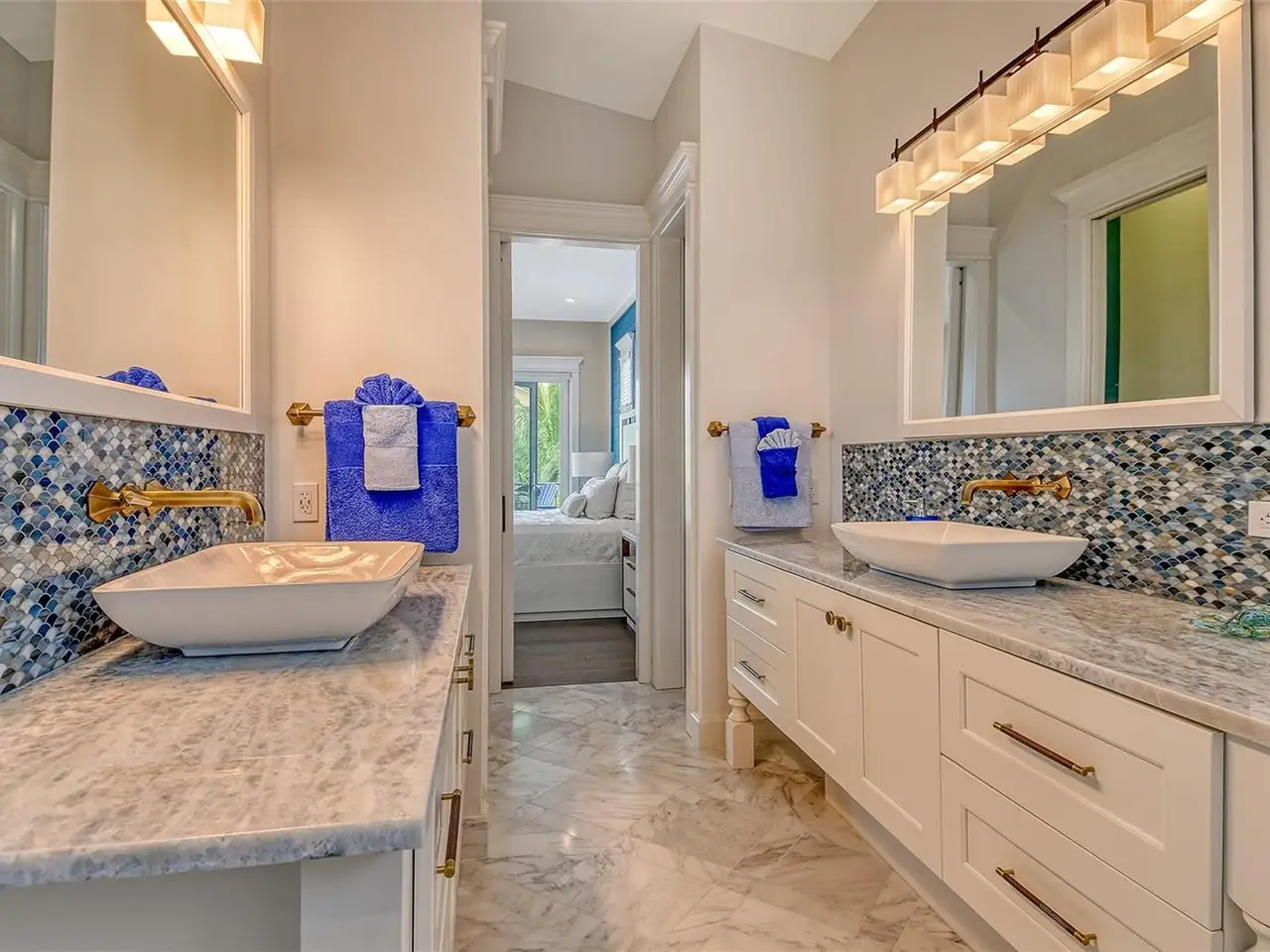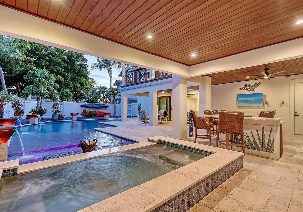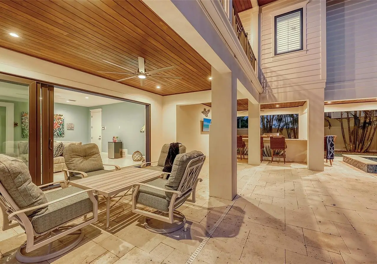 The Quintessence of Coastal Living: A British West Indies Masterpiece on Longboat Key - Where Architecture Meets Paradise. Offered turnkey, this exquisite 4,000-plus square foot, four bedroom, 4.5 bath residence in Longboat Keys prestigious Bonaire subdivision is a rare union of refined British West Indies architecture and the serene beauty of Florida’s Gulf Coast. Every inch of this home has been thoughtfully crafted to evoke a sense of effortless luxury - where sun-kissed days and gentle Gulf breezes blur the line between indoors and out. From the moment you step through the grand entrance, you’re embraced by light, texture, and tranquility. Creamy finishes, warm woods, and bespoke millwork elevate every space, while expansive windows and French doors invite in the turquoise glow of the Gulf and the soothing rhythm of coastal life. Main Level Elegance - The heart of the home features an open-concept chefs kitchen with top-of-the-line appliances: a Wolf 6-burner gas range with custom vent hood, dual Asko dishwashers, Sub-Zero refrigerator/freezer, Wolf convection/microwave, and a 50-bottle wine captain. Quartz countertops, artisan pendant lighting, and a massive island with farmhouse sink make this space as beautiful as it is functional. The adjoining dining and great room flow effortlessly to an expansive balcony - perfect for indoor-outdoor entertaining. The main-floor Primary Suite offers tray ceilings, shiplap accents, dual walk-in closets, and a spa-inspired bath with soaking tub, double-entry stone shower, and sparkling stone vanities. Two additional ensuite guest rooms on this level echo the homes airy, coastal elegance, and exceptional quality. Upper-Level Retreat - Ascend to a private owners sanctuary with dual custom closets and a lavish bath adorned with blue calcite counters, glass mosaic tile, and a freestanding tub. This level includes a substantial private balcony with access to the upper-level viewing balcony. The Observation Deck - Crowning the home is the ultimate vantage pointa crows nest with panoramic Gulf and Sarasota Bay views. Its here youll end each day watching sunsets paint the horizon in unforgettable color. Resort-Style Outdoor Living - The pool retreat is an absolute showstopper - pocketing sliding doors reveal coral stone terraces, a resort-style pool with sun shelf and tiled cocktail table, a 10-person spa, and a fully equipped outdoor kitchen with seating for eight. The entire area is lined with an automatic insect elimination system to ensure you can enjoy the outdoors all year long. Optical lighting enhances the overflowing water features which seem to dance in the glow of firelight, creating the perfect setting for stargazing or nightcaps. The community provides private beach access and is close to world-class golf, tennis, fine dining, and the largest deep-water marina on the Gulf coast. This is more than a home - its a sanctuary, a work of art, and a lifestyle. Delivered exactly as you see it, fully furnished and ready to enjoy, this British West Indies masterpiece awaits the one discerning buyer ready to claim the very best of Longboat Key coastal living.