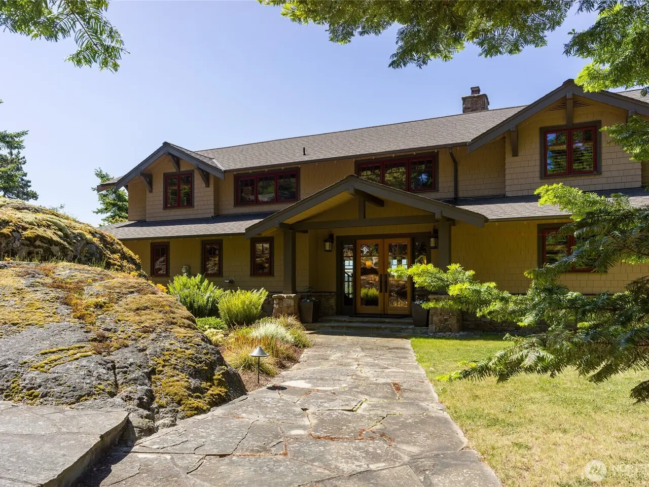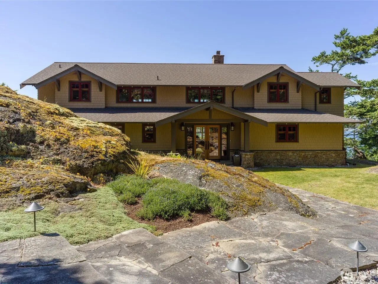 LOPEZ ISLAND LUXURY A rare blend of privacy, distinction & breathtaking views. This custom NW Craftsman sits on 27 waterfront ac overlooking MacKaye Harbor to Vancouver Is & OLympic Mtns. Designed for southern vistas, the 3BD/3BA home features madrona floors, banks of windows & clear fir cabinetry & finishes. Great Room centers on a stone fireplace with built-ins & view daybed. A chef's kitchen offers slate counters, double ovens, Wolf cooktop & breakfast nook. Two ensuite primary bedrooms with walk-in closets, one with covered deck. French doors open to sunny stone patio & eagle-eye views. Detached garage with studio above. Seasonal creek winds thru mature woods & pasture. Large shop/garage, fenced garden, fruit trees, chicken house & more.