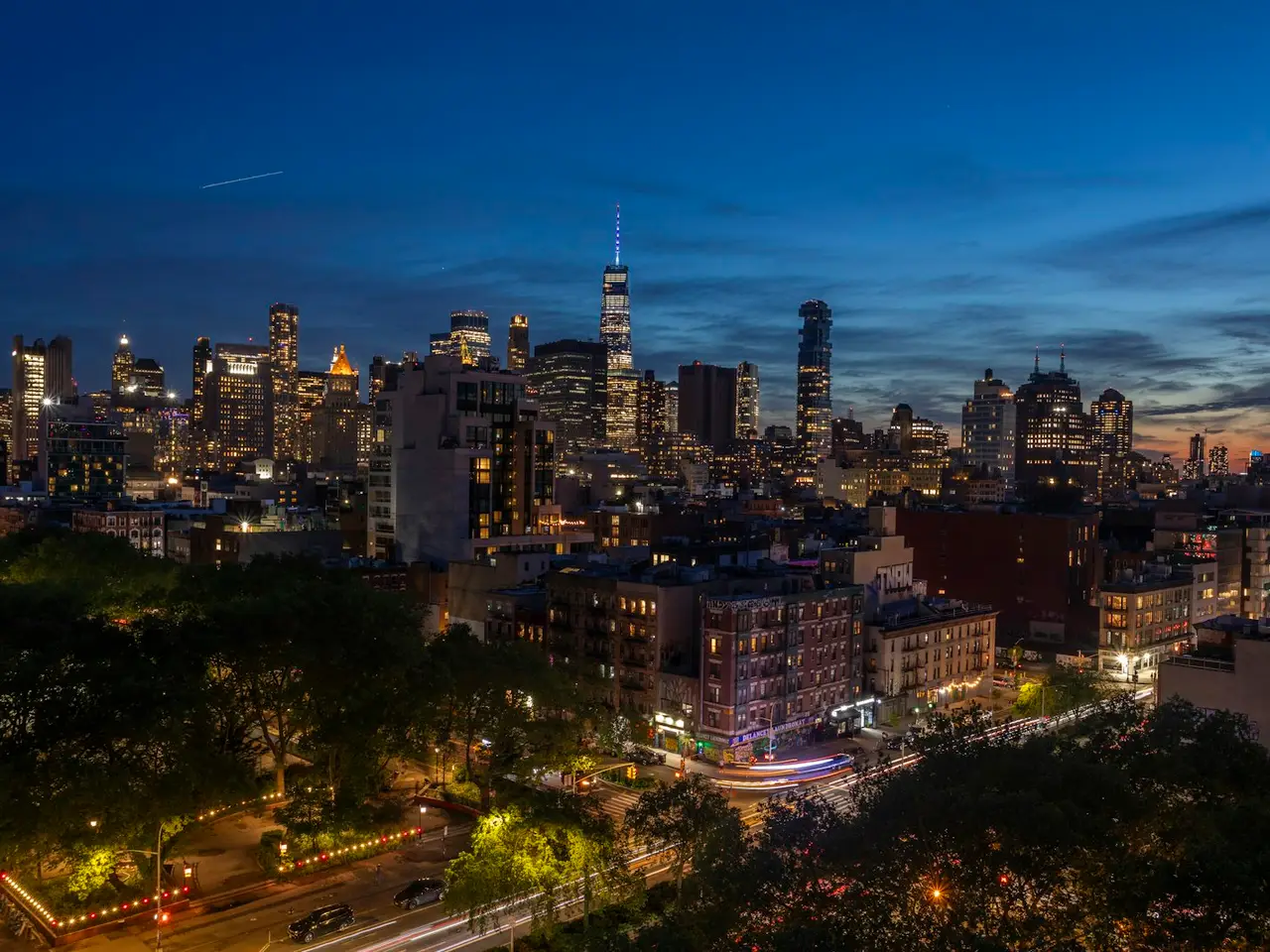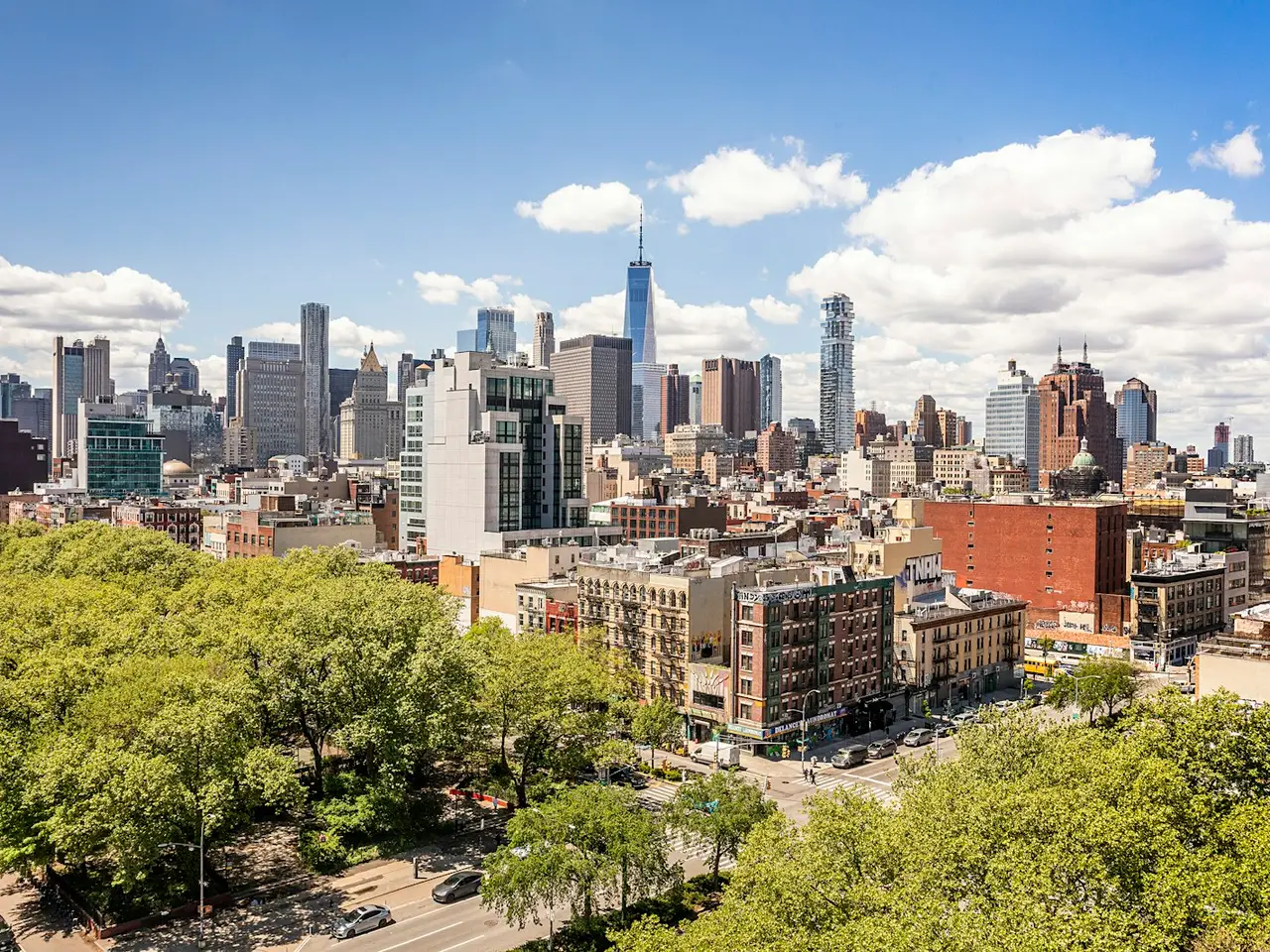 Welcome to the highly coveted "D" line - a corner apartment with the most extraordinary 270 degree views and abundance of sunlight throughout the day. Wake up to unobstructed park & Empire State Building views, later watch the sun set behind your panoramic vistas of the Freedom Tower. Fantastic split bedroom layout, windowed open chef's kitchen, 2 full baths and oversized private balcony. Additional highlights include Oak flooring, floor to ceiling windows, individual zoned heat/AC, 9 ft. ceilings, excellent closet and storage space, and a W/D that vents out. Onsite garage parking (fee) available as well as a 24 hour concierge, storage (fee) and roof deck. Located on the corner of Nolita/LES & Chinatown with great access to transportation and all the best Manhattan has to offer.