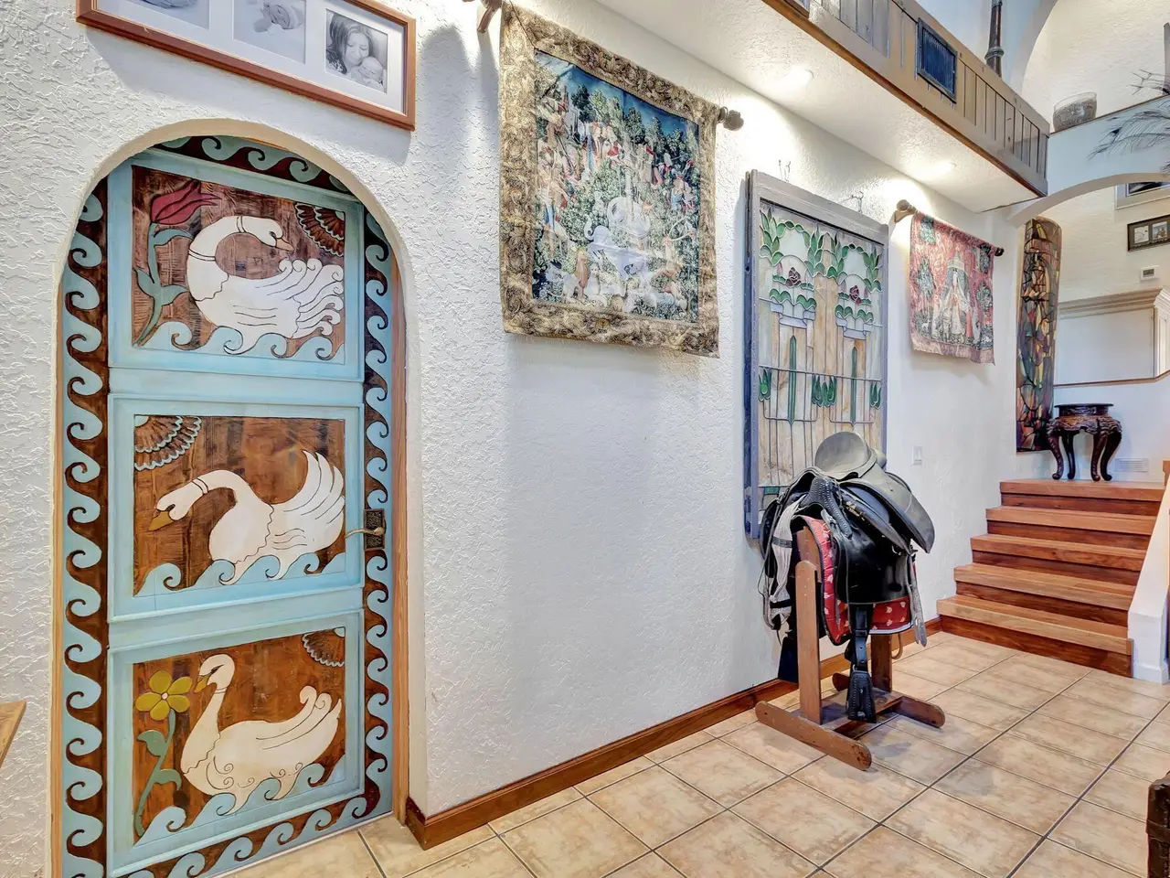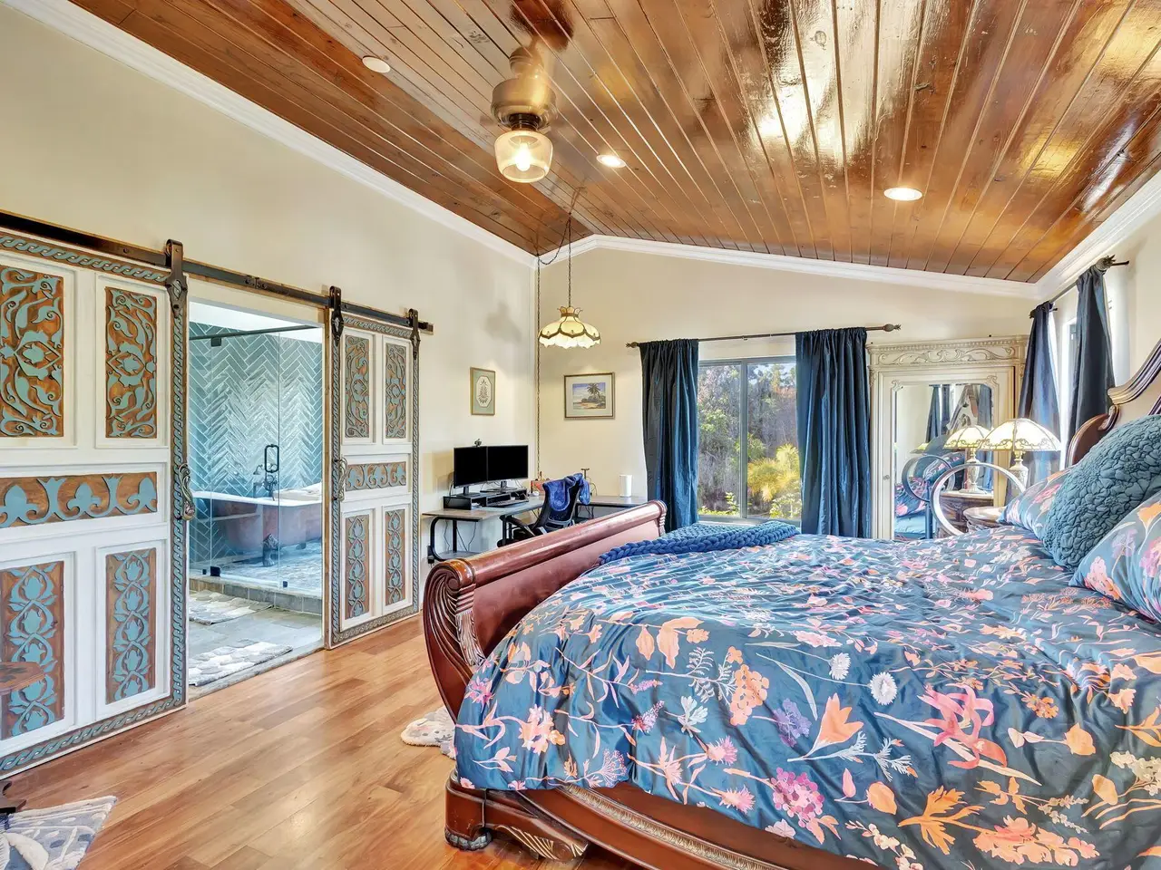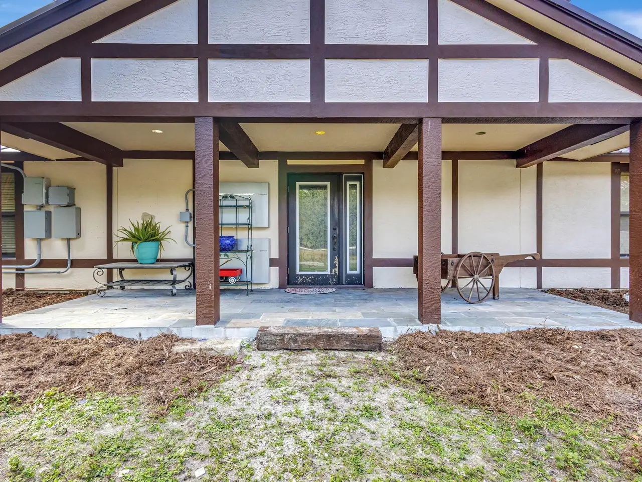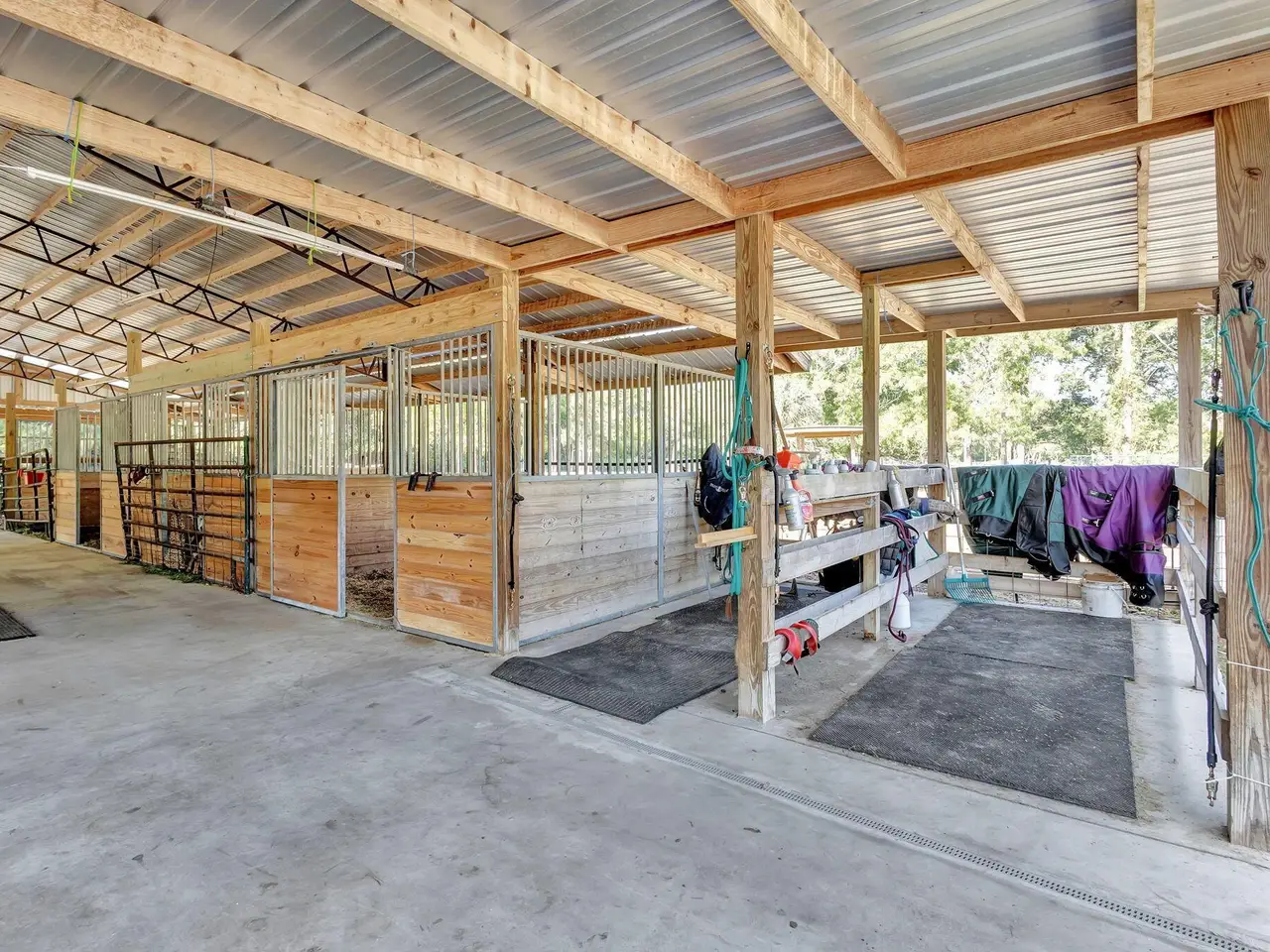 Where can you live in Palm Beach County on a quiet peaceful road? Dellwood Road! All 3 oversized bedrooms have full ensuite baths. Upstairs primary suite is spacious and cozy with a walk-in closet, luxurious spa tub, and twin shower wet room with His and Hers vanities. Relax in the heart of the house with an open plan kitchen and dining area, separated by a stone dual-sided fireplace. Off the kitchen is an attached 27x12 art/hobby space, or convert to an additional bedroom. Outside, cool off in a full salt system pool with a tanning shelf and spa, including a summer kitchen and grill. Outside is a 7 stall, 40x60 barn with 12x12 stalls, paddocks, and 2 wash racks. Spacious fenced 90x200 riding arena with sand footing. The property is fenced and cross fenced with 3 paddocks.. A 56x21 outbuilding, including a half bath, could be a workshop, guest space of extra storage. Welcome Home!