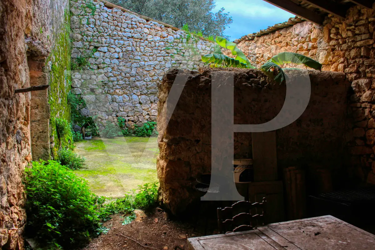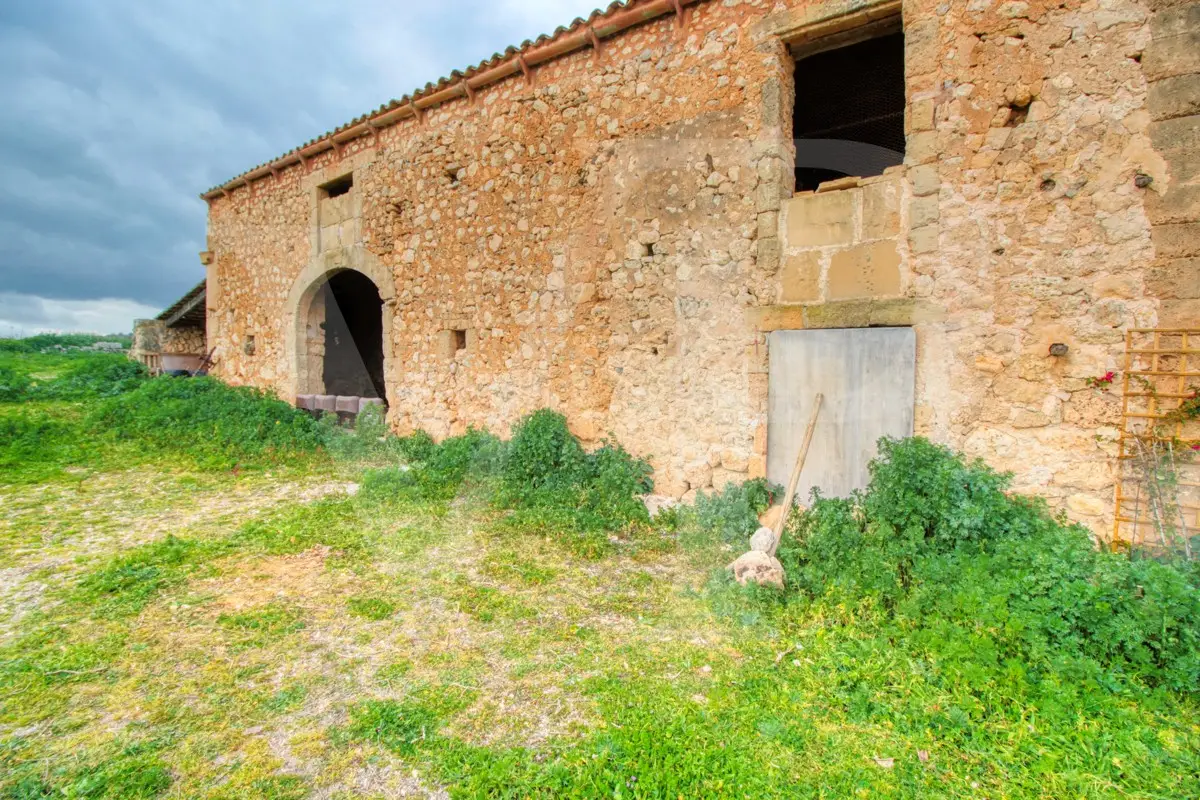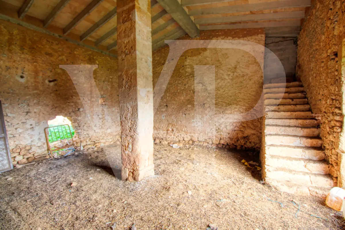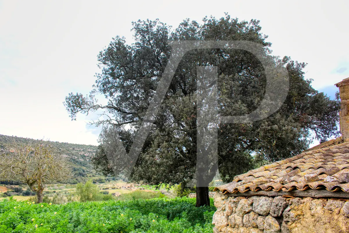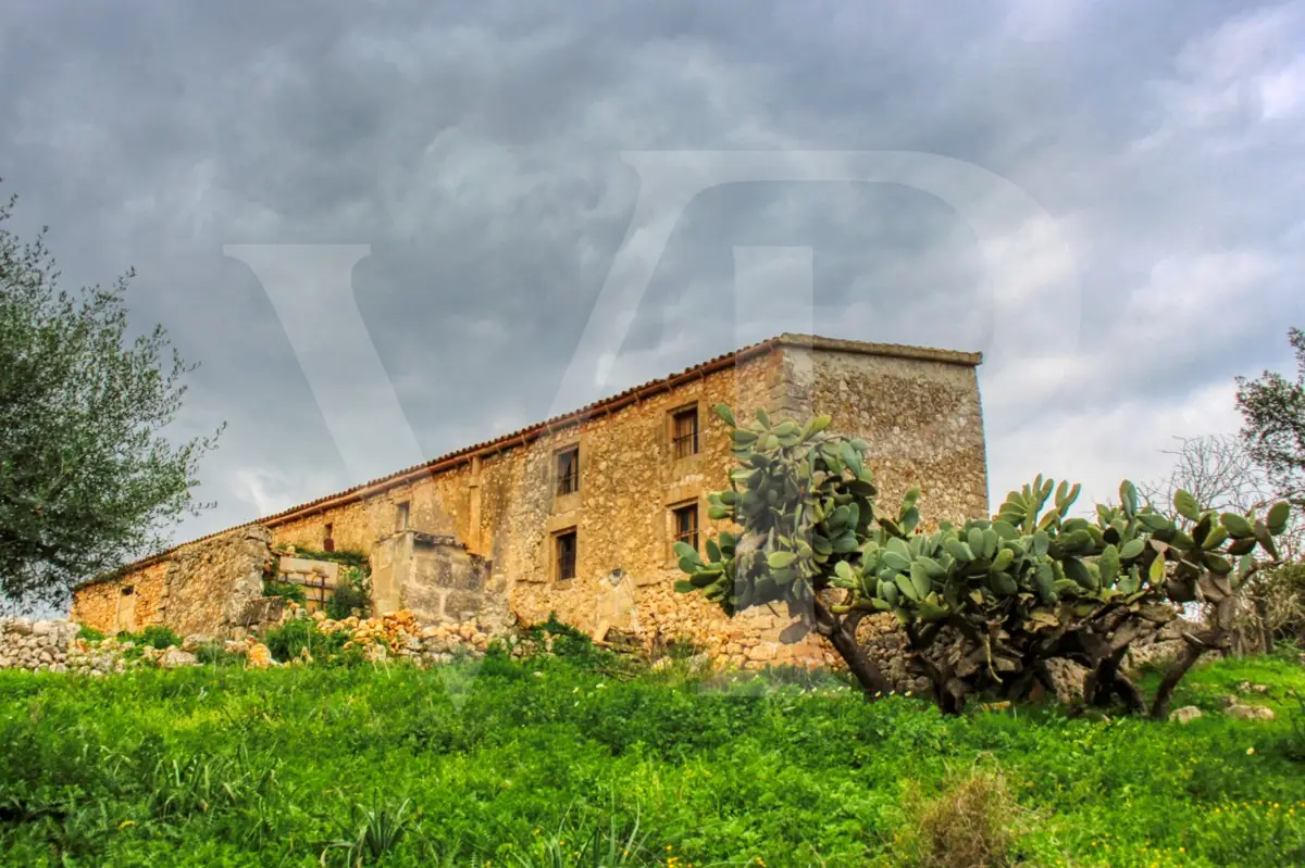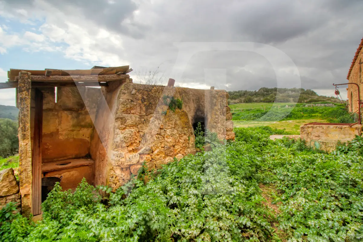Spectacular finca for sale with fantastic Mallorcan "possessió" house in a unique enclave, a beautiful hill in the north of Manacor. This spectacular finca sits on the top of a hill between the municipalities of Petra, Ariany and Manacor and covers almost 47 hectares of land. Overlooking the valley of Manacor, where the view extends to the beautiful mountains of Ferrutx and Arta. Surrounded by a varied landscape, incredible cliffs, cultivated fields, Mediterranean forests and beautiful hills. Access is via a country road with a few properties and through a deciduous forest to the house. Distributed over two floors, in a good state of conservation, with a total area of 760 square meters, built before 1956. It has an old kitchen/dining room with large fireplace, pantry, three bedrooms and a large open space upstairs. The kitchen has access to a charming small courtyard "cloister", former stables and verandas. Two old stables, large threshing floor, the property is completely fenced with grids and stone walls. Large cistern with large water storage capacity, own 60 meter well in the old orchard. There is also a water source with a constant inflow from the mountains, about two tons per day. At the top of the finca's hill there is a large flat area with a unique view. Most of the property is located in a Natural Area of Special Interest, a protected natural area.