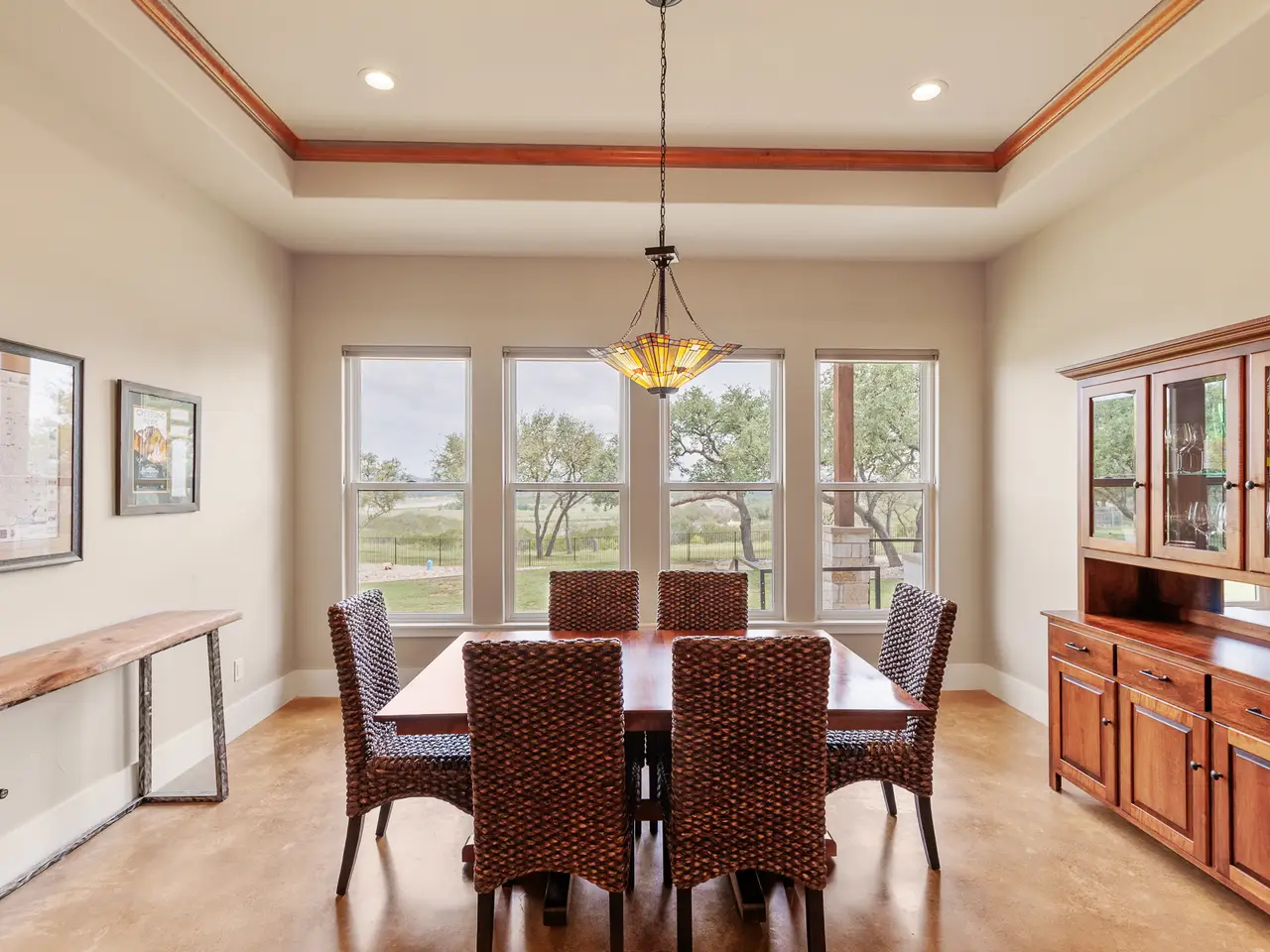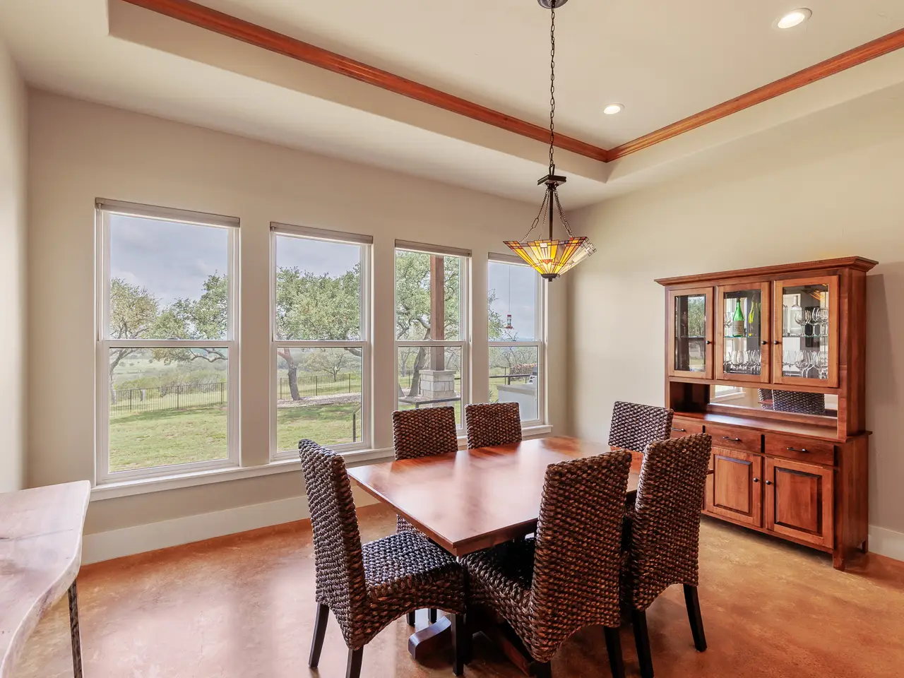 This is Texas! Custom built ranch-style home set on 5 wide open acres, featuring 3880sqft, 3 bedrooms, 3.5 baths & a 3 car attached garage is the perfect blend of spacious living with modern amenities; ideal for family gatherings and outdoor enjoyment. As you enter the property, you can imagine yourself seated on the front porch, rocking to the cool breeze. Step inside and find vaulted tongue-and-groove ceilings and exposed beams in the spacious, open living room. The fireplace and built-in cabinets showcase this stunning space with huge picturesque windows that overlook the covered back patio with a stone fireplace. Enjoy coffee or wine on the expansive back porch, grill steaks with a gourmet outdoor kitchen. Back inside, the chef-style kitchen features granite counter tops, wine refrigerator, ice maker, double islands, plenty of storage, a coffee bar, sleek, stainless steel appliances, all perfect for entertaining. The spacious sun-filled primary suite & ensuite bathroom create a relaxing atmosphere with the same great views. Bonus rooms include a personal gym, an enclosed sunroom, and a home office. The two guests bedrooms are versatile with so much space. Homeowners will love the whole-home generator and the rain water collection system. Want to plant a garden, there®s plenty of room. This home embodies modern luxury in the Texas Hill Country. If you want to live where the cattle roam, wildflowers bloom, enjoy views of Lake Travis, have a neighborhood boat ramp, gated access, then look no further! - 6/9/2025 8:00:49 AM