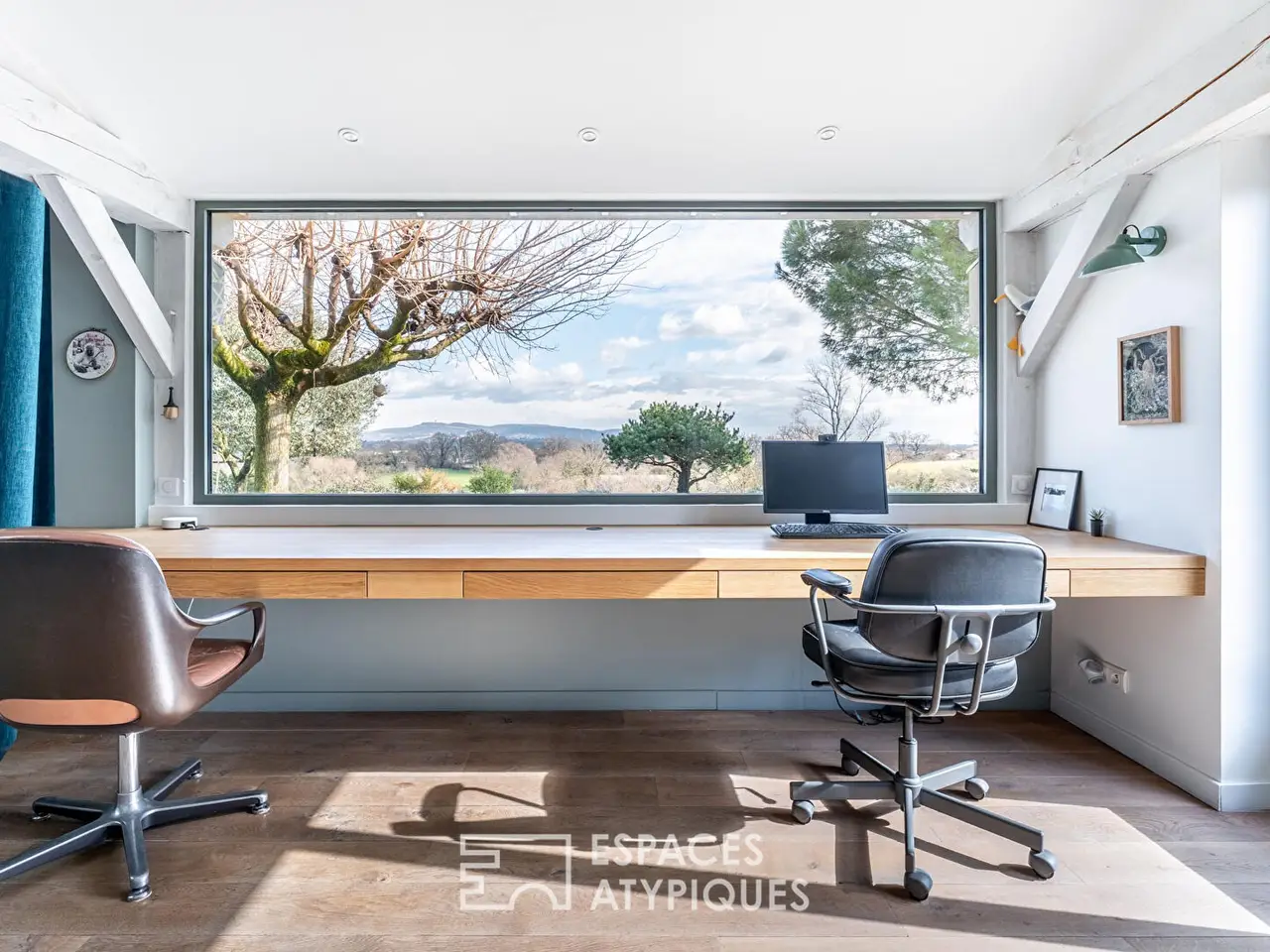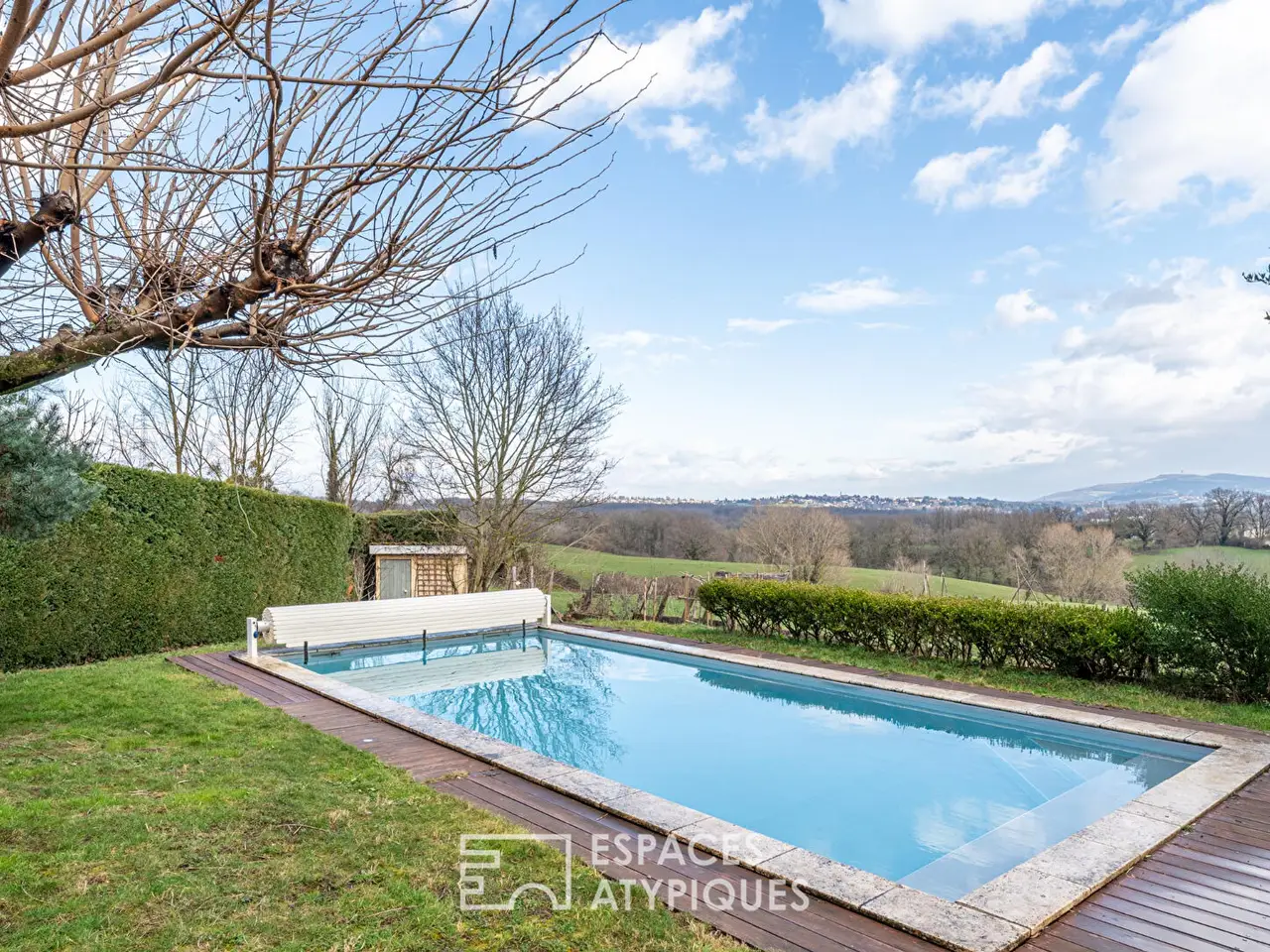 Nestled in the heart of a green setting of nearly 2000 sqm, this old farmhouse, completely renovated and extended, opens onto an enchanting landscape, offering a breathtaking view of the valley as far as the Monts d'Or. Here, everything is light and serenity, in absolute calm while remaining close to the center of Marcy l'etoile and amenities as well as the Parc Lacroix Laval and the Charbonnieres-les-Bains train station which serves Lyon. Upon entering, a generous hall reveals on the one hand, an office space bathed in light, where a large opening frames the surrounding nature like a living painting. A first master suite completes this part, providing comfort and privacy. On the other side of the hall, is the living space with a semi-open kitchen, fully equipped, extended by a discreet storeroom. The living room and dining room, with harmonious volumes, open widely onto the outside, inviting contemplation and conviviality. A staircase leads to the upper floor, where light remains omnipresent. Four bedrooms, including a second master suite, make up this sleeping area, accompanied by a bathroom. Outside, the wooded grounds display their assets: a swimming pool for sunny days, a petanque court for shared moments and an independent workshop of more than 30m to give free rein to your desires. A house where the charm of the old dialogues with a careful renovation, designed to enhance the light and nature. A unique place to live, to discover without delay. Diagnostics in progress. ENERGY CLASS: - / CLIMATE CLASS: - Estimated average amount of annual energy expenditure for standard use, established from energy prices for the year 2021: between - and - EUR REF. 9665 Additional information * 8 rooms * 5 bedrooms * 3 shower rooms * Outdoor space : 2000 SQM * Property tax : 1 277 € Energy Performance Certificate EPC blank or in progress Agency fees The fees include VAT and are payable by the vendor Mediator Mediation Franchise-Consommateurs 29 Boulevard de Courcelles 75008 Paris