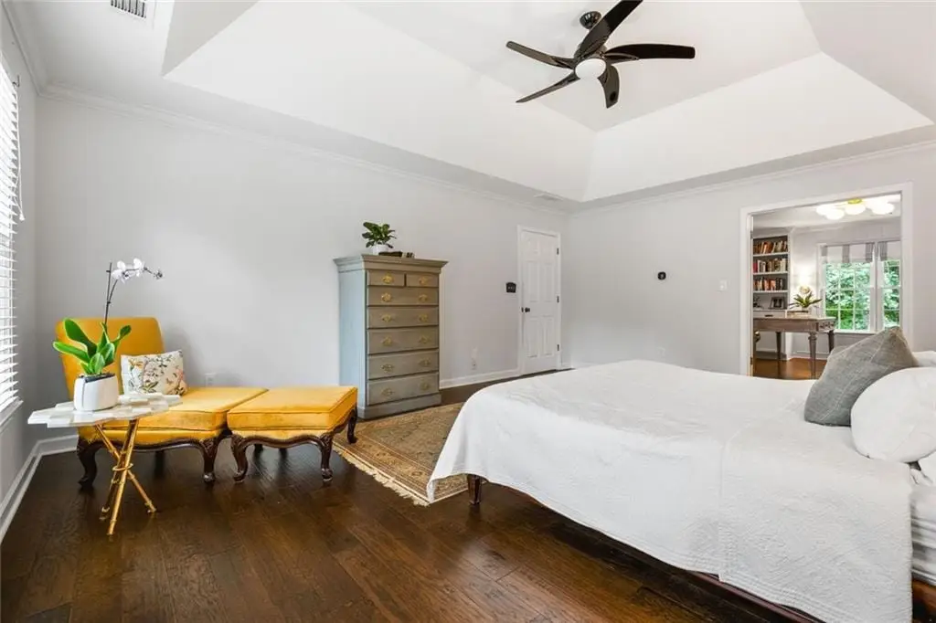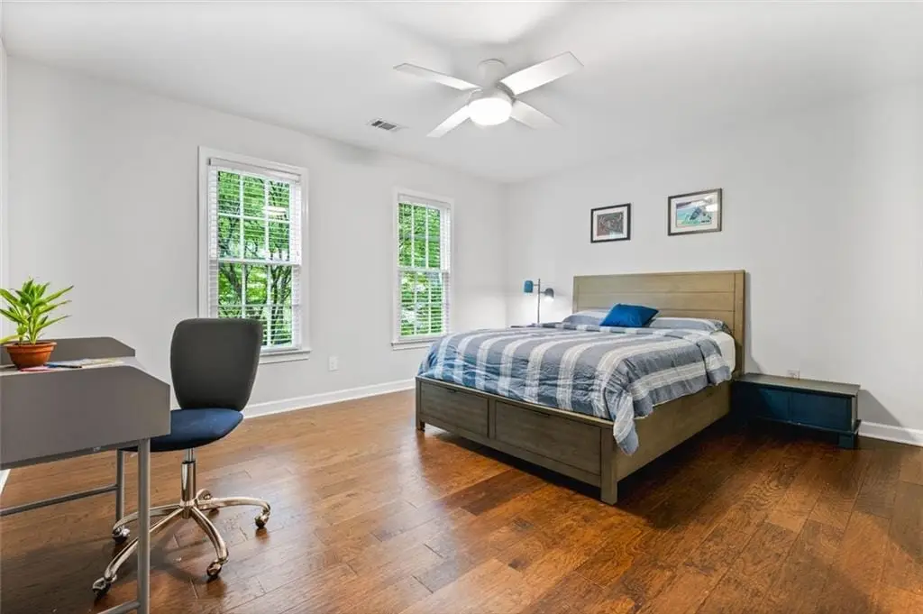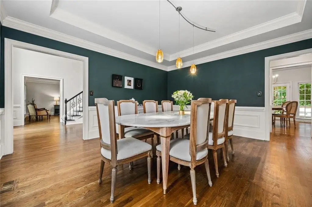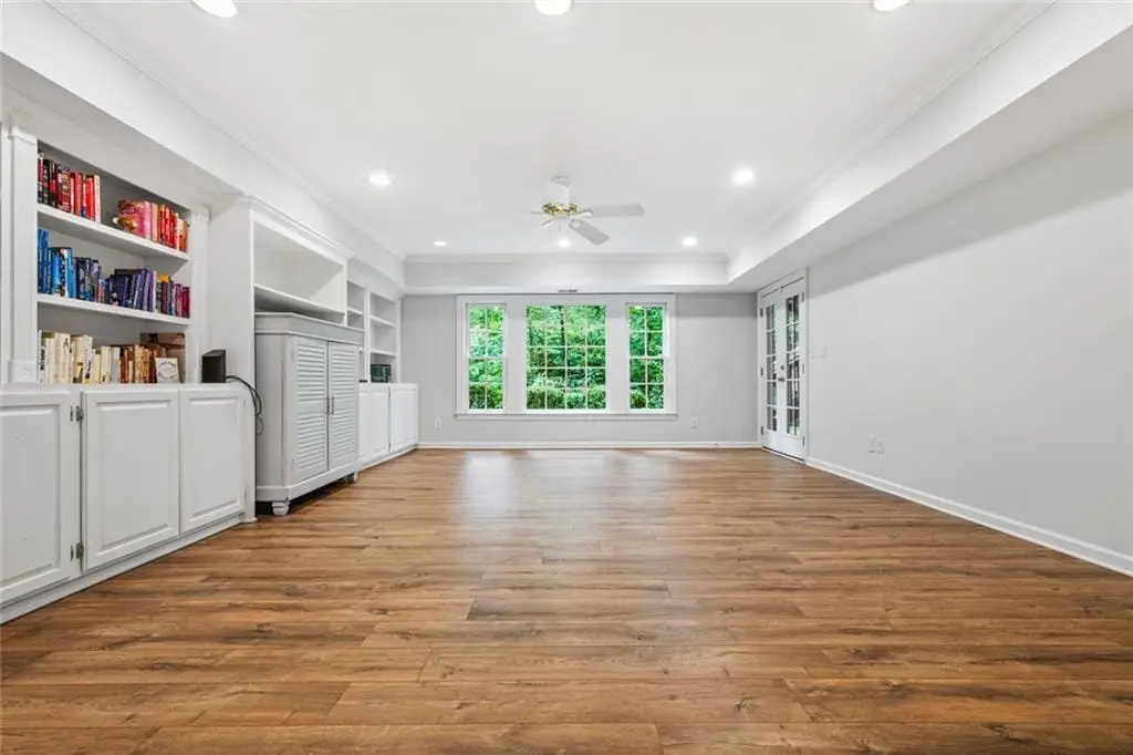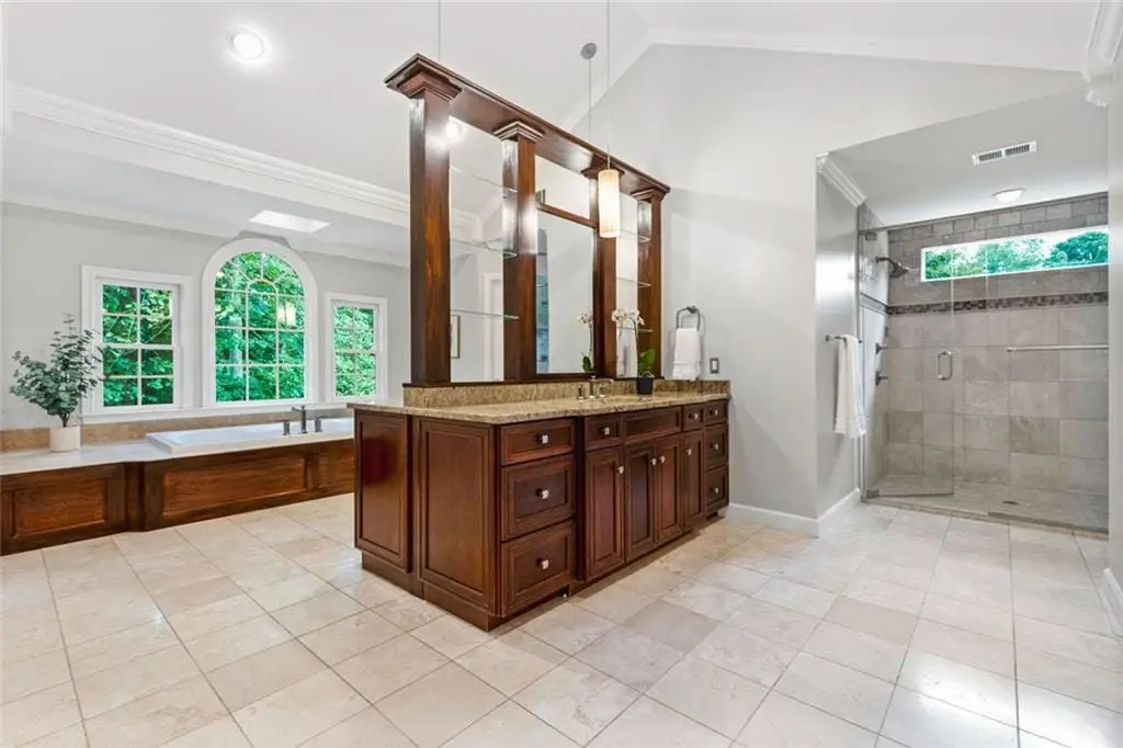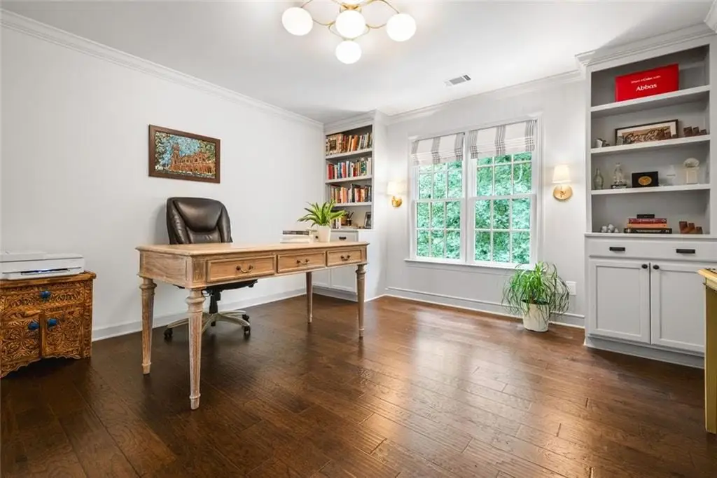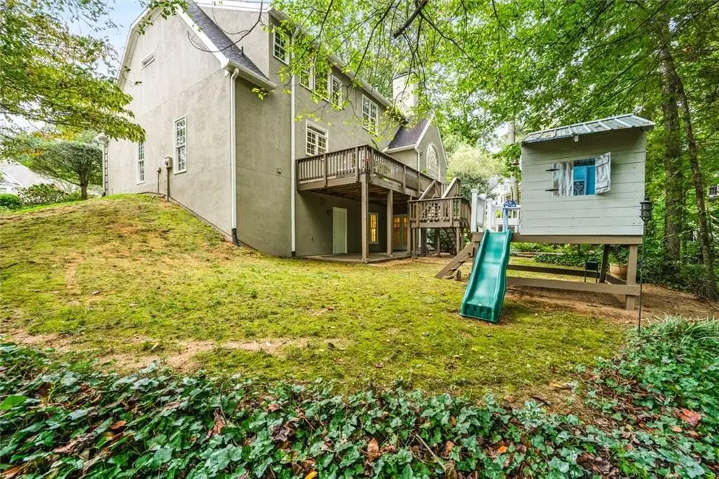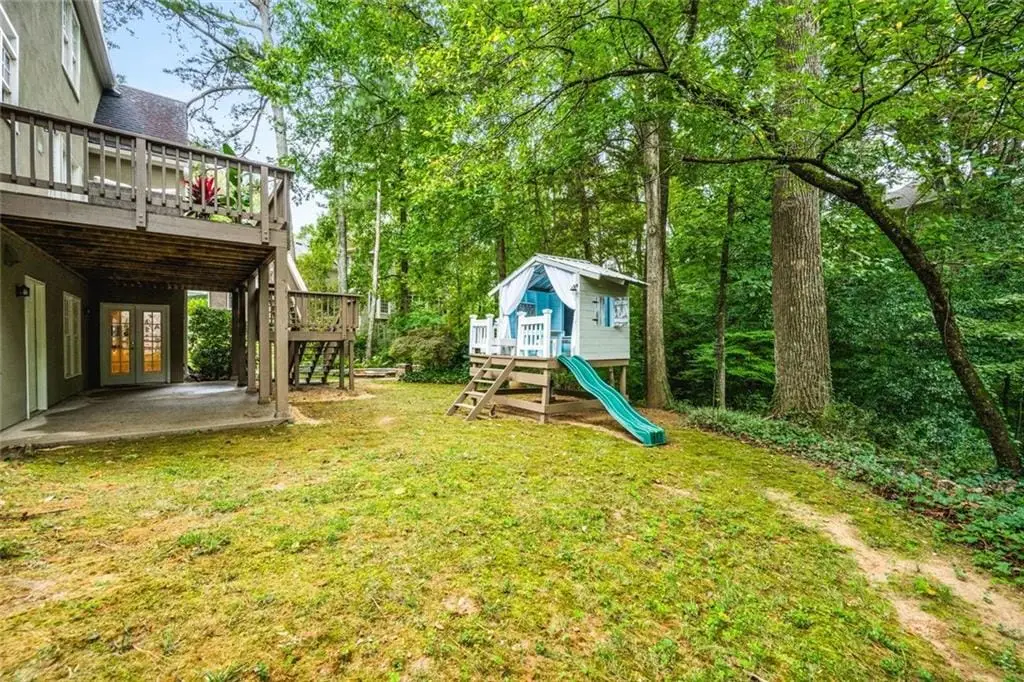 Exceptional North-East Facing Home in Hampton Woods - East Cobb's Premier Swim & Tennis Community Discover this beautifully maintained hardcoat stucco home in Hampton Woods, one of East Cobbs most beloved neighborhoods known for its active swim and tennis amenities, friendly neighbors, and top-rated schools. Elegant & Inviting Living Spaces- Step into a grand two-story foyer that opens to a breathtaking great room with soaring cathedral ceilings, custom built-in bookshelves and cabinetry, a cozy fireplace, and dramatic two-story window that bathe the space in natural light and offer tranquil views of the trees beyond. Designed for Entertaining, The formal dining room seats up to 12 guests with ease, while a separate formal living area adds sophistication to your entry. The open floorplan flows seamlessly from the family room to the breakfast area and kitchen, connected by elegant French doors. The kitchen features white cabinetry, granite countertops, and new built-in oven and microwave. French doors from the breakfast area lead to a spacious deck - perfect for hosting gatherings or enjoying quiet mornings outdoors. Private Owners Retreat- The owner’s suite is a true sanctuary, offering a large bedroom with a separate sitting room or office drenched in natural light. The resort-style bathroom includes a soaking tub, separate shower, dual vanities, and two toilets for added convenience. Generously sized secondary bedrooms feature updated bathrooms and ample closet space, ideal for family or guests. Large bedroom and bathroom on main for guests. Versatile finished terrace level offers a large open space perfect for a media or family room, complete with built-in cabinetry. Additional rooms include a recreation/craft room, billiard room, and a private bedroom with full bath - ideal for guests or multi-generational living. The perfect Outdoor Oasis: Step outside to a level backyard with a grassy play area, stone firepit, and a charming playhouse - a peaceful retreat for all ages. This Prime Location of Hampton Woods known for its community events, welcoming atmosphere, and proximity to nature trails, shopping, dining, and major highways including GA-400, I-75, and I-285. Minutes from Sandy Springs, Roswell, and located in some of Georgia’s top-ranked schools, this home offers the perfect blend of luxury, lifestyle, and location.(P.S. There is a secret storage room accessed from the mirrored closet in the terrace level bedroom-not to be missed!)