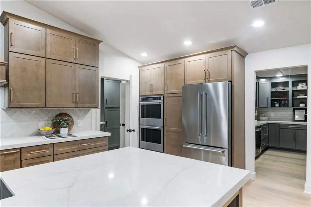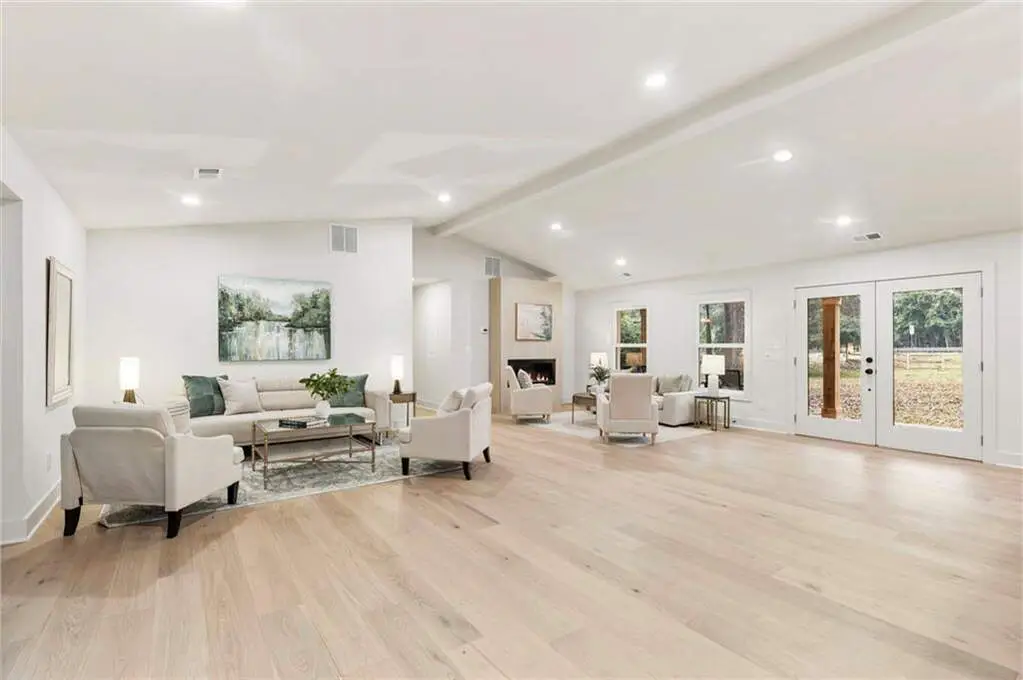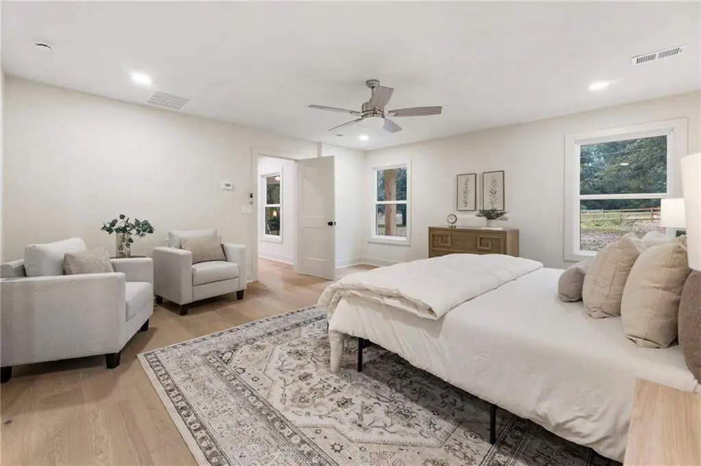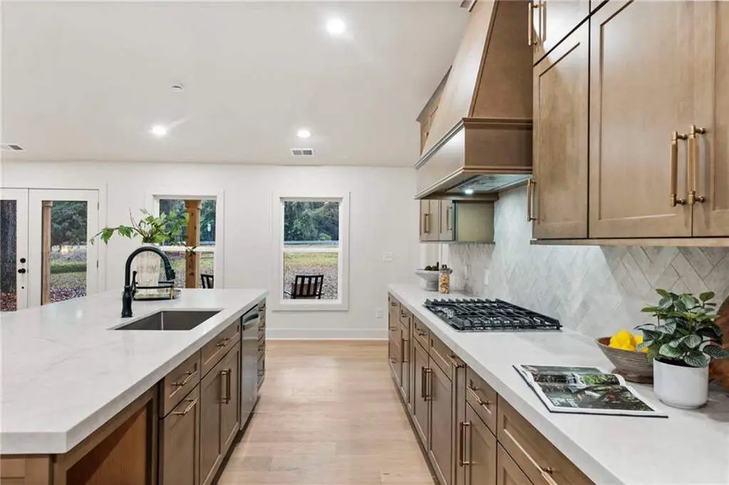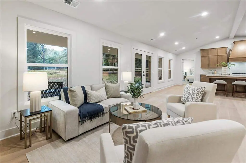 This stunning Marietta home in the Walton HS district has been completely rebuilt from the ground up - and the result is spectacular. Designed primarily as a spacious ranch, it offers four bedrooms and four full baths on the main level, including a luxurious primary suite. A fabulous in-law suite above the two-car garage provides over 500 square feet of space for guests, a home office, or a private retreat with a kitchenette, living space and full bath. The open-concept kitchen of the main home is a showstopper, featuring beautiful quartz countertops, soft-close cabinetry, double ovens, a 5-burner gas cooktop with vent hood, French-door refrigerator, and built-in microwave and dishwasher. Entertaining is effortless with a large scullery/pantry that includes a second sink and dishwasher. The great room offers flexible space for living, dining, and entertaining, all filled with abundant natural light. The primary suite features double vanities, dual shower heads, ample storage and a spacious walk-in closet. Throughout the home, you'll find wide-plank white oak hardwood flooring and designer tile in all baths and the laundry - no carpet anywhere. Each bedroom offers generous space and large closets, with en-suite or nearby bath access. Set on a 1.3+ acre lot, the property provides both privacy and potential, with room to add a pool or outdoor recreation area. Located close to major commuter routes and the top-rated Walton High School, this home truly has it all.