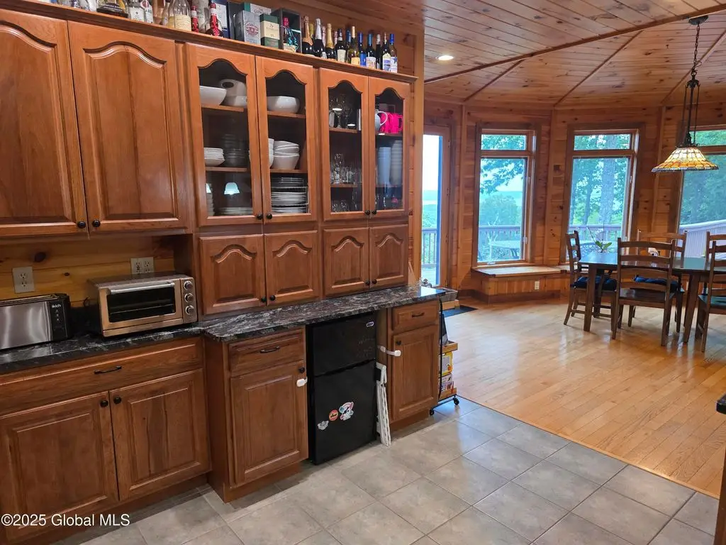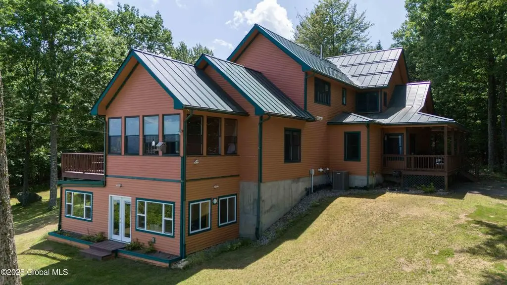 Discover the pinnacle of ADK living in this 6 bedroom 4.5 bath custom-built residence, set atop 43 secluded mountain acres w/ sweeping views of Great Sacandaga Lake. This home has been crafted for both luxury & comfort. Great room w/ vaulted ceilings, a stone fireplace, & custom woodwork. Gourmet kitchen features stone countertops & a large peninsula for casual eat-in dining, plus large dining space w/spectacular views. Two spacious primary suites, each with walk-in closets & en-suite baths; one w/private access to a sunroom / artist's studio; the other w/ a private balcony. Inviting, large front porch & expansive decks. Walk out basement w/ gym & dedicated hot tub room for ultimate relaxation. Detached heated garage currently functioning as a woodshop, plus newer metal barn.