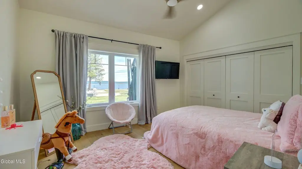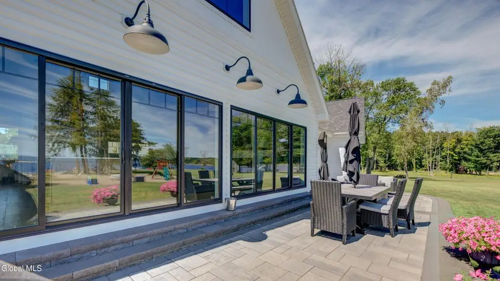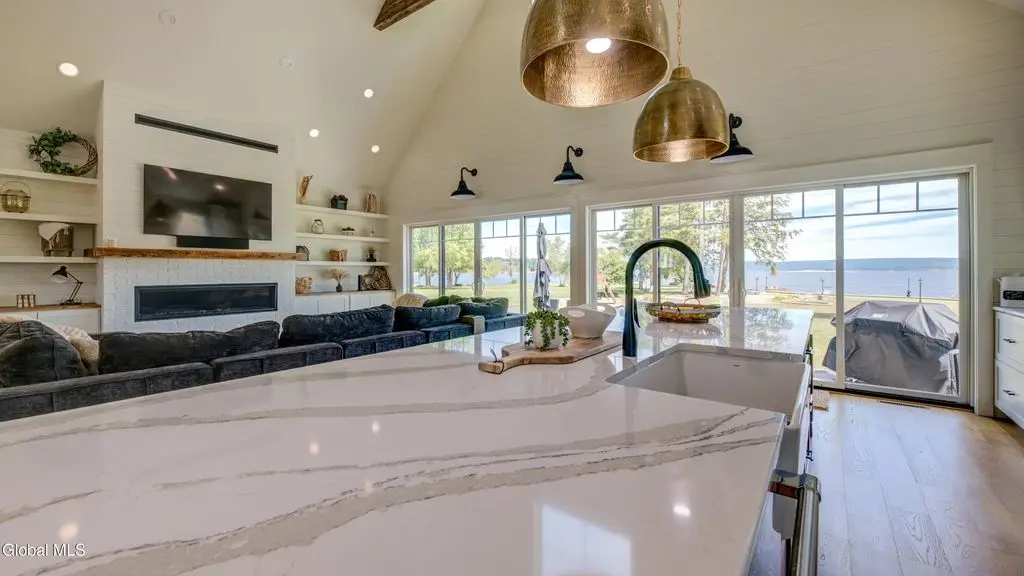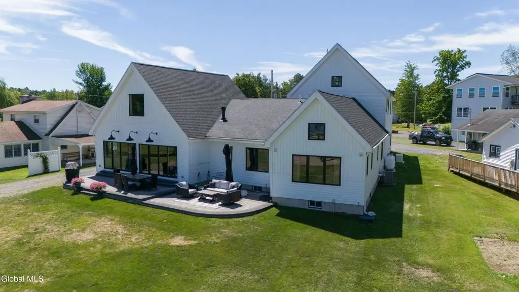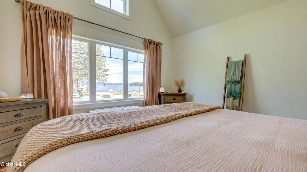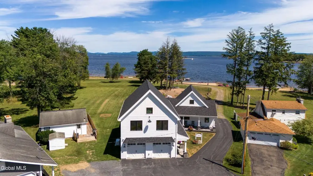 Welcome to this extraordinary custom-built lakefront home offering 600' of direct frontage on Great Sacandaga Lake! Located on a quiet dead-end road at the southernmost point of the lake, this 4 year old home provides unmatched panoramic views of the entire lake and surrounding mountains. Featuring 3 bedrooms and 2 full bathrooms, the home offers 2,694 square feet of finished living space on the main level, with an additional 1,092 square feet of unfinished space upstairs. The upper level is already plumbed for a bathroom and wet bar and could easily accommodate 2-3 more bedrooms plus a versatile flex area, bringing the total potential living space to 3,786 square feet. Inside, the great room impresses with soaring 24' ceilings, custom built-in shelving, and a cozy gas fireplace. The open-concept layout flows seamlessly into a chef's kitchen equipped with high-end Thermador appliances, large island with seating for 8-10, quartz countertops, ceramic tile backsplash, and walk-in pantry with built-in shelving. Hardwood floors throughout! There is an amazing Primary Suite with fantastic lake views, an enormous walk in shower with glass surround and a huge walk-in closet with floor-to-ceiling shelving! There are several security cameras and a hard-wired Generac generator for peace of mind. Comfort is ensured year-round with propane forced-air heating and central air conditioning. The outdoor space is truly exceptional, including extensive custom stone retaining walls and lock block patio systems along the waterfront. A large sandy beach and 80-ft dock provide direct access to lake, while multiple patio seating areas and sprawling level lawn create a park-like setting ideal for relaxation and entertaining. This property represents a rare opportunity to enjoy luxury lakeside living, modern construction, stunning scenery, and unmatched lake access - all in one of the most desirable locations on Great Sacandaga Lake. Adjacent home owned by same party also available for sale