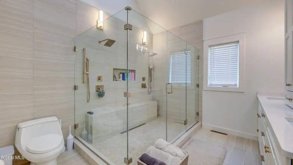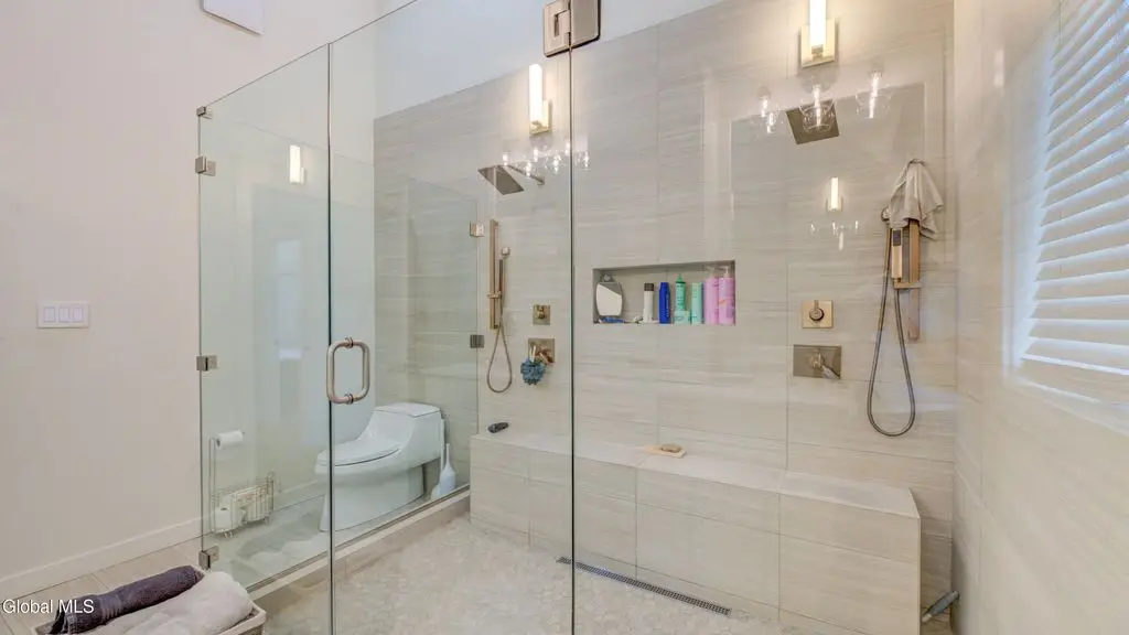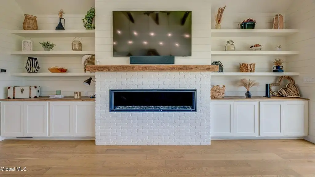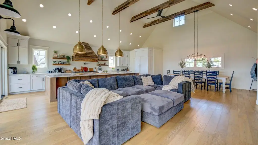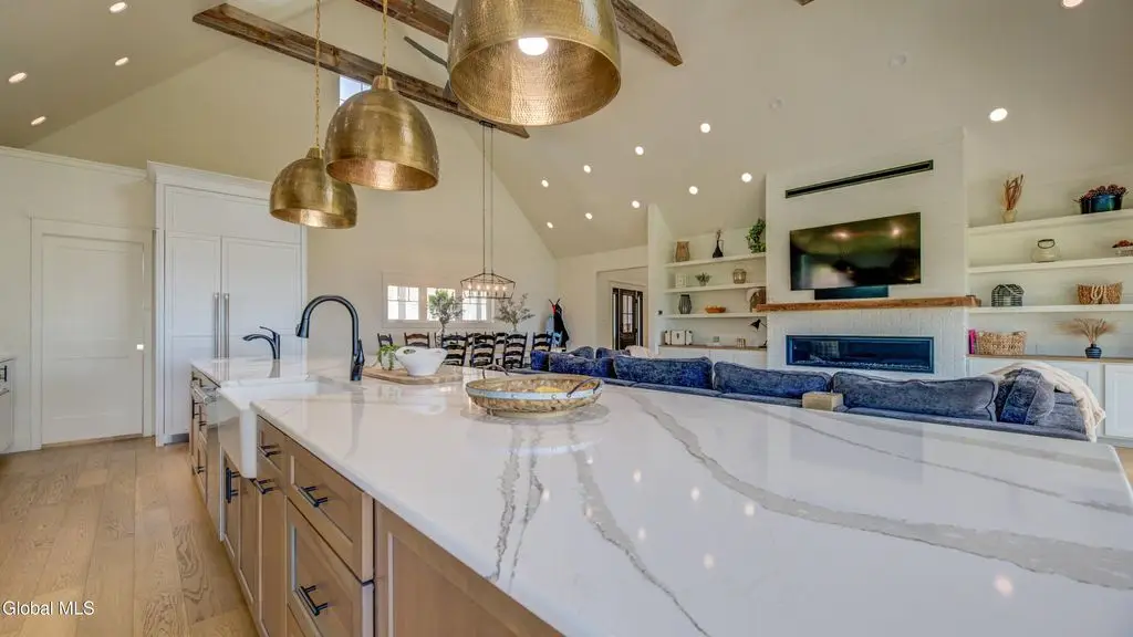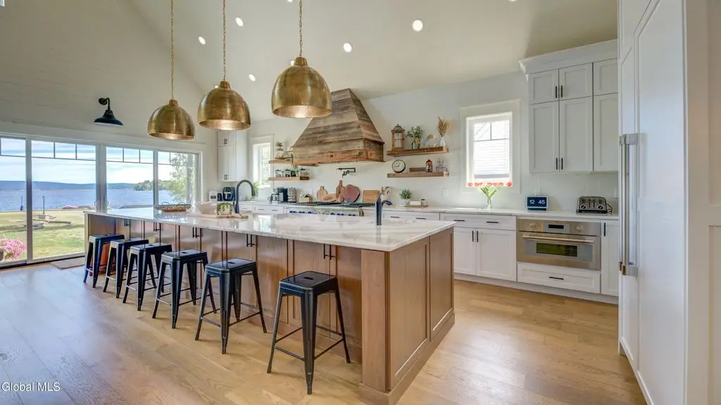 Welcome to this extraordinary custom-built lakefront home offering 600' of direct frontage on Great Sacandaga Lake! Located on a quiet dead-end road at the southernmost point of the lake, this 4 year old home provides unmatched panoramic views of the entire lake and surrounding mountains. Featuring 3 bedrooms and 2 full bathrooms, the home offers 2,694 square feet of finished living space on the main level, with an additional 1,092 square feet of unfinished space upstairs. The upper level is already plumbed for a bathroom and wet bar and could easily accommodate 2-3 more bedrooms plus a versatile flex area, bringing the total potential living space to 3,786 square feet. Inside, the great room impresses with soaring 24' ceilings, custom built-in shelving, and a cozy gas fireplace. The open-concept layout flows seamlessly into a chef's kitchen equipped with high-end Thermador appliances, large island with seating for 8-10, quartz countertops, ceramic tile backsplash, and walk-in pantry with built-in shelving. Hardwood floors throughout! There is an amazing Primary Suite with fantastic lake views, an enormous walk in shower with glass surround and a huge walk-in closet with floor-to-ceiling shelving! There are several security cameras and a hard-wired Generac generator for peace of mind. Comfort is ensured year-round with propane forced-air heating and central air conditioning. The outdoor space is truly exceptional, including extensive custom stone retaining walls and lock block patio systems along the waterfront. A large sandy beach and 80-ft dock provide direct access to lake, while multiple patio seating areas and sprawling level lawn create a park-like setting ideal for relaxation and entertaining. This property represents a rare opportunity to enjoy luxury lakeside living, modern construction, stunning scenery, and unmatched lake access - all in one of the most desirable locations on Great Sacandaga Lake. Adjacent home owned by same party also available for sale