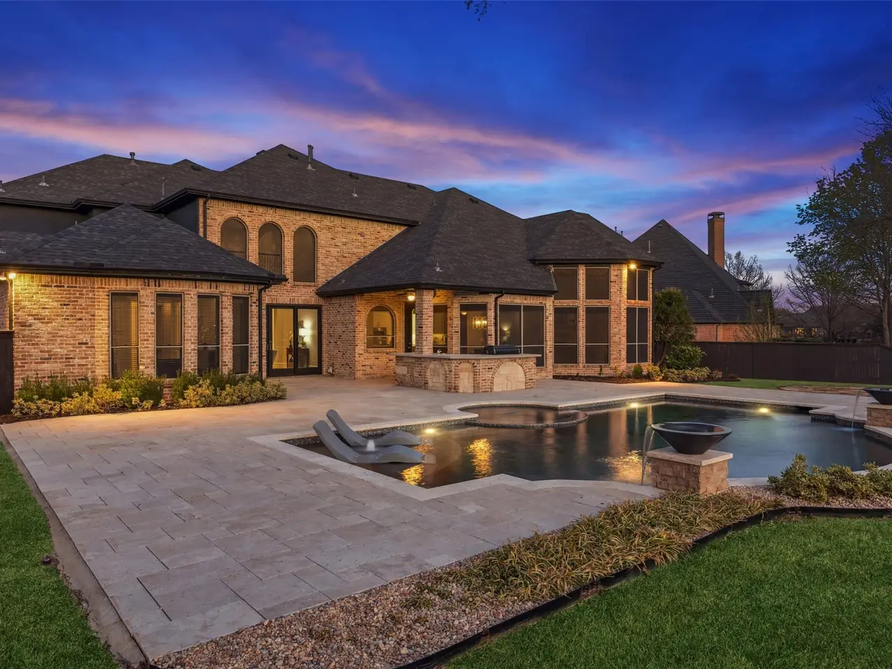 Experience luxury living in the prestigious Newport Village neighborhood of Stonebridge Ranch, in award-winning McKinney, TX voted the best place to live in the U.S! This exceptional EAST facing, custom home boasts an unbeatable location near Bennett Elementary, scenic parks, fountains & the exclusive pool & beach club. Designed to impress, the home is flooded with natural light, with walls of windows in the family, living, dining & primary bedroom showcasing breathtaking panoramic views of the park-like setting & stunning Texas sunsets. Completely renovated inside & out in 2021 & 2025, this home blends modern elegance with timeless luxury. The chef's kitchen is a dream, featuring a Dacor 6-burner gas cooktop, Viking vent, double KitchenAid ovens, Sub-Zero refrigerator, wine fridge & an ice maker. Enjoy the convenience of double quartz-topped islands, custom organizers, pull-out drawers & a hidden trash bin. Relax in spa-inspired primary suite offering a serene retreat with a frameless glass shower, freestanding soaking tub, beautiful tile work & custom closet. A lower-level guest suite provides comfort & privacy, while the luxurious study boasts a coffered ceiling, built-in shelves & a quartz-topped credenza. Entertainment is effortless with a spacious game & media room, complete with a pool table & media chairs perfect for movie nights & gatherings. Be the envy of the neighborhood with panoramic views & spectacular sunsets from your private backyard oasis, featuring a custom Riverbend Sandler pool & spa, travertine stone patios, an outdoor kitchen & a fire pit area, all designed for year-round enjoyment. A full 3-car side entry garage & an expansive driveway offer ample space for oversized vehicles or even a game of basketball. This one-of-a-kind luxury home is an opportunity you don't want to miss!