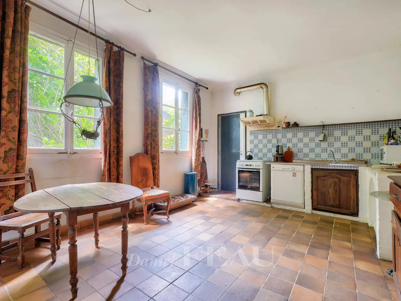This late 19th century millstone-built property featuring parquet flooring, fireplaces and panelling is located in the sought-after Meudon Bellevue neighbourhood. South-facing and set in a 635 sqm plot, it includes a spacious double living/reception room with a library area, a generously proportioned separate kitchen, and a dining room with a fireplace. Upstairs are four bedrooms and a bathroom. The top floor comprises a spacious room with a fireplace currently used as a recreation room/workshop and which could create a master suite with a bathroom and a dressing room. On a total basement and with a self-contained studio apartment. With several parking spaces. In a prime location just a five-minute walk from the station and near the shops and the schools.