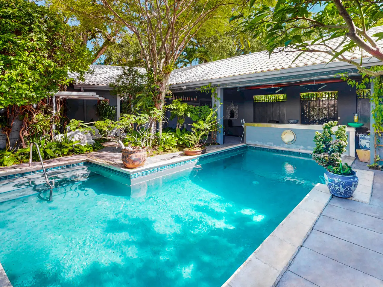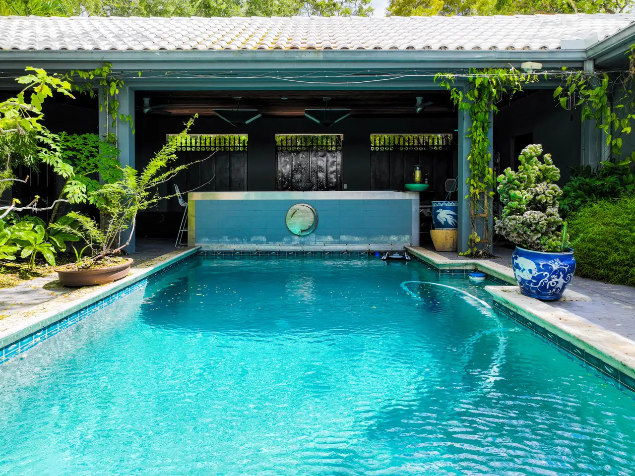 Welcome to your private sanctuary in North Grove, a distinctive 4-bedroom, 4.5-bath residence on a lush 10,000+ SF corner lot. A curated courtyard with pool and patio creates a tranquil Zen centerpiece visible from most rooms. The layout opens with a foyer leading to a spacious living area, office/library, and a guest suite. The dining room flows into a chefs kitchen with top-tier appliances. The master retreat features dual baths and custom closets. Gallery-style walls and museum lighting are perfect for art, while whimsical touches add charm. Includes impact glass, walled grounds, and security for privacy and peace of mind. This exceptional home blends style, function, and serenity in one of Miamis most coveted neighborhoods. Enjoy the 3D tour. May the Force be with you.