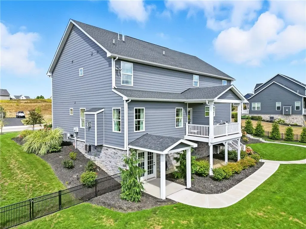 Better than new, this exquisite home sits on OVER ONE FENCED IN ACRE in the Mars Area School District! This home has so many upgrades and will wow you from the moment you step into the two story foyer! You'll love the covered front porch and the professionally landscaped yard which includes an IRRIGATION SYSTEM! Look at how green the huge private yard is! The large, fully upgraded kitchen is the heart of the home and has a huge island with seating and WALK IN PANTRY! Kitchen leads to your covered back porch overlooking your exceptional yard. You'll also find a spacious great room w fireplace, dining room, living room, and powder room on the main. Upstairs find 4 spacious bedrooms, laundry, and 2 full baths. Additional bath possible! The master is a dream w a sitting area, 2 walk in closets, and stunning en suite. You'll love that you have a loft/possible 5th bed on the 2nd level! Finished walk out game room w full bathroom! Located near all of the new shops, low taxes! Cement driveway!