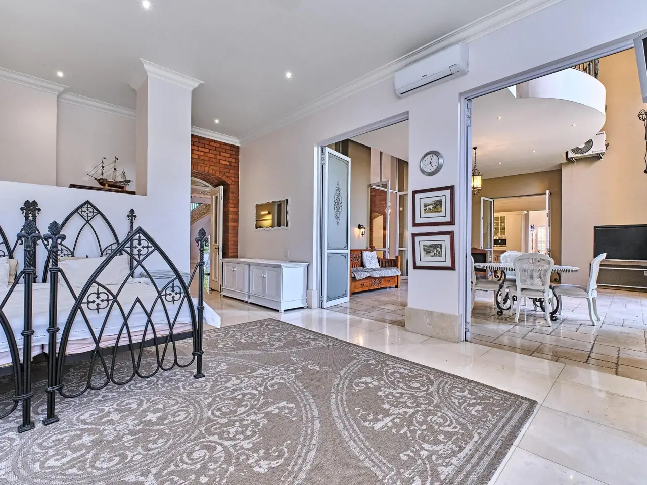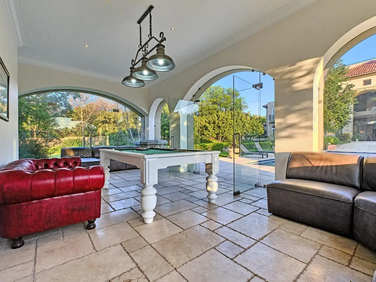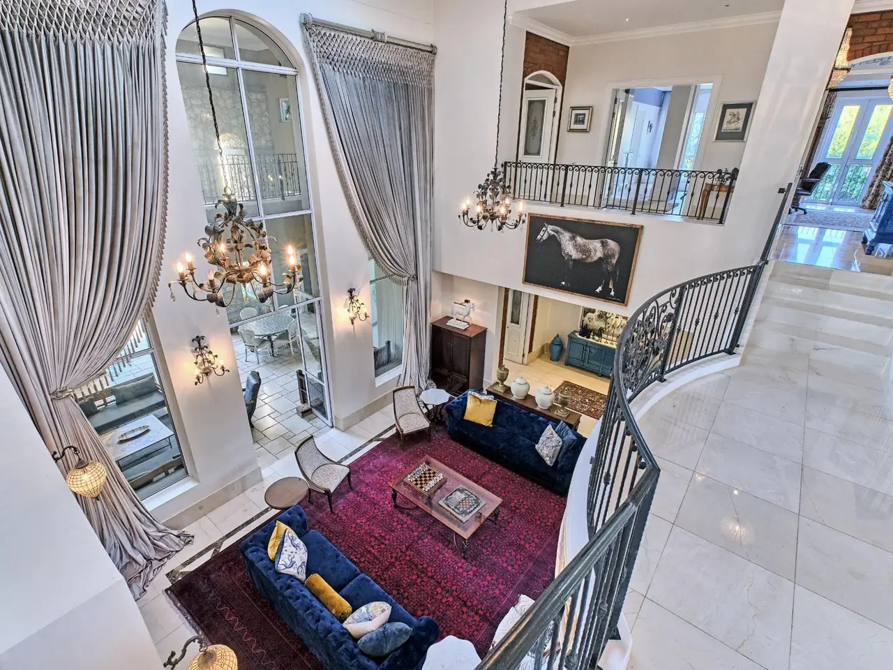 French Provincial Elegance | Equestrian Grandeur Enter an ambiance of refined sophistication where old-world charm meets modern grace. A grand double staircase sweeps through a marble-dressed foyer,setting the tone for exquisite living. Thoughtfully curated architectural detailing, arched windows, and soft, natural textures create a warm French Provincial aesthetic. Entertain effortlessly in the formal lounge or indulge your culinary passions in the chef’s kitchen, complete with Smeg appliances and a sun-drenched breakfast conservatory. French doors open to a covered terrace overlooking manicured gardens, a romantic fire pit, and a charming pool house beside the sparkling 15m x 4m swimming pool and tranquil koi pond. The upper level unfolds into a sanctuary of serenity. The master suite exudes château-inspired elegance, featuring a spa-like bathroom, boutique dressing room, and a private balcony with views of the estate. Two additional en-suite bedrooms, each with delicate Juliette balconies, capture the essence of classic French refinement and countryside tranquility. Modern innovation complements timeless design — enjoy near-zero utility costs with a complete solar energy system, borehole water supply, and intelligent home technology seamlessly integrated throughout. Tucked within the prestigious Waterfall Equestrian Estate, this residence offers an unrivalled lifestyle of security, serenity, and sophistication. Experience the grace of country living just minutes from premier schools, fine dining, and leading corporate hubs — where horses graze beyond manicured paddocks and sunsets paint the horizon. Five beautifully appointed bedroom suites and five-and-a-half luxurious bathrooms. Three grand receptions and multiple dining and entertainment areas designed for refined gatherings. Two private inter-leading studies/ library , a fully equipped gym (or optional flatlet), and an entertainment pool house. Off-grid water and power ensure seamless, self-sufficient living. Set within the prestigious Waterfall Equestrian Estate, this residence epitomizes country elegance fused with modern luxury. Residents enjoy vast open landscapes, scenic bridle paths, and a secure, tranquil environment, all within minutes of top-tier schools, boutique shopping, and corporate hubs—a rare harmony of exclusivity, equestrian charm, and contemporary convenience.