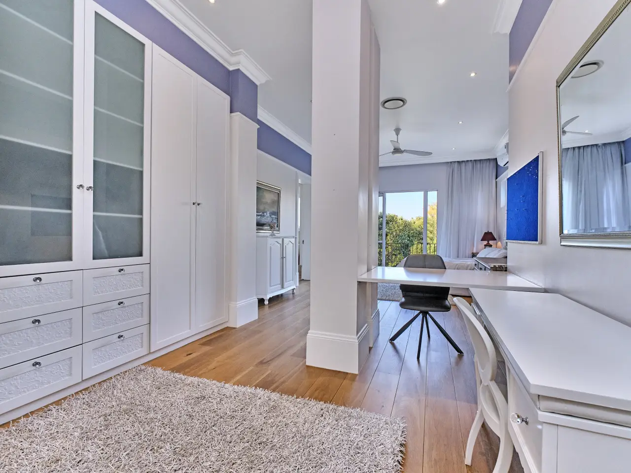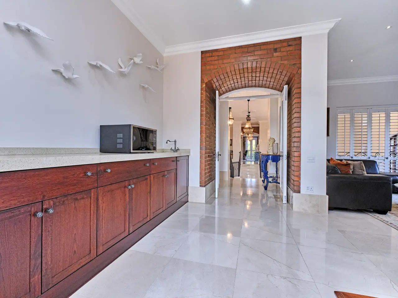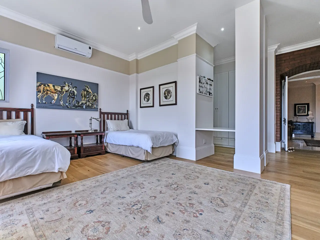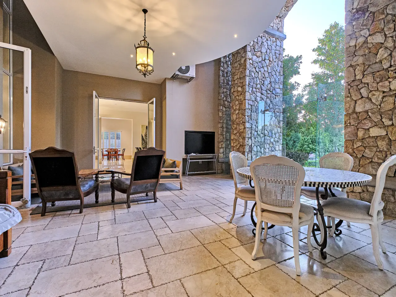 French Provincial Elegance | Equestrian Grandeur Enter an ambiance of refined sophistication where old-world charm meets modern grace. A grand double staircase sweeps through a marble-dressed foyer,setting the tone for exquisite living. Thoughtfully curated architectural detailing, arched windows, and soft, natural textures create a warm French Provincial aesthetic. Entertain effortlessly in the formal lounge or indulge your culinary passions in the chef’s kitchen, complete with Smeg appliances and a sun-drenched breakfast conservatory. French doors open to a covered terrace overlooking manicured gardens, a romantic fire pit, and a charming pool house beside the sparkling 15m x 4m swimming pool and tranquil koi pond. The upper level unfolds into a sanctuary of serenity. The master suite exudes château-inspired elegance, featuring a spa-like bathroom, boutique dressing room, and a private balcony with views of the estate. Two additional en-suite bedrooms, each with delicate Juliette balconies, capture the essence of classic French refinement and countryside tranquility. Modern innovation complements timeless design — enjoy near-zero utility costs with a complete solar energy system, borehole water supply, and intelligent home technology seamlessly integrated throughout. Tucked within the prestigious Waterfall Equestrian Estate, this residence offers an unrivalled lifestyle of security, serenity, and sophistication. Experience the grace of country living just minutes from premier schools, fine dining, and leading corporate hubs — where horses graze beyond manicured paddocks and sunsets paint the horizon. Five beautifully appointed bedroom suites and five-and-a-half luxurious bathrooms. Three grand receptions and multiple dining and entertainment areas designed for refined gatherings. Two private inter-leading studies/ library , a fully equipped gym (or optional flatlet), and an entertainment pool house. Off-grid water and power ensure seamless, self-sufficient living. Set within the prestigious Waterfall Equestrian Estate, this residence epitomizes country elegance fused with modern luxury. Residents enjoy vast open landscapes, scenic bridle paths, and a secure, tranquil environment, all within minutes of top-tier schools, boutique shopping, and corporate hubs—a rare harmony of exclusivity, equestrian charm, and contemporary convenience.