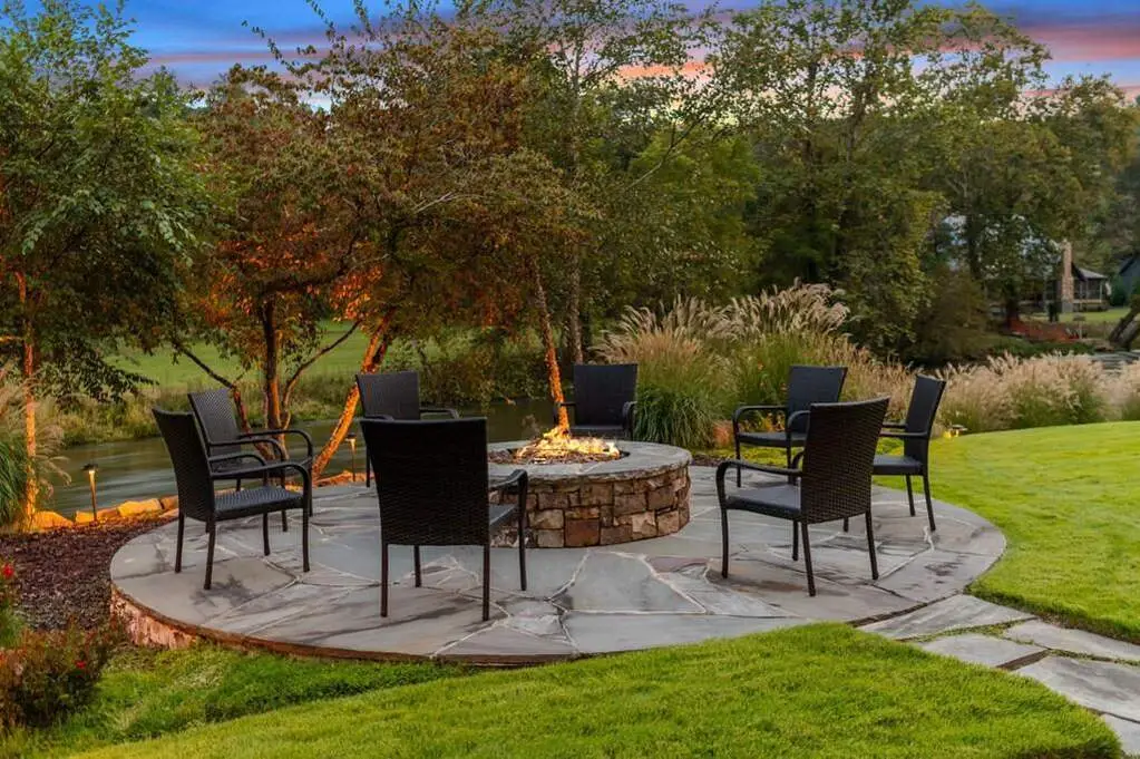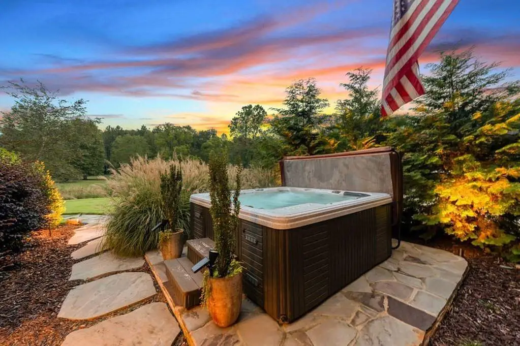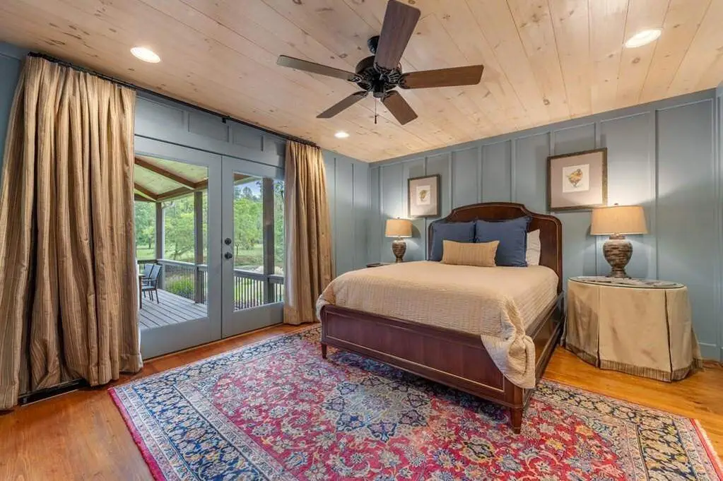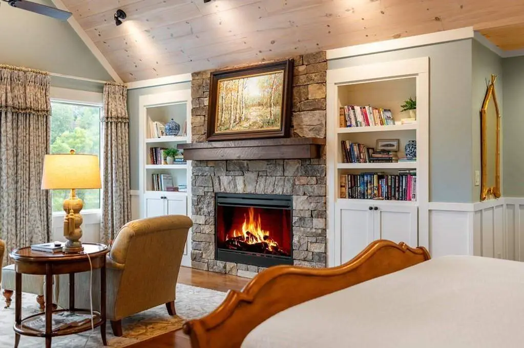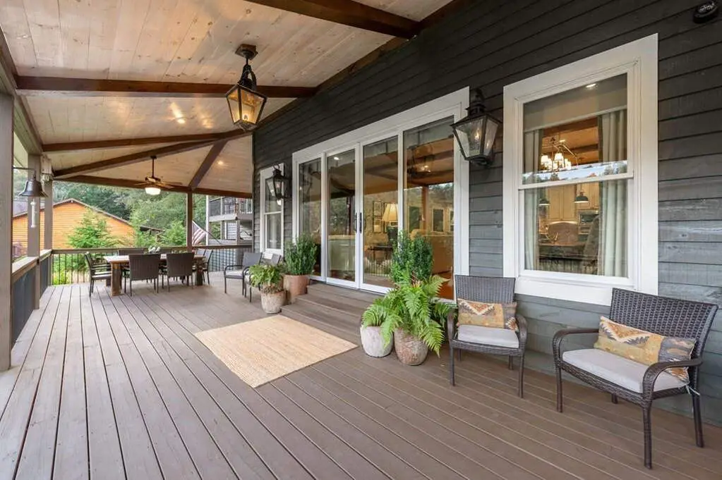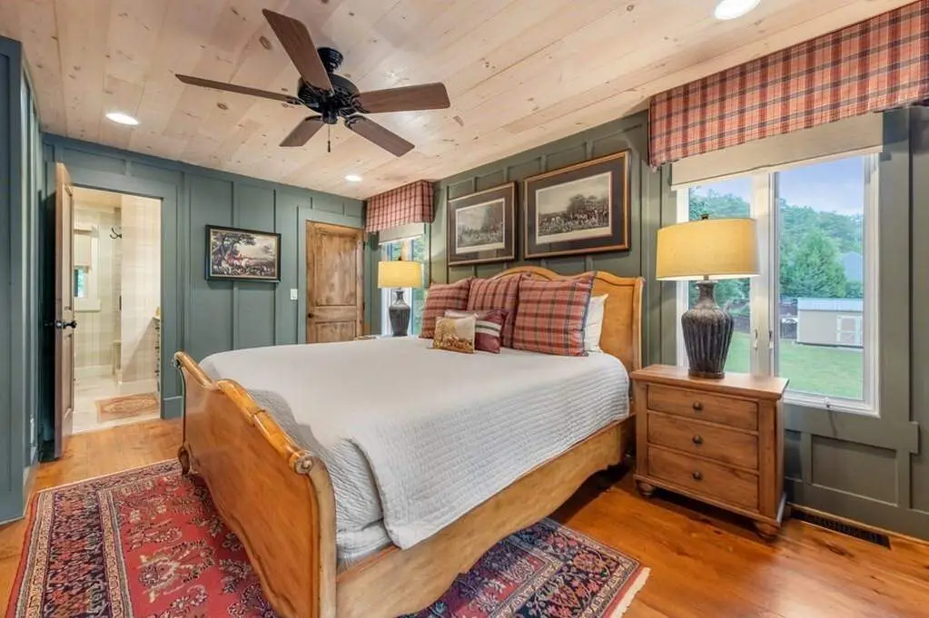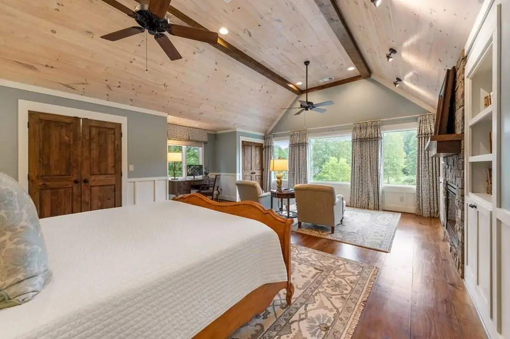 River's Edge is a 6-bedroom, 5-bathroom, fully furnished home with 114' of Toccoa River frontage. It underwent a complete remodel and landscape transformation in 2020, interior designed by Cindy Trimble of Studio Trimble Design of Blue Ridge, GA. The home has 5643 (+/-) heated and cooled sq. ft., 1,400 sq. ft. of front porch, 1,600 sq. ft. of porch facing the river, 16x16 deck extending over the river, a hot tub, and rock firepit with two sets of rock steps leading to the river. The kitchen, living, and dining areas are all open with lots of counter space for cooking and entertaining. Beautiful wide-plank eastern pine floors are featured throughout, with Persian rugs and tasteful dcor that provide a sophisticated lodge feel. The home has three master suites, two on the main floor and one on the second floor. The second-floor master suite features three closets, double vanity sinks, large walk-in shower with separate soaker tub, and heated floors. The second floor also has a bedroom with three single beds and one double bed, plus a full bathroom. The basement has a large living area; two bedrooms, one with a queen bed, and one with four full beds; a full bathroom with double sinks, and walk-in shower. There are four Tennessee fieldstone fireplaces in the home. Located above the garage is a bonus/billiards room with vaulted ceiling, bar, and private balcony. The back porch overlooking the river features a cooking area with a built-in grill and bar fridge along with a sitting area and custom-made dining table that seats eight. The professionally landscaped yard features Zeon Zosia grass, underground drainage, irrigation system, outdoor accent lighting, and camera system. With access to two fish weirs, and a fish feeder that feeds trout daily, it offers some of the best fishing on the tailwater! The attention to detail in this home is something to see and appreciate.