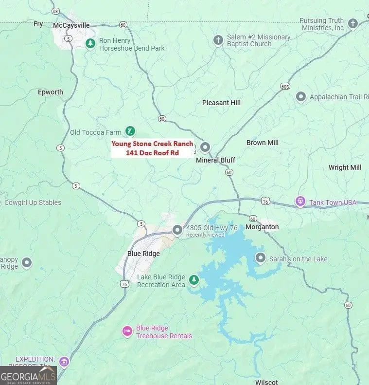 Welcome to Young Stone Creek Ranch, your private mountain sanctuary - a breathtaking 37.5-acre equestrian estate nestled in the heart of Mineral Bluff, Georgia, just minutes from the vibrant charm and fine dining of Blue Ridge. This one-of-a-kind retreat offers an unparalleled blend of natural beauty, refined living, and equestrian excellence. Crafted in 2004 with impeccable attention to detail and premium materials, the elegant 3-bedroom, 2-bath cabin exudes rustic luxury and timeless mountain charm. Perched to capture sweeping views of the surrounding peaks, the home overlooks a lush, fenced pasture, a babbling creek, and an exceptional 3,500 square foot 8-stall horse barn - ideal for equestrian lovers or those seeking a peaceful pastoral lifestyle. Half of the expansive property is open, rolling pastureland - perfect for horses or future vineyard dreams - while the other half is an enchanting forest haven, complete with meandering trails, flowing streams, and hidden glades that invite exploration and quiet moments of reflection. Whether you're sipping your morning coffee on the expansive deck, watching deer graze at dusk, or hosting guests in the warm glow of the great room's stone fireplace, this property offers a lifestyle of tranquility, luxury, and adventure. Perfect as a full-time residence, weekend escape, or investment in mountain living, this equestrian estate represents a rare opportunity to own a true mountain resort property - private, peaceful, and pristinely appointed.