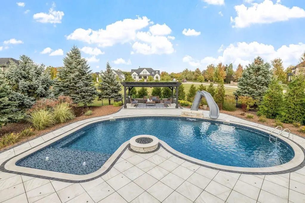 • Heated in-ground pool with lounging shelf and waterfall feature
