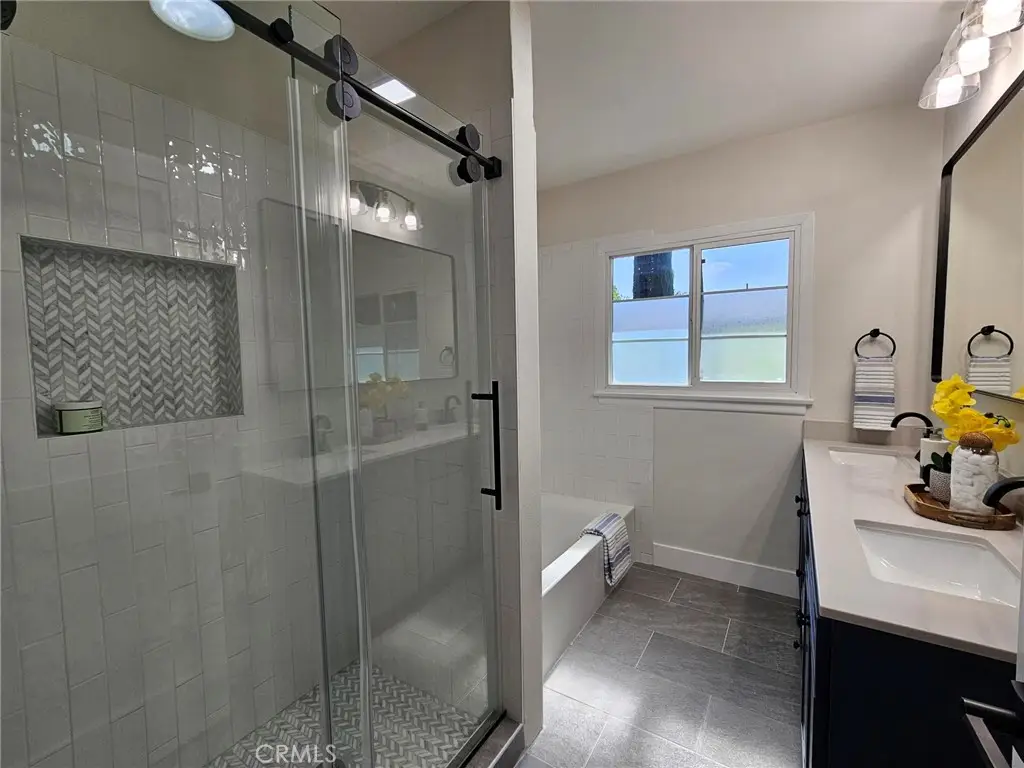 **PRO PHOTOS COMING SOON*** Gorgeous UPDATED 4-bedroom, 2-bathroom home in desirable Monrovia neighborhood on a quiet tree lined street with mountain views. This home features an open concept living space with a decorative fireplace and access to one of two outdoor covered patios. The kitchen has all new custom cabinetry, sleek countertops, tile backsplash, stainless steel appliances, new fixtures and a large center island with countertop seating. The spacious primary bedroom has a large closet with custom built-ins, ensuite bathroom and access to the outside patio area. Both the primary and hall bathroom have new double sink vanities, custom tile work and fixtures. Other features include luxury flooring throughout the living area and bedrooms, freshly painted exterior and interior, stylish new plumbing and lighting fixtures throughout, upgraded electrical panel, HVAC, vinyl windows, and indoor laundry. The spacious enclosed backyard is perfect for outdoor fun and entertainment with two large, covered patio areas, and yard. There is an oversized detached two car garage with ADU potential and plenty of off-street parking in the long driveway. Buyer to verify all building codes and ADU guidelines with the city. This home is just a short distance from Old Town Monrovia shops, restaurants, Saturday Farmer's Market and Friday night spring and summer street fair and close to the Duarte Bike Trail. Tax rolls show different bedroom count.