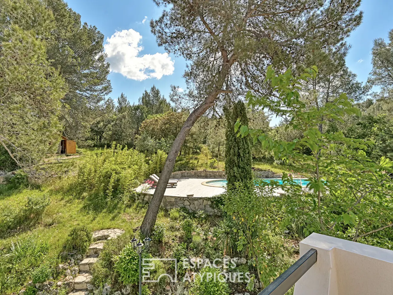 Just a few minutes from Montpellier, nestled in a preserved natural environment, this character house stands on a wooded plot of over 7,300 sqm, on the edge of a 10-hectare pine forest, a rare privilege in the immediate vicinity of the city. Behind its recently renovated facades, this building develops a generous surface area where space and light are in the spotlight. The ground floor accommodates four bedrooms, two bathrooms, as well as a 50 sqm dual-aspect living room, built around a cozy fireplace. A vast terrace naturally extends the interior spaces to the outdoors, ideal for savoring the tranquility of the place. Set aside, a discreet swimming pool invites you to relax in complete privacy. The interior, bright and functional, retains its authentic charm while offering multiple possibilities for development: a mezzanine overlooks the living room and leads to a 19 sqm room to be arranged according to your desires? office, library, or spare bedroom. Upstairs, a 50 sqm independent apartment, accessible from both the exterior and interior of the house, completes the property. It is a real asset for accommodating family, friends, or for considering rental income. The outdoor spaces, to be reinvented, leave room for all projections: vegetable garden, landscaped garden, or relaxation area in the shade of the pines? Located a few hundred meters from schools, shops, and public transport, this property combines absolute calm and practical daily life. Interior renovation work is expected (floors, kitchen, bathrooms), allowing everyone to personalize the place according to their tastes while preserving the existing character. A rare property, between nature and the city, offering remarkable potential in a sought-after area. ENERGY CLASS: D - 186 / CLIMATE CLASS: CD- 49 Estimated average amount of annual energy expenditure for standard use, established from energy prices for the years 2021, 2022 and 2023: between EUR5,850/year and EUR7,960/year. Additional information * 9 rooms * 5 bedrooms * 3 bathrooms * Outdoor space : 7317 SQM * Parking : 5 parking spaces * Property tax : 3 335 €