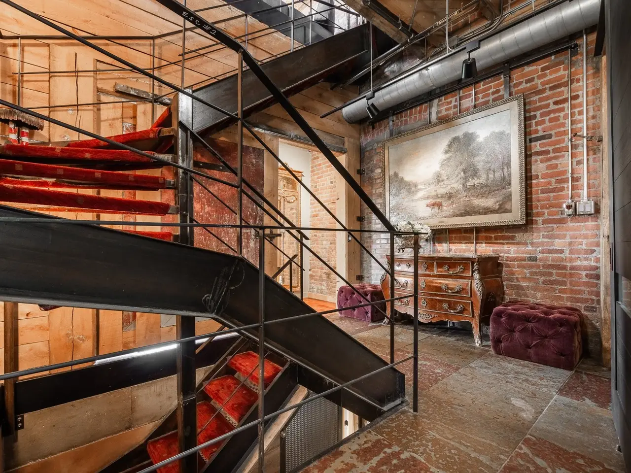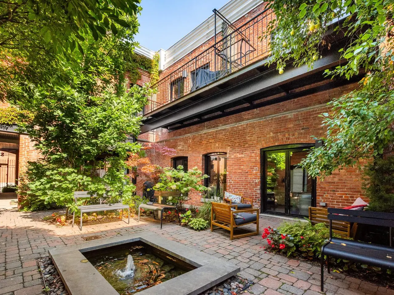 A hidden gem in Clos St-Ambroise! This stunning 2-level condo in a restored St-Henri tannery blends industrial charm with luxury finishes. Featuring 14-ft ceilings, exposed brick, original sliding doors, wood beams, and huge windows with water + city views. High-end materials throughout: exotic wood + slate floors, carved stone counters and sinks. Private entrance, spacious layout, open-concept living, and direct garage access with 2 parking spots. Steps from Atwater Market + Lachine Canal. Stylish, bright, and truly one of a kind!