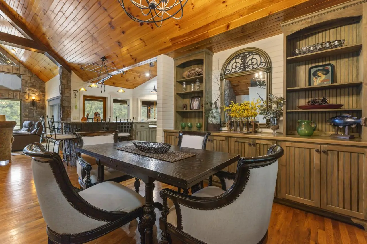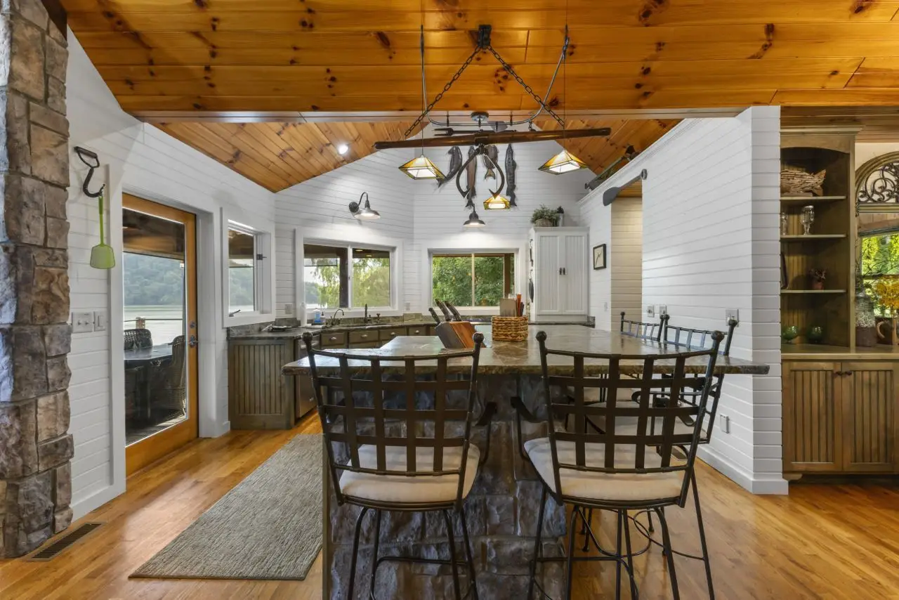Welcome to 743 Jim Town Rd - Nestled on the serene shores of Cherokee Lake, this one-of-a-kind retreat was masterfully crafted to be a true oasis. From the moment you enter, you're greeted by the warmth of natural textures and awe-inspiring lake views framed by soaring floor-to-ceiling windows. Exposed beams, intricate custom woodworking, built-ins throughout, and a wood stove fireplace create a sense of timeless comfort, elevated by modern ease like remote-controlled electric blinds. Step into the gourmet kitchen featuring chiseled, leathered granite, a Monogram series gas range, custom cabinetry, and a serving pantry complete with a sub-zero refrigerator, a refrigerator drawer and freezer drawer with ice machine, and walk in pantry, hidden by custom sliding doors. The main-level primary suite is a sanctuary with lake views that greet you each morning and a spa-like bathroom that invites you to slow down. Dual vanities, a walk-in shower with body jets, his-and-her closets, and a private dressing room complete the experience. Downstairs is ideal for guests, family, and playful escapes. A generous living area with a kitchenette/bar opens to a guest suite, a children's quarters fitted with custom bunk beds + a full bath, and a secret hideaway perfect for a playroom or bonus sleeping space. Step outside to discover your private lakefront lifestyle. Entertain on the screened porch or open-air deck. Unwind on the lower-level covered patio with a hot tub and gather around the stone fire pit under starlit skies. With 288' of pristine shoreline, your floating dock powered by solar energy, boat lift and jet ski port is waiting on you. A detached 2 level garage provides generous space to house cars, toys, and gadgets. Other improvements include a back up generator, newer roof (2021), and manicured landscaping. A home of this caliber is rarely offered and difficult to replicate. Every detail speaks to thoughtful design and expert craftsmanship. 743 Jim Town Road is truly a remarkable lakefront retreat - one that must be seen to be fully appreciated. Give me a call today to schedule a private tour.