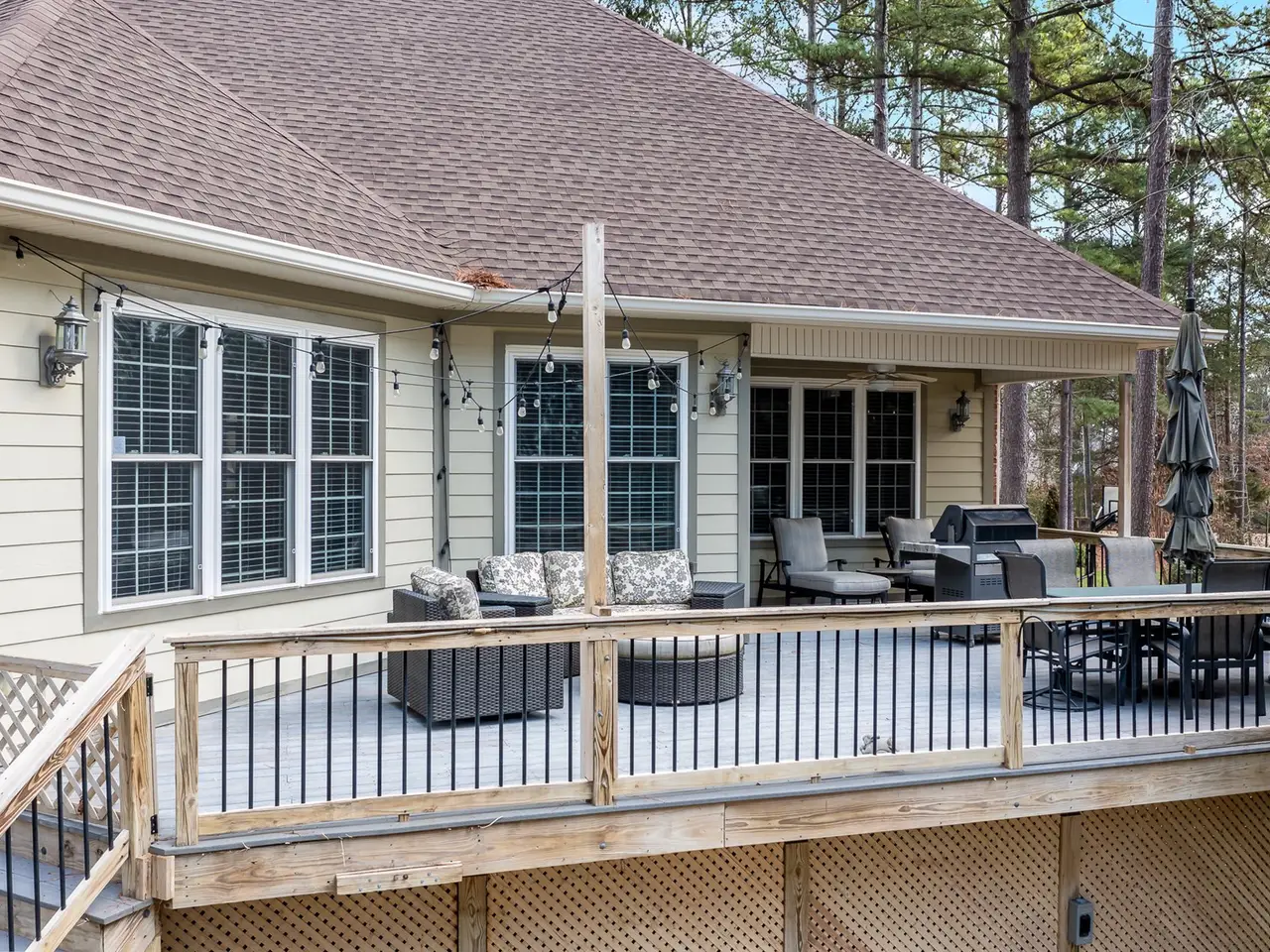 Don't miss this home! No HOA. Located in a peaceful waterfront community, this stunning family home offers the perfect blend of comfort, style and convenience. The "heart of the home" kitchen is the centerpiece, featuring granite tops, ample cabinetry, luxury Electrolux appliances, serene backyard view. Adjacent to the kitchen, the keeping room w/ fireplace provides an inviting place to relax and gather. Main floor primary suite features natural light, wonderful bathroom. Two more bedrooms, dining room and laundry room on main. Gorgeous upgraded lighting through much of the home. Upstairs is another bedroom, full bath, bonus room plus a HUGE walk-in attic that could be finished. Large composite deck overlooking flat backyard. Lake Norman boat access a mile away. Move in ready with excellent fiber connectivity, irrigation front/back yard, new roof in 2022, gutter helmets where needed. HVACs both new in 2022/23. Water softener, air cleaning system. Room for a pool! Septic pumped in 2015; ducts were cleaned in 2024. This captivating home has modern comfort and nearby amenities! Easy access to Mooresville with right turn onto highway 150!