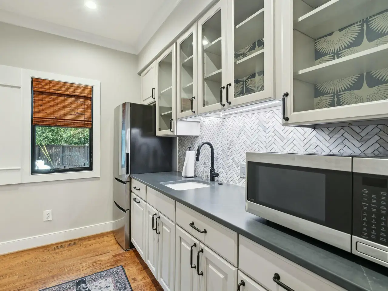 Architecturally designed and renovated home by Architect, Stephen A. Russell. Built by Avery Garrison, Caravel Contracting. This home is truly the hidden gem of Wharf Indigo Place. The Craftsman cottage design elements of styling and details belie the expansive sense of interior spaces. Judicious wall sizes and placements define various rooms yet promote a spacious feel from all interior areas. Covered front entry with arch top front door to foyer, coat closet and powder room. Family room with custom designed Sapele wood fireplace mantel with exquisite ceramic tile surround and custom Sapele cooktop exhaust hood enclosure with gas logs, dining room, gourmet kitchen with all new Diamond brand cabinetry, quartz countertops and GE Cafe appliances, including new gas cooktop, wine cooler andice machine, counter backsplashes are delicate ceramic tile in a herringbone pattern, Butler's pantry complete with refrigerator, base cabinets with quartz countertop, glass door wall cabinets and microwave. Living room opens to the outside deck with beautifully landscaped yard and privacy fencing, and side porch with custom wooden privacy shutters. Three spacious bedrooms and two bathrooms upstairs. Separate staircase to access private fourth bedroom/guest room with full bathroom. Upstairs primary bathroom has soaking tub, separate shower, and double vanities with quartz countertops. Additional bathroom has soaking tub and two separate sinks with quartz countertops. Both staircases are custom designed, oiled Sapele wood with decorative metal balusters. All new architectural fiberglass shingle roofing, new gutters, new HVAC and new spilt system in guest suite, all new insulated windows and sliding glass doors by Jeld-Wen, all new plumbing pipes, Rinnai tankless water heater. 2-car garage with guest parking. Please see attached Additional Features for specifications. Please see Agent's notes regarding information on membership for Creekside Tennis and Swim Club. Please park in driveway not on cul de sac.