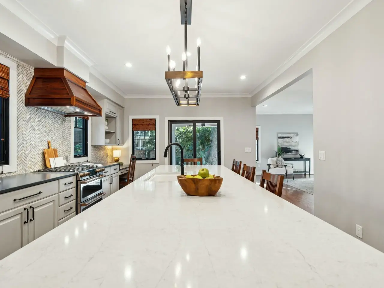 Gourmet kitchen with Diamond brand cabinetry and quartz countertops