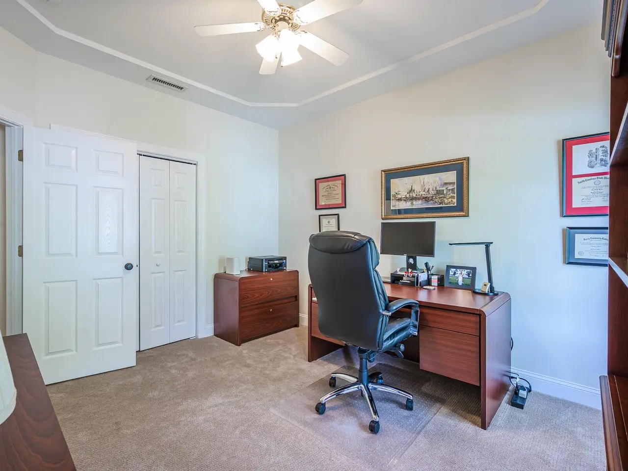 If you are looking for a beautifully maintained home on a manicured, golf course lot, this is it! Located on the 13th fairway about a pitching shot to the green!!! You will love that there is a huge 3 car garage with additional golf cart garage AND an amazing amount of storage space! The floor plan takes advantage of the lovely golf course views! There is a huge sun room off of the kitchen to enjoy your morning coffee! The home features 3 bedrooms and 2.5 baths. And, as a bonus, the basement area has been finished to provide for a home gym/office space or for additional space for guests (This space is not included in the square footage). This is an outstanding buy for Charleston National!