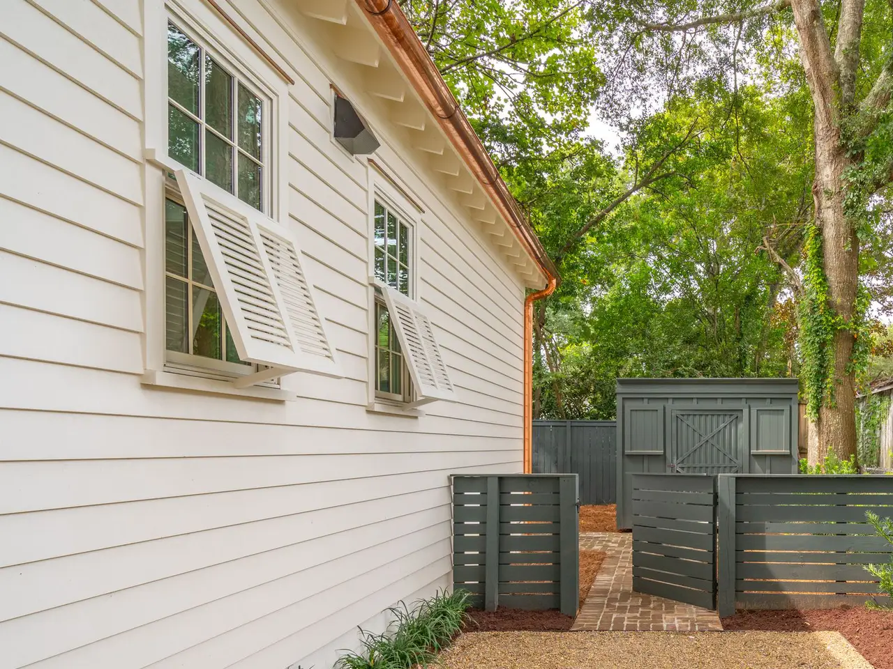 • Cedar shake roof with copper accents