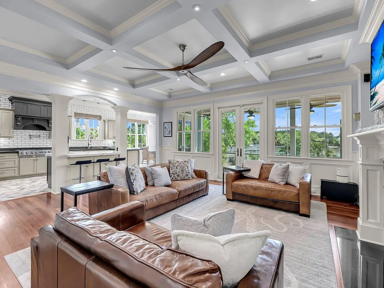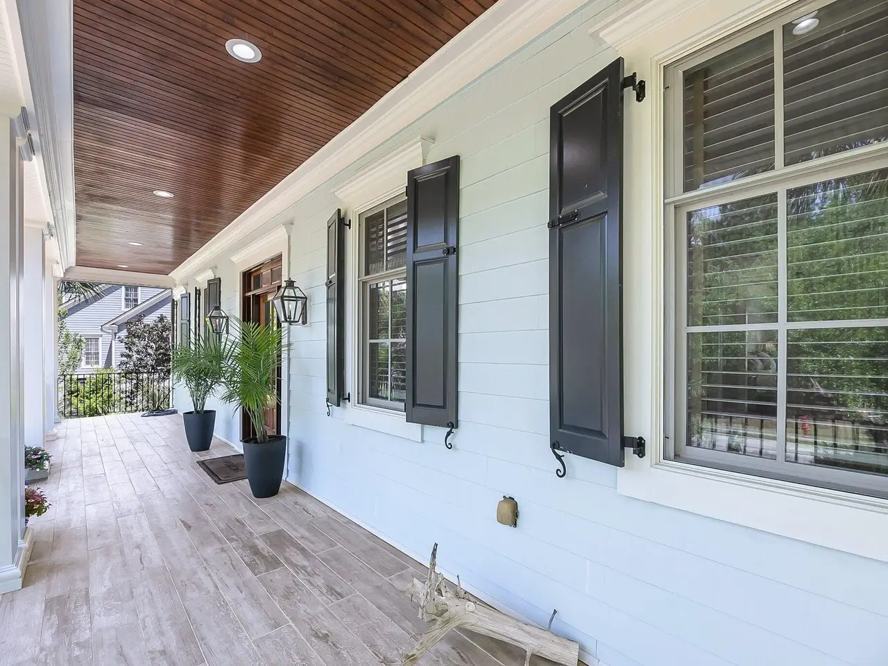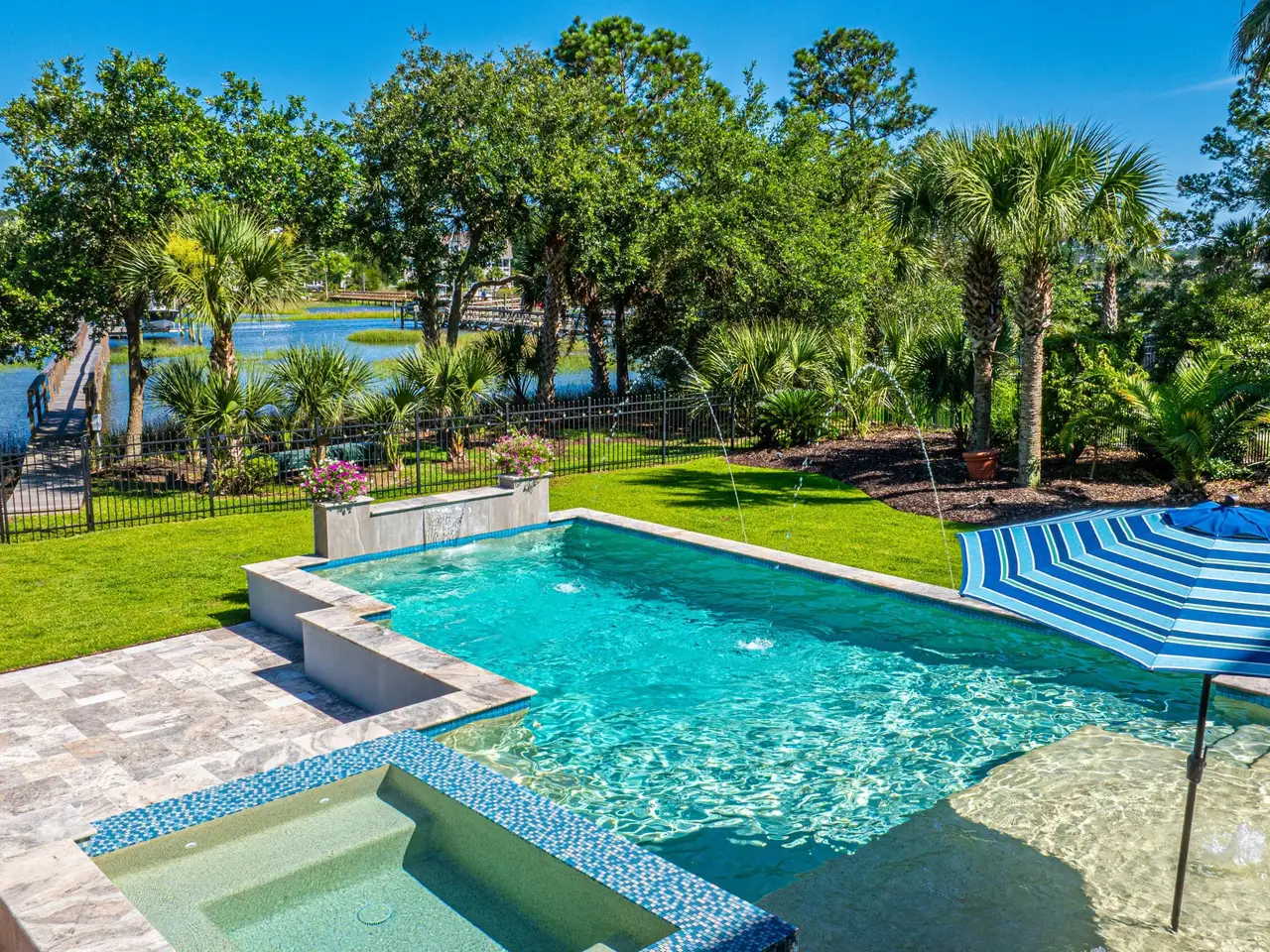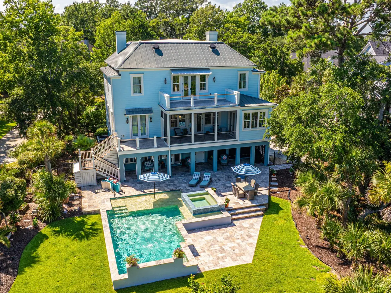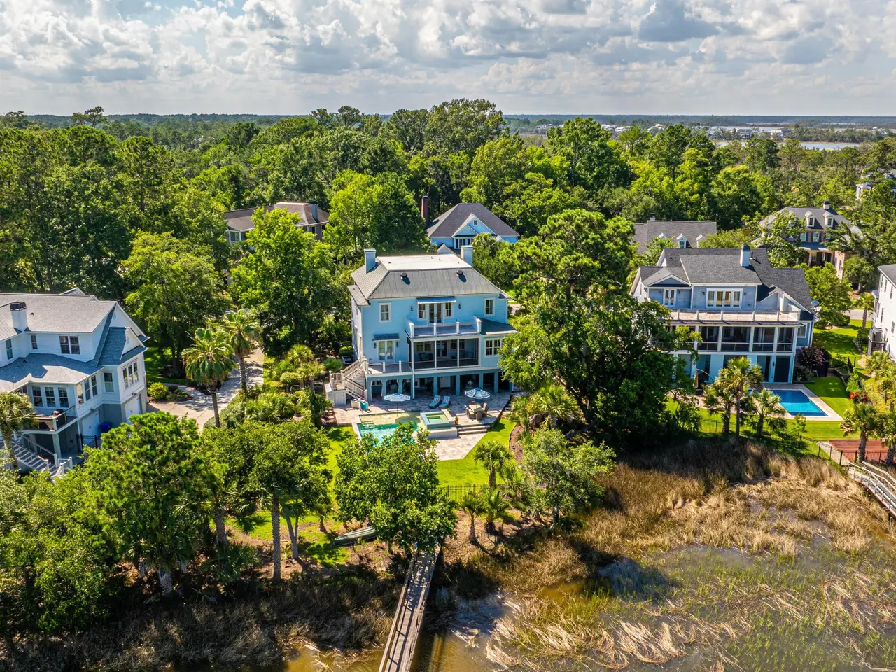 If you've been dreaming of panoramic waterfront views framed by swaying palms and a sparkling saltwater pool with spa, this custom designed Lowcountry retreat is your dream come true. From the moment you arrive, you're welcomed by a grand double staircase encircling a signature palm tree and custom-welded wrought iron railings. Gas lanterns frame a stunning solid mahogany entry door, setting the tone for the elegance and craftsmanship found throughout the home. Thoughtfully designed to capture the beauty of its setting, the open-concept main floor flows effortlessly from a dramatic double-story foyer into the great room, kitchen, breakfast area, and spacious primary suite--all opening to a large, screened porch with breathtaking views of the water and pool. A Butler's Pantry leads tothe formal dining room, and a walk-in laundry, pantry, and powder room complete the main living level. The great room features a coffered 10' ceiling, a gas fireplace with custom built-ins, and a wall of windows and French doors bringing the outdoors in. The gourmet kitchen boasts a large island, custom cabinetry, and premium Jenn-Air appliances including a 48" refrigerator, 6-burner gas cooktop, and beverage cooler. Enjoy waking every morning to a serene waterfront sunrise view from the expansive primary suite, complete with dual walk-in closets, a soaking tub, separate vanities, and a luxurious walk-in shower. Upstairs, four oversized bedrooms (two with ensuite baths, two with a shared Jack and Jill bath), a second laundry room, and a versatile bonus room with a private sun deck offer comfort and flexibility for family and guests. Outside, paradise awaits. The heated and cooled saltwater pool with integrated spa, sun shelf, fountains, and water features is a showstopper. The spacious patio invites sunbathing, entertaining, and peaceful relaxation, all while overlooking your private dock with boat lift and floater, perfect for swimming, fishing, or exploring the waterways by boat! The ground level offers a finished suite with full bath, large living area, second 48" refrigerator, additional storage closet, a walk-in storage room, enclosed workshop, and 3-car garage. Park West Amenities, paved walking paths throughout the community, 3 primary to middle schools, and a Mount Pleasant Recreation complex offer the perfect setting for families! Located in the heart of the Lowcountry, this home is a rare opportunity to own a waterfront sanctuary that seamlessly blends casual elegance, generous space, and the best of indoor-outdoor living!