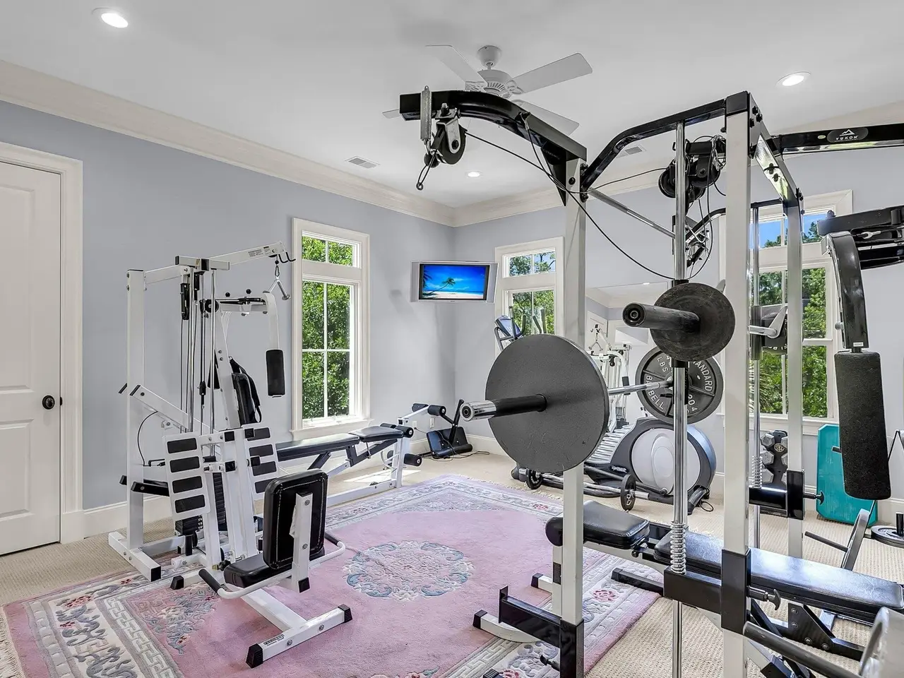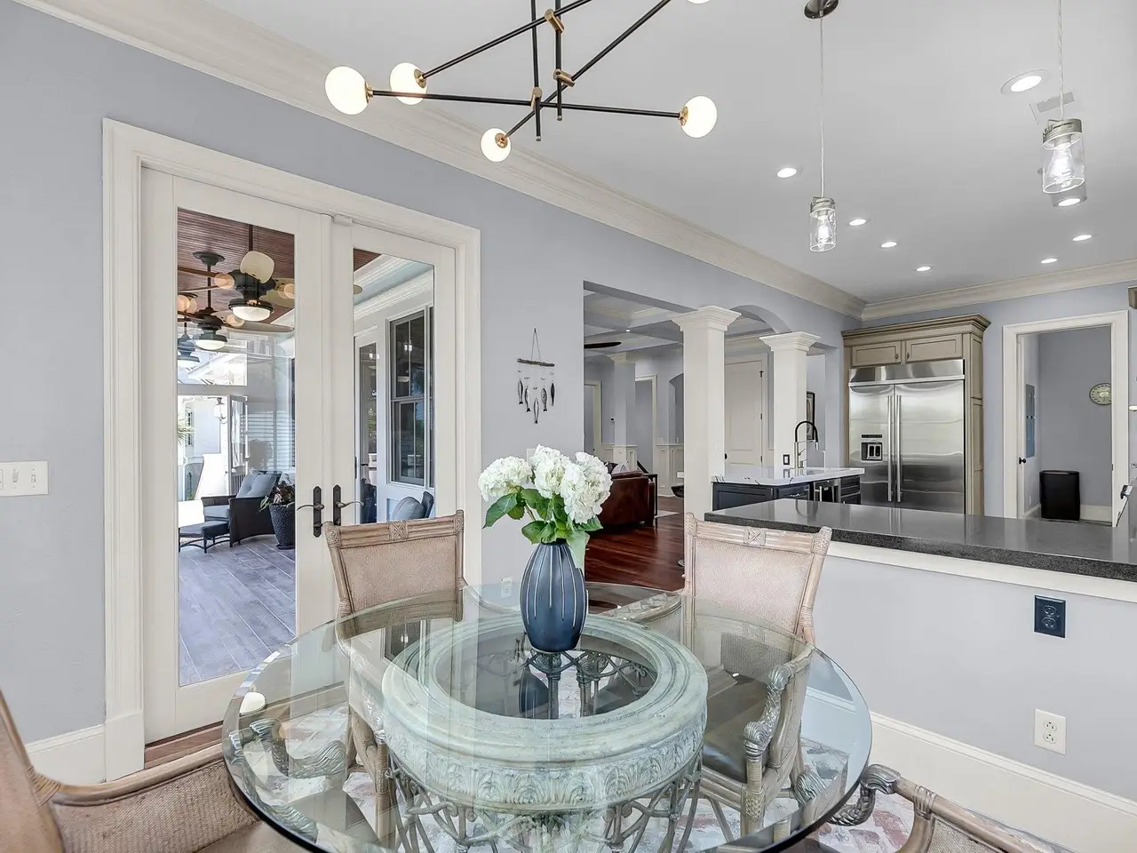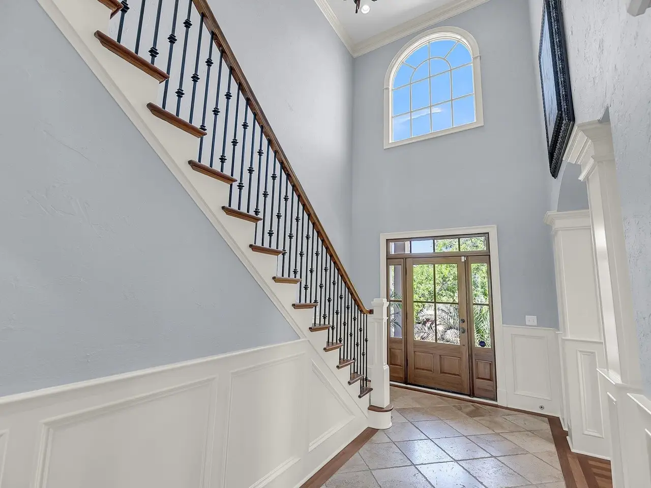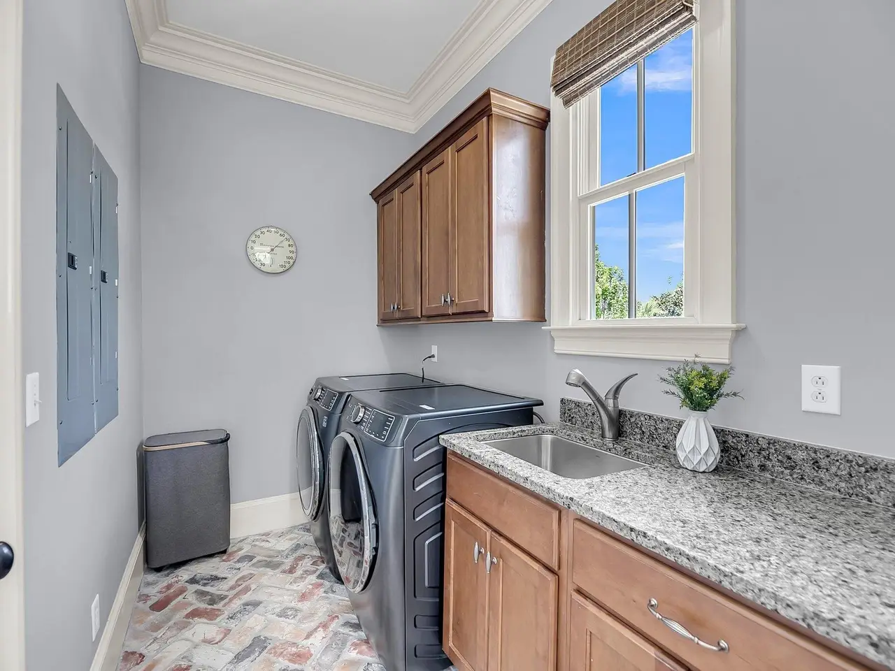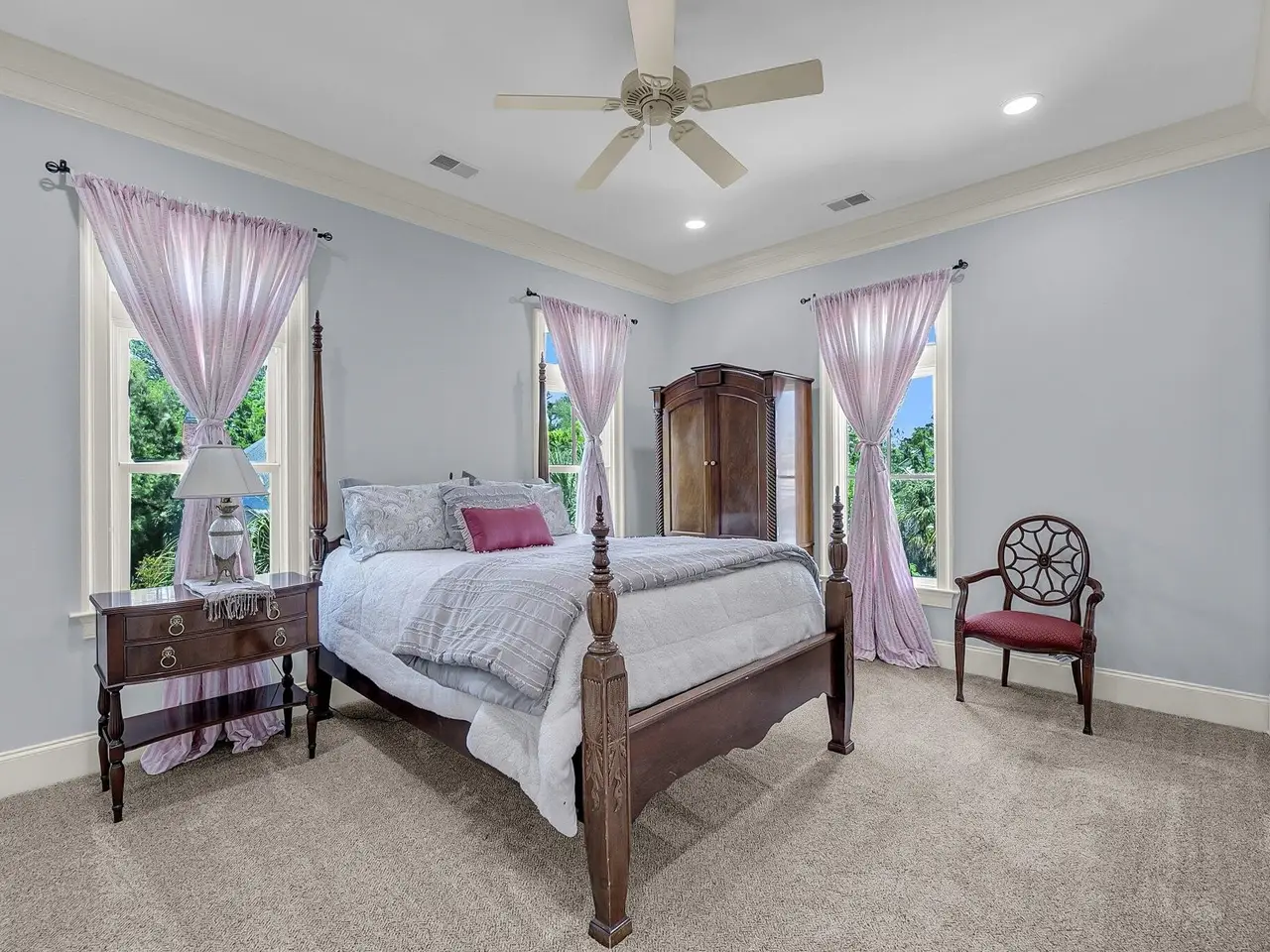 If you've been dreaming of panoramic waterfront views framed by swaying palms and a sparkling saltwater pool with spa, this custom designed Lowcountry retreat is your dream come true. From the moment you arrive, you're welcomed by a grand double staircase encircling a signature palm tree and custom-welded wrought iron railings. Gas lanterns frame a stunning solid mahogany entry door, setting the tone for the elegance and craftsmanship found throughout the home. Thoughtfully designed to capture the beauty of its setting, the open-concept main floor flows effortlessly from a dramatic double-story foyer into the great room, kitchen, breakfast area, and spacious primary suite--all opening to a large, screened porch with breathtaking views of the water and pool. A Butler's Pantry leads tothe formal dining room, and a walk-in laundry, pantry, and powder room complete the main living level. The great room features a coffered 10' ceiling, a gas fireplace with custom built-ins, and a wall of windows and French doors bringing the outdoors in. The gourmet kitchen boasts a large island, custom cabinetry, and premium Jenn-Air appliances including a 48" refrigerator, 6-burner gas cooktop, and beverage cooler. Enjoy waking every morning to a serene waterfront sunrise view from the expansive primary suite, complete with dual walk-in closets, a soaking tub, separate vanities, and a luxurious walk-in shower. Upstairs, four oversized bedrooms (two with ensuite baths, two with a shared Jack and Jill bath), a second laundry room, and a versatile bonus room with a private sun deck offer comfort and flexibility for family and guests. Outside, paradise awaits. The heated and cooled saltwater pool with integrated spa, sun shelf, fountains, and water features is a showstopper. The spacious patio invites sunbathing, entertaining, and peaceful relaxation, all while overlooking your private dock with boat lift and floater, perfect for swimming, fishing, or exploring the waterways by boat! The ground level offers a finished suite with full bath, large living area, second 48" refrigerator, additional storage closet, a walk-in storage room, enclosed workshop, and 3-car garage. Park West Amenities, paved walking paths throughout the community, 3 primary to middle schools, and a Mount Pleasant Recreation complex offer the perfect setting for families! Located in the heart of the Lowcountry, this home is a rare opportunity to own a waterfront sanctuary that seamlessly blends casual elegance, generous space, and the best of indoor-outdoor living!