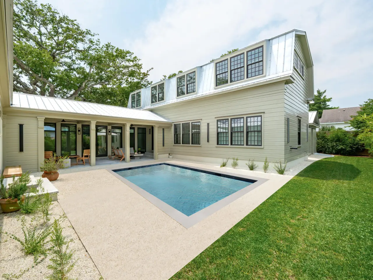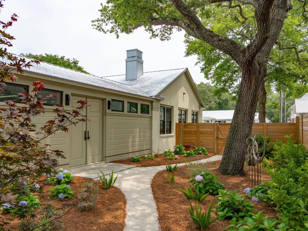 Set on a quiet cul-de-sac in Old Mt Pleasant is one of the finest custom homes you will find in the area. Subtle yet sophisticated, 922 Kincade offers bespoke luxury for those with refined taste. Built with proportion and flow in mind the home appears as a simple ranch in the front but soon the lines of landscaping and the curves of the porch arches draw you in closer and you notice a hyphened estate with multiple courtyards interconnected by sprawling living and entertaining spaces. Spanning nearly four thousand square feet and set on nearly a third of an acre this home has plenty of space but it really benefits from an abundance of privacy that the layout of the home on the oversize lot provides.With immediate curb appeal you can tell 922 Kincade isn't your average new build in Old Mt Pleasant. The stucco and custom sapele arches on the front blend perfectly with the metal roof and modern fixtures and lowcountry landscaping. The front portion of the home benefits from 10 inch reclaimed heart of pine floors, vaulted ceilings, and exquisite millwork throughout. This space serves as the primary entertaining area with the kitchen, living and dining room up front. The high end appliances, custom maple island, and designer grade light fixtures are gorgeous but don't overshadow the craftsmanship that went into the space where the architectural design and natural materials do most of the talking. This space is finished off with a scullery, a half bath and a small office. You have the option to entertain on the front porch, in the central courtyard, or flow back to the rear of the home giving the owners multiple options to choose from. The front house hyphens off down a gorgeous hallway towards the back house. This wide hallway accentuates the large courtyard to the right and another private entry and courtyard to the left. The hall is appointed with concrete floors and lots of glass giving the space a moody and dramatic feel with the natural materials benefitting from the sun pouring through. The flow of this space from front to back and side to side is what sets it apart. Once you are in the back house you have a more relaxed family room / play room with access to a rear courtyard. The first floor also benefits from 2 bedrooms and a central laundry. Upstairs you will find the spacious master bedroom as well as another guest room. All bedrooms have their own ensuite bathroom where the finishes and natural materials shine. Throughout the entire back house the exquisite millwork benefits nearly every wall while high end light fixtures, upgraded hardware, and custom iron railings tie in to give the space a modern feel yet keep the space warm and relaxing. Outside you have a 400 square foot shed that was built with the ability to convert it into a full mother in law suite or keep it as an "over built" shed and golf cart parking. This shed can be accessed from the back courtyard or the central courtyard. Both courtyards would be more than suitable to build a custom pool if you so choose. The central courtyard would be ideal for a pool as it benefits from a large covered porch with access from both the back and front houses as well as the connecting hallway making entertaining a breeze. The flow of the home can not be understated. Set up to entertain and expand and contract based on need the home has so many options to utilize for any activity. If you have an eye for detail and appreciate craftsmanship and architectural design, this home is the perfect match of sophistication and Lowcountry living at its best.