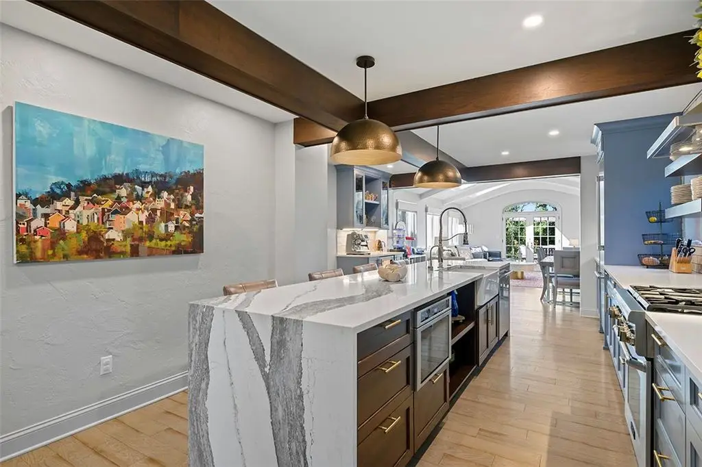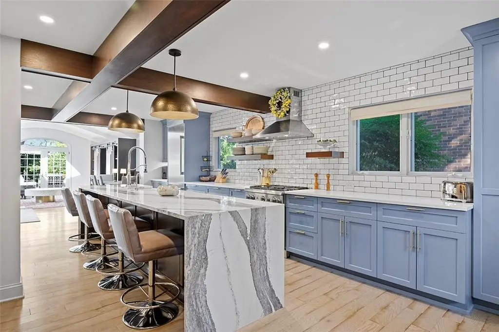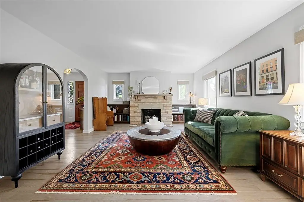 Charming Jr. Beam home in the heart of Mt. Lebanon, moments from schools, Uptown, dining, shopping & Rec Center! Modern fixtures & finishes blend beautifully w/original character - 8-panel doors w/glass knobs, plaster walls, hardwoods, archways, blt-ins & crown molding. Inviting LR features a stone fireplace flanked by built-ins & 12' opening to cozy den/lounge space, easily used as a DR. The show-stopping kitchen is a dream w/custom pale-blue cabinetry, quartz counters, floating shelves, 12' waterfall isle, beamed ceiling, hi-end appliances & coffee/beverage bar - all open to a spectacular family rm w/cathedral barrel ceiling, exposed brick, media wall, banquette dining space & French doors to spacious composite deck. Vaulted primary suite boasts a boutique-style en suite. Walk-out lower level ideal in-law or teen suite, gameroom, full bath, storage & mud rm/drop zone off 2-car garage. This remarkable home offers timeless charm, modern luxury and a prime Mt. Lebanon location.