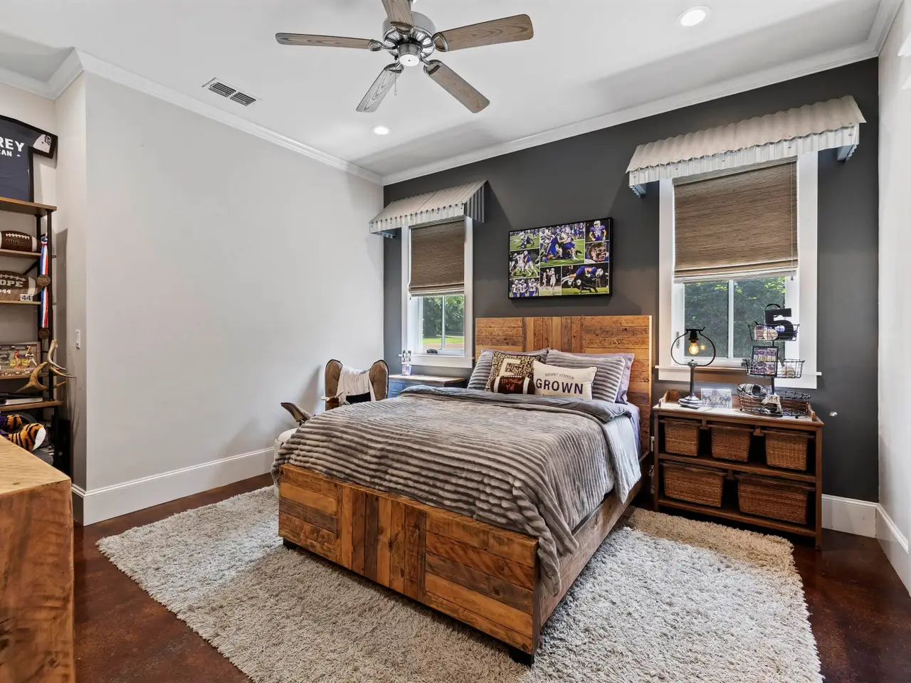 Additional guest bedrooms with stylish fixtures