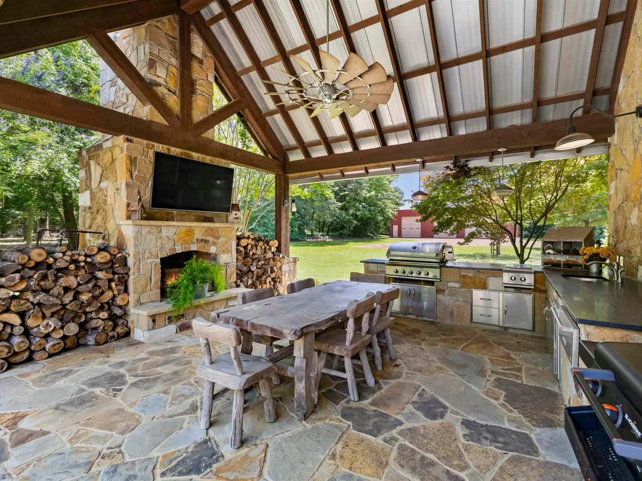 Expansive covered patio with outdoor kitchen