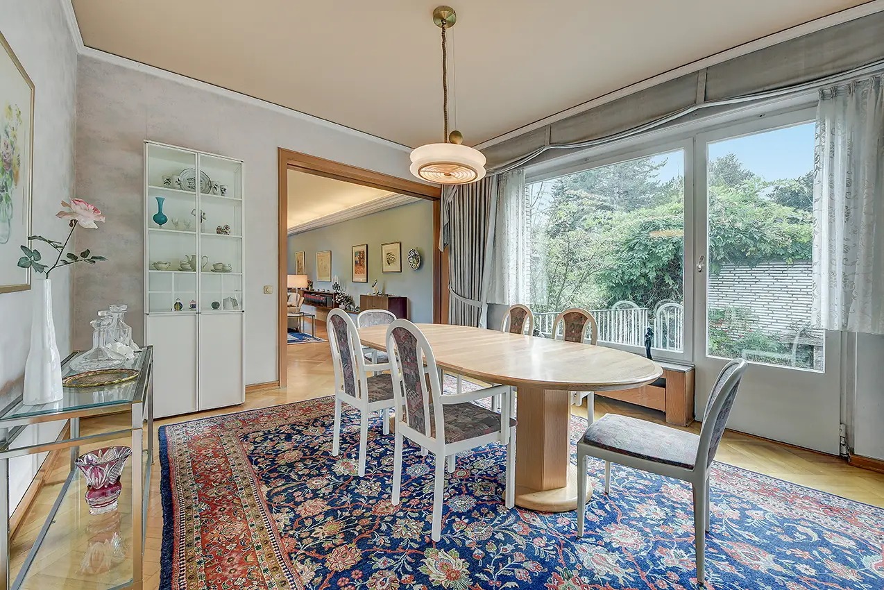 Spacious retreat with clinker charm, tranquillity and 3-metre room height - a house with potential and character With around 219 m² of living space spread over seven well-designed rooms and a plot of around 6,000 m², this detached family home from 1965 offers plenty of space for families or couples who value space, individuality and closeness to nature. Even at first glance, the building reveals its timeless clinker brick charm and the solid architectural style of the 1960s. The solid construction, a prestigious hipped roof and interior heights of up to three meters give the house a special spaciousness and an open feeling of space. Two bedrooms, two fully equipped bathrooms and additional, versatile rooms form the basis for comfortable living in a classic structure. The quiet, natural location is particularly noteworthy - a true oasis for anyone who values privacy and relaxation without wanting to forego good connections to the local infrastructure. Generous window areas allow plenty of daylight into the living spaces and emphasize the friendly ambience of the house. Electric exterior blinds throughout the house and a modern alarm system provide additional comfort and security. The house offers an ideal basis for individual modernization measures. Anyone who enjoys design and wants to implement their own ideas for living will find a solid foundation with plenty of potential here. The property is currently heated by an oil-fired central heating system, which reliably provides pleasant warmth. In addition to the living area, there are spacious ancillary areas and practical storage facilities. A double garage offers space for your vehicle and additional storage space. The spacious outdoor area opens up numerous possibilities: whether it's a garden landscape, play area for children, hobby gardening or even keeping animals - there are virtually no limits to your creativity here. The surrounding nature characterizes the feeling of living in this location, as does the pleasant tranquillity - ideal for people who want to combine retreat, open space and quality of life. At the same time, residents benefit from short distances to schools, shopping facilities and public transport connections, making the location particularly family-friendly. This house is far more than just a property - it is a place with character, history and a future. Discover the potential and be inspired by the special atmosphere. For further information or to arrange a viewing appointment, please do not hesitate to contact us.
