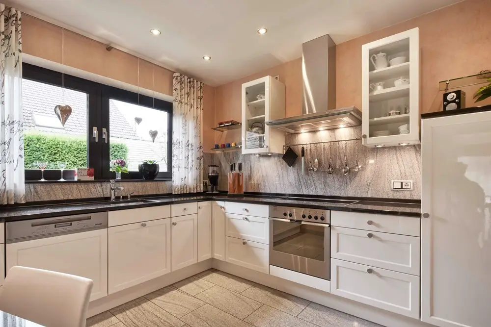 Granite kitchen countertops with high-end kitchen appliances