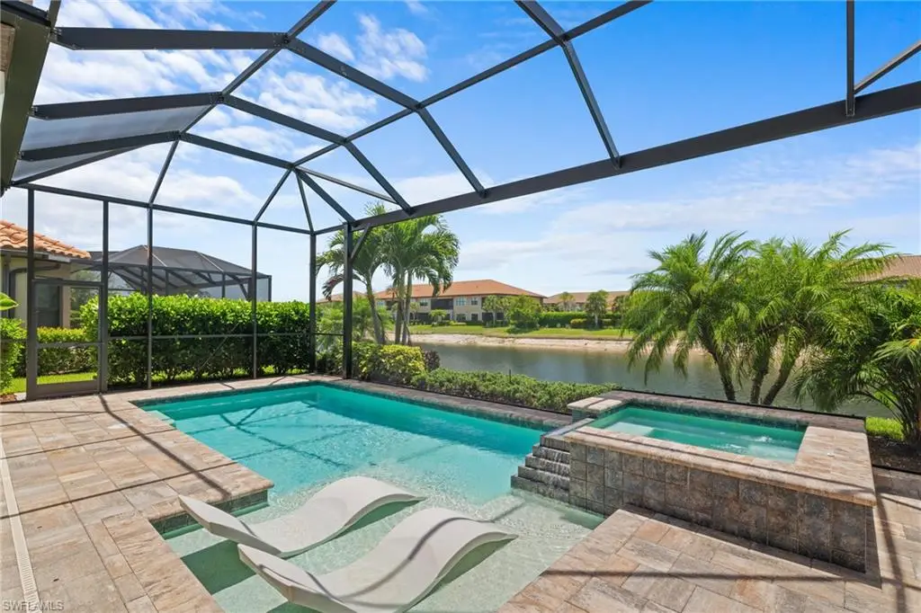 LIVE A VACATION LIFESTYLE IN ESPLANADE! FULL GOLF MEMBERSHIP INCLUDED! This immaculate ôFrancesco" (3 Bedrooms + Den, 3.5 Baths, 3 Car Garage) features nearly 2,900 sq ft of living space under air and has been lovingly cared for by its original owners. From the moment you enter the home through the double glass front doors, you are greeted with an open great room style floorplan with 12' ceilings throughout each room of the home with an abundance of windows & additional transom windows, wood floors throughout the common areas, den & bedrooms, impressive coffered style tray ceilings, and two sets of pocketing sliding glass doors to the extended lanai complete with outdoor kitchen & bar, GAS heated salt water pool/spa/sunshelf, and picture window screen cage overlooking the lake. The spacious kitchen lends itself to entertaining with an oversized island, shaker style cabinetry, quartz countertops, GE Cafe appliances including GAS cooktop & double wall ovens, abundance of cabinetry included 24-inch upper cabinets to complete the high end look. The den serves as a bonus living space and is outfitted with built-in cabinets including two twin murphy beds for overflow guests. You will be sure to catch sunsets 365 days a year from this home's west facing rear exposure overlooking the lake. For a peace of mind, this home features a mix of hurricane impact windows, motorized roll down hurricane shutters, and accordion hurricane shutters on all openings. A long list of special features include: ELECTRIC ROLL DOWN HURRICANE SCREENS/SHUTTERS on the lanai; custom outdoor kitchen and bar complete with grill, hood, sink, and refrigerator; upgraded climate controlled garage with finished floor & cabinetry; custom closet cabinetry & shelving throughout; dry bar with beverage cooler; plantation shutters; landscaping lighting; crown molding; and more! Esplanade Golf & Country Club of North Naples offers a true "Lifestyle Community" with world-class amenities, including a resort pool with cabanas and the popular "Bahama Bar," tennis, pickleball, bocce, a 14-mile network of bike/walking trails, and an 18-hole private golf course. The impressive 15,000 Sq Ft clubhouse features a restaurant, bar, wine-tasting room, wine lockers, and a Starbucks-style cafe. Best of all, the property's landscaping, irrigation, golf membership, and all community amenities are covered under a quarterly fee of just $3,434ùno additional fees or memberships required! Don't miss your opportunity to own this exceptional home in one of Naples' most sought-after communities. Schedule your tour of this stunning home and Esplanade Golf & Country Club today!